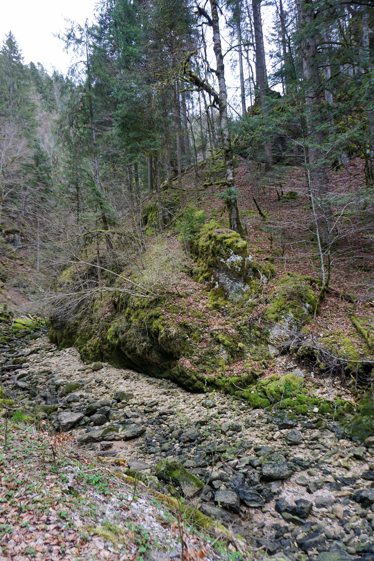 To avoid having to go back and forth, I continued along the valley, which turns into a gorge just before reaching the Comboles. I had already been there when I crossed from Les Planchettes to Le Locle this fall. But this time, instead of following the trail to the power plant, I went up to La Caroline. On the back above La Caroline is the Jürgensen Tower which allows you to observe all the surroundings. This tower was built on the initiative of a Danish watchmaker, hence its name.