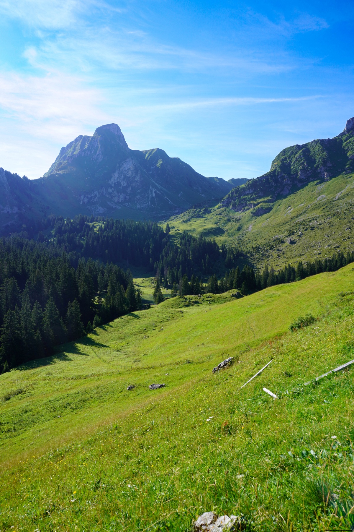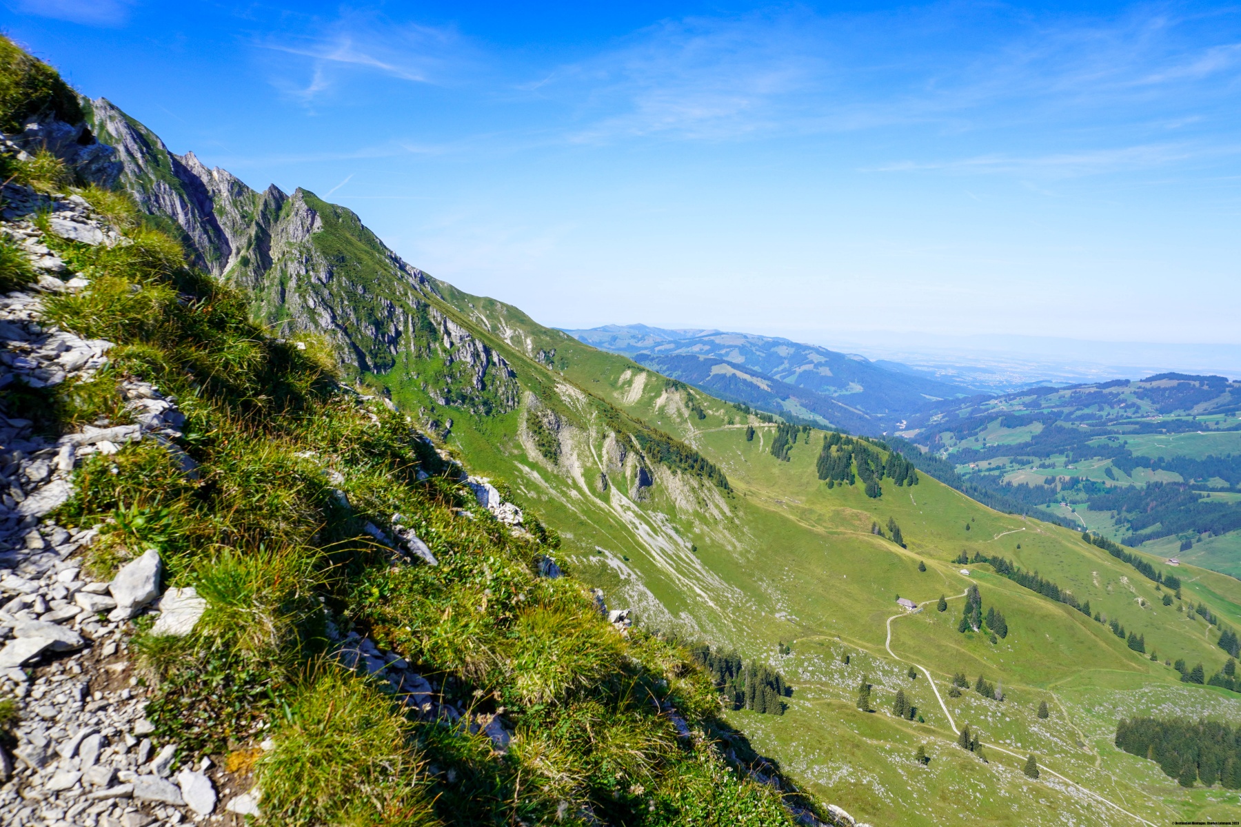 Les sommets du massif du Gantrisch n’échappent pas à cette règle. Ainsi, le Gantrisch et les sommets voisin du Bürgle et du Ochse peuvent être gravis en empruntant des sentiers balisés tracés dans leurs versant sud. Seul le Bürgle présente, sur son versant nord, un sentier tracé sur la carte, mais non balisé. C’est ce sentier que nous voulions aller voir de plus près.