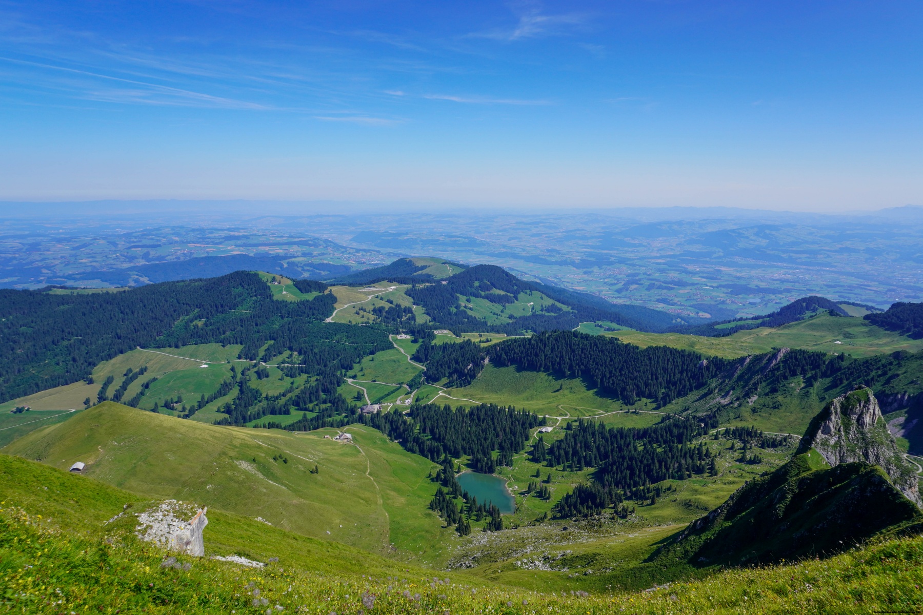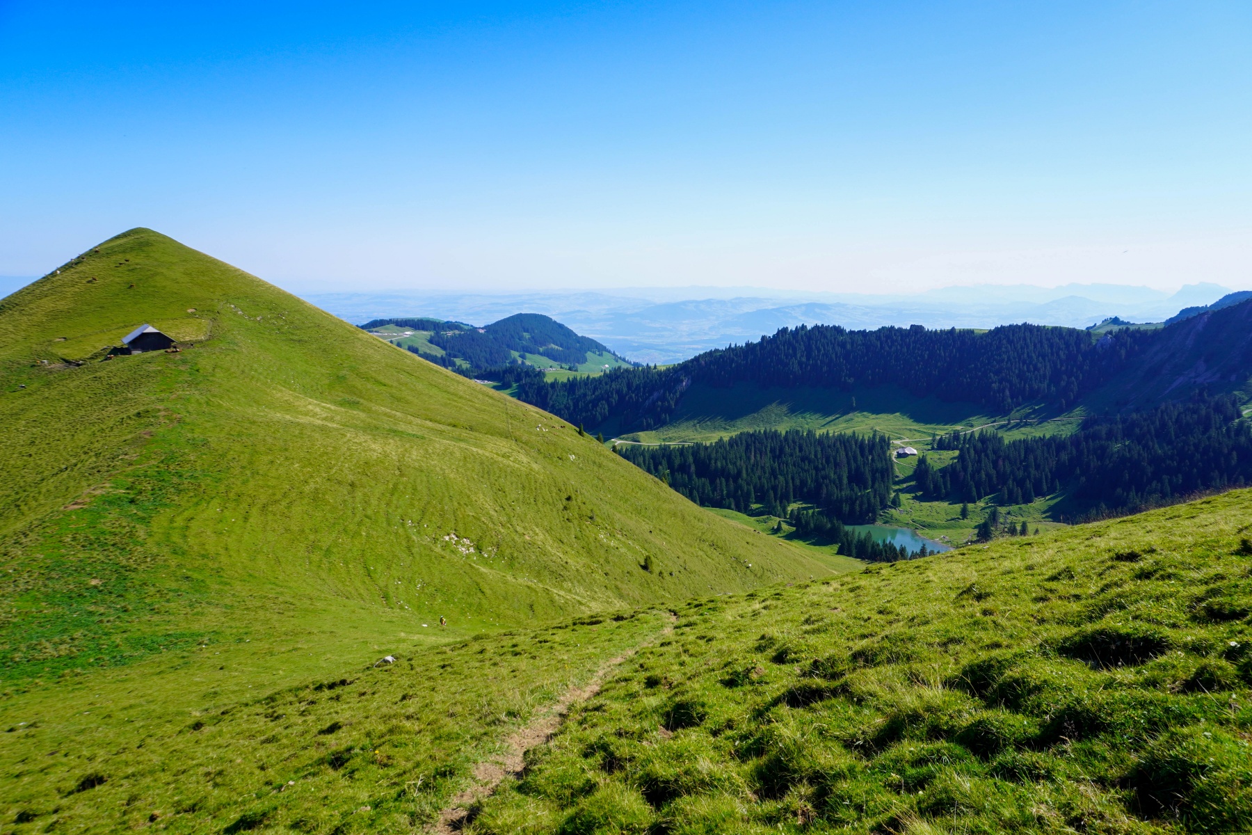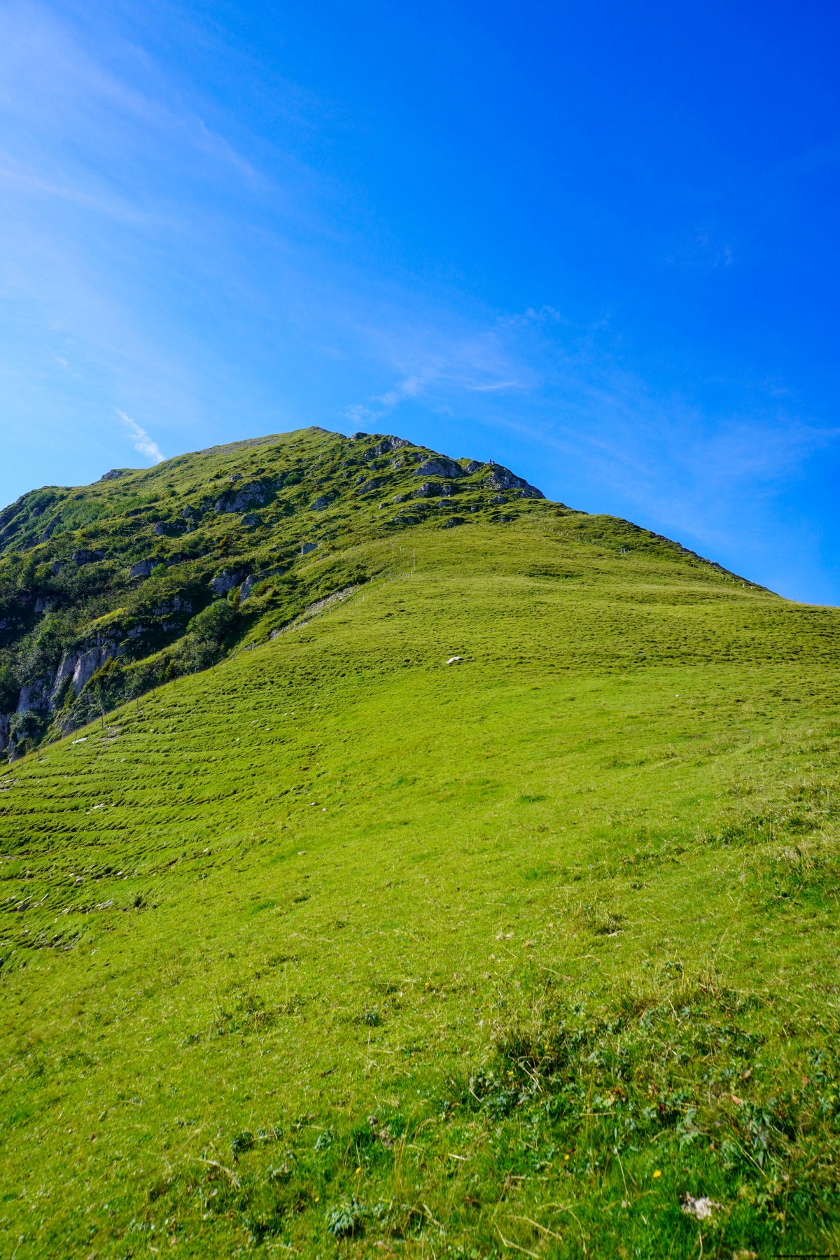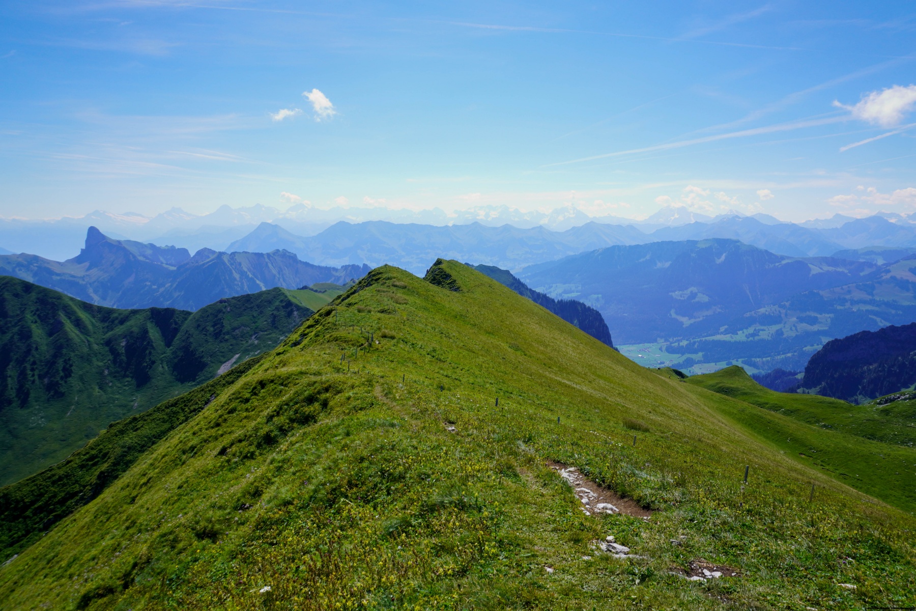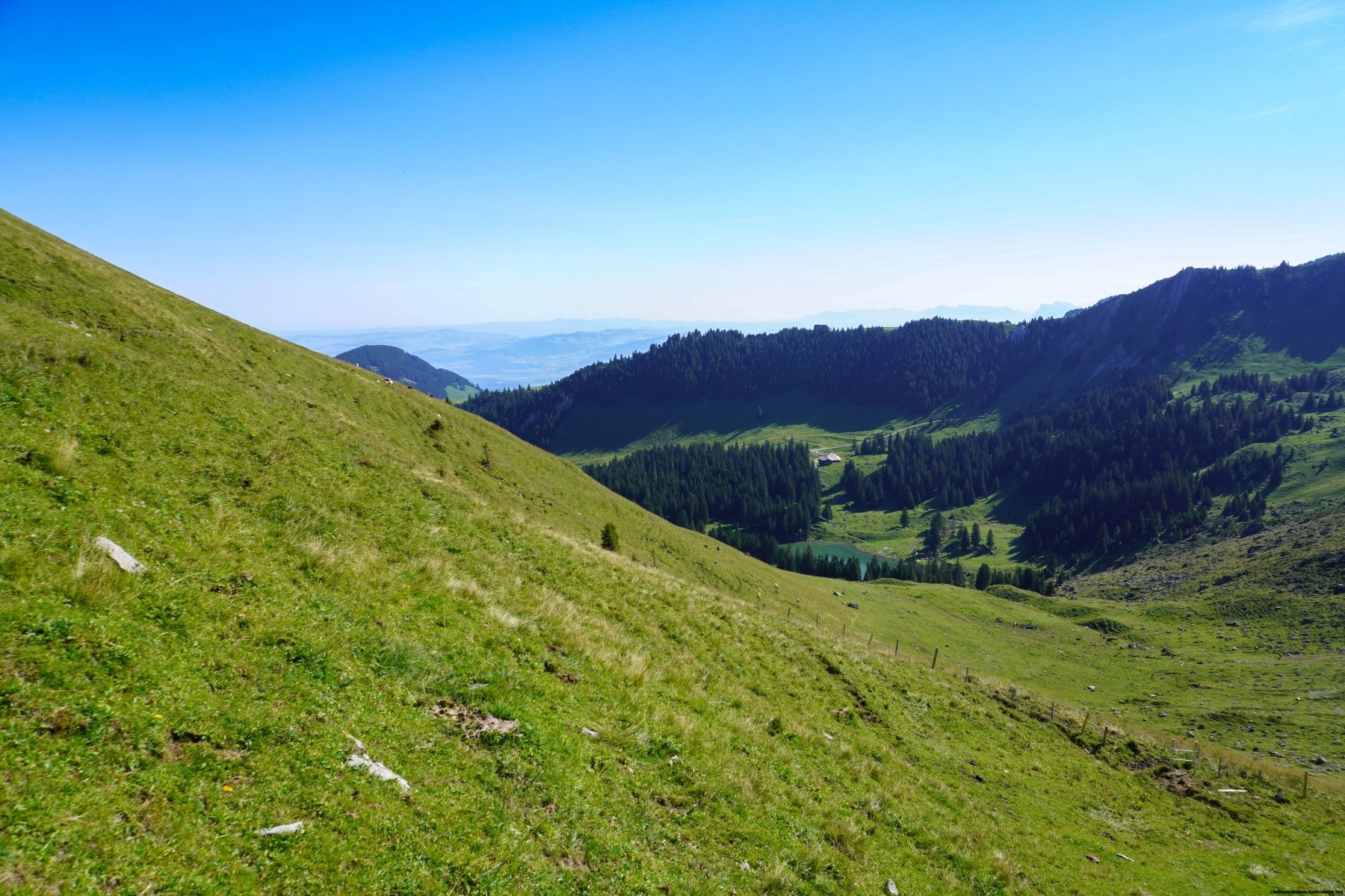 Nous avons donc pris les transports publics pour nous rendre à la Untere Gantrischhütte. Ce jour-là, il faisait chaud dès les premières heures de la matinée. Par conséquent, nous avons souffert de la chaleur en montant depuis la Birehütte jusqu’au petit col près du Birehubel. C’est depuis ce petit col que l’on peut suivre le sentier indiqué sur la carte. Du reste, des passages sont aménagés à travers la clôture au départ du sentier. On peut donc facilement repérer son début.