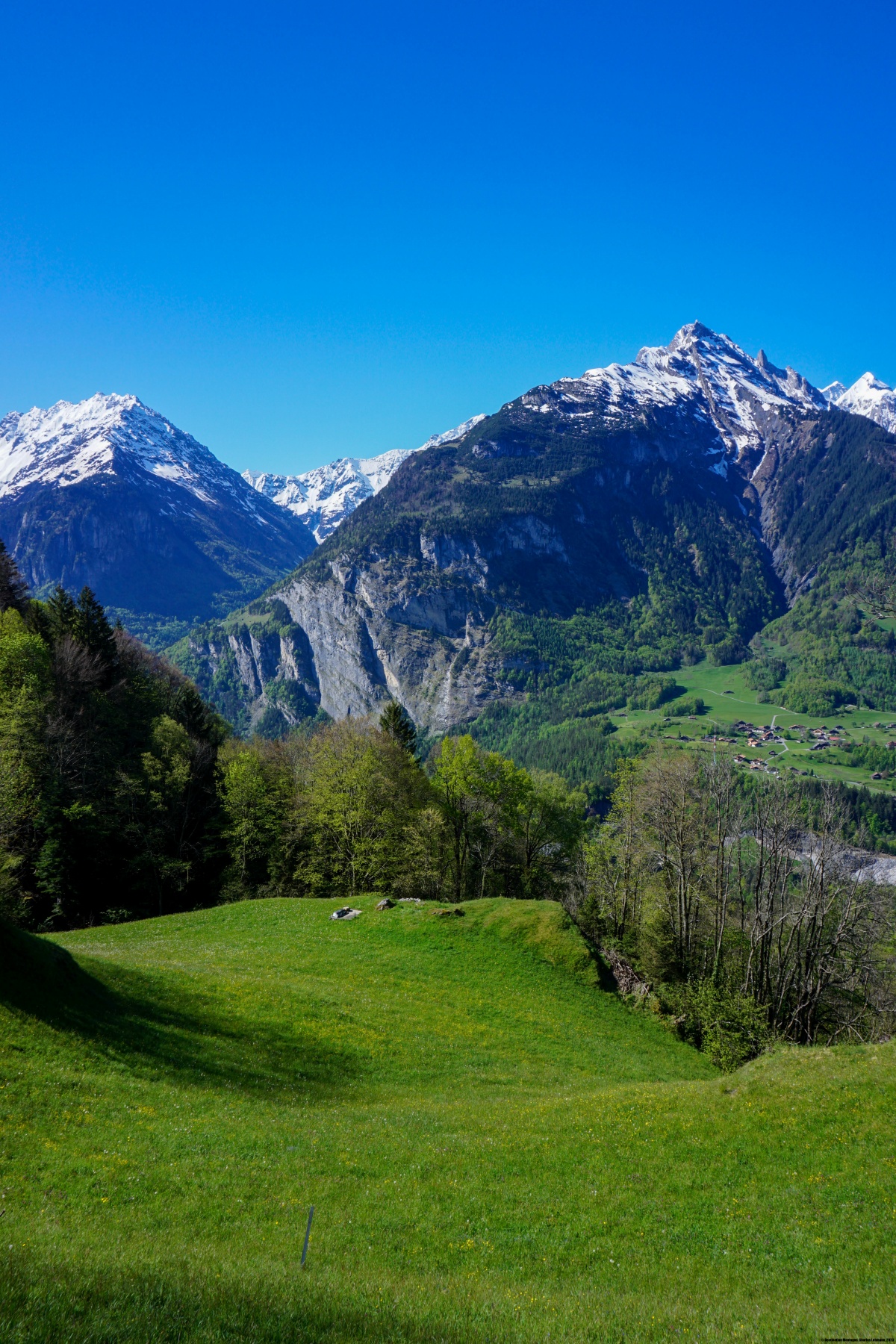 Der Abstieg nach Wiler ist an einigen Stellen recht steil, bietet aber einen schönen Blick auf das Urbachtal, ein Tal, das sich über dem Aartal befindet und dessen Boden flach ist. Von diesem Tal aus gelangt man zum Gauligletscher.