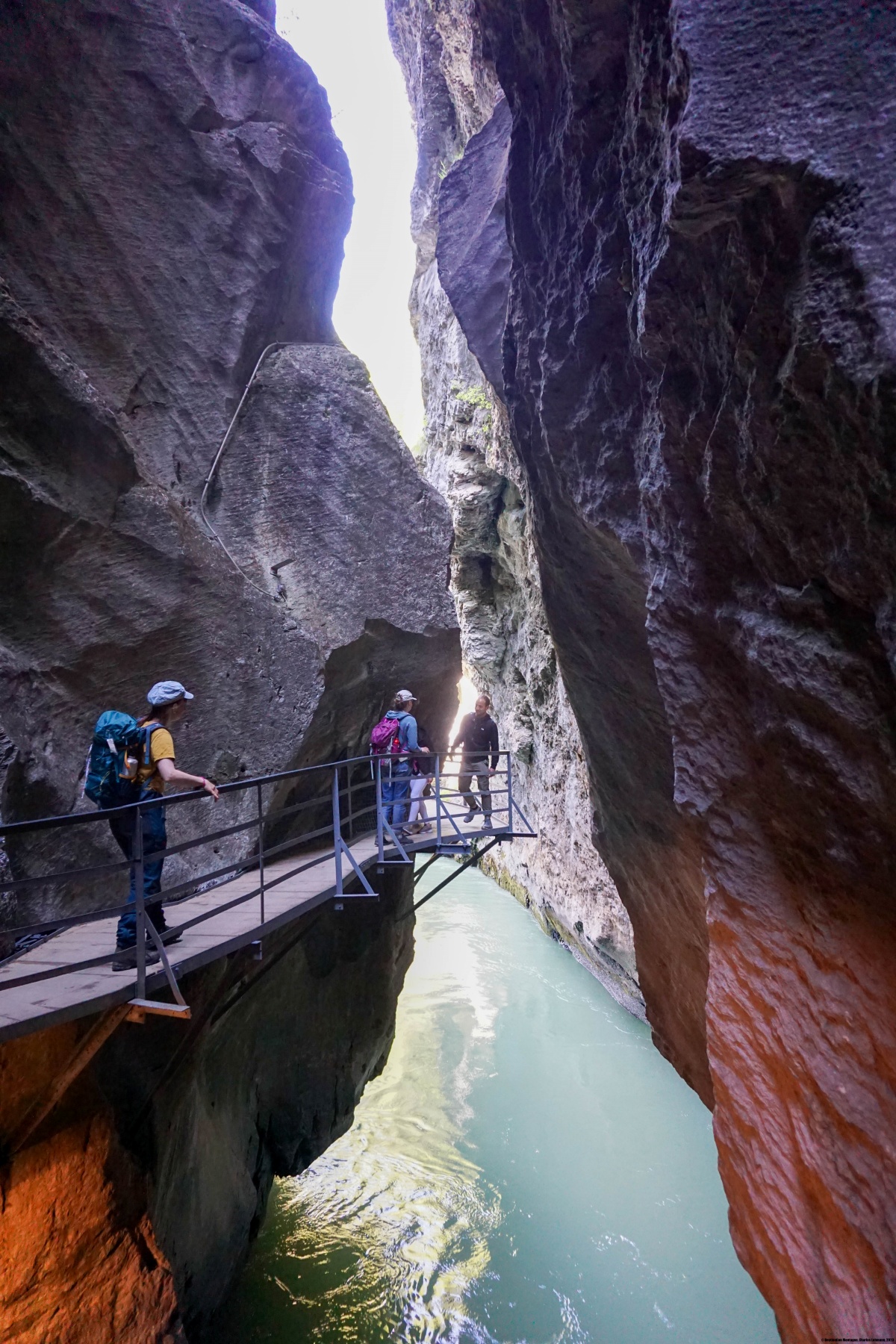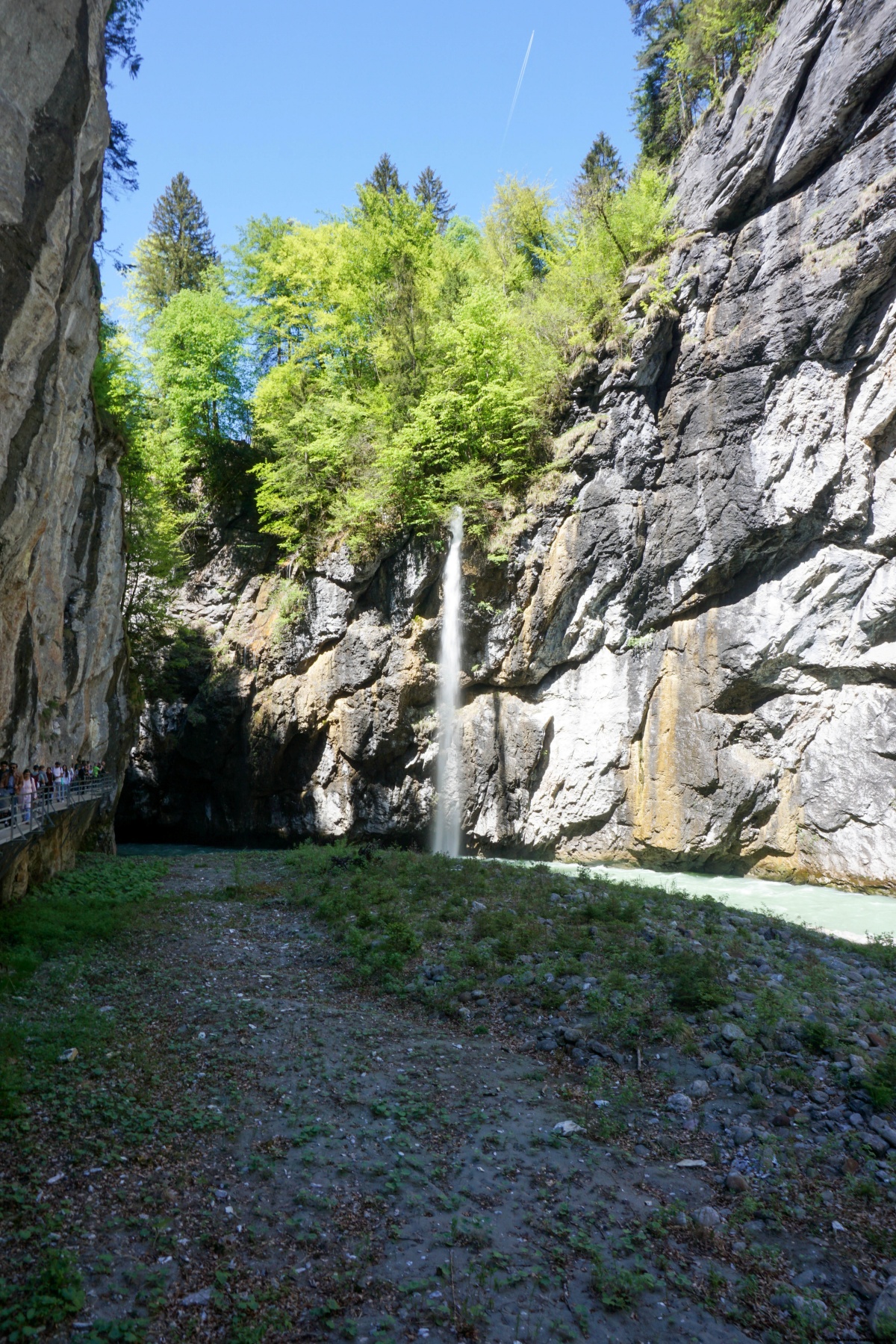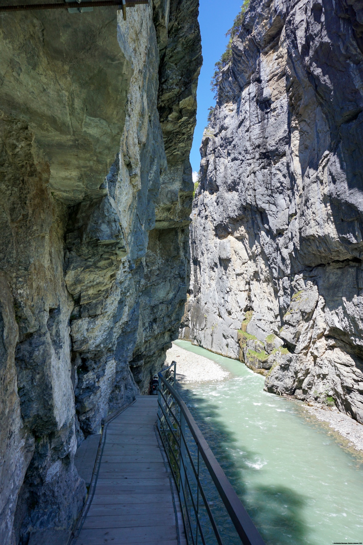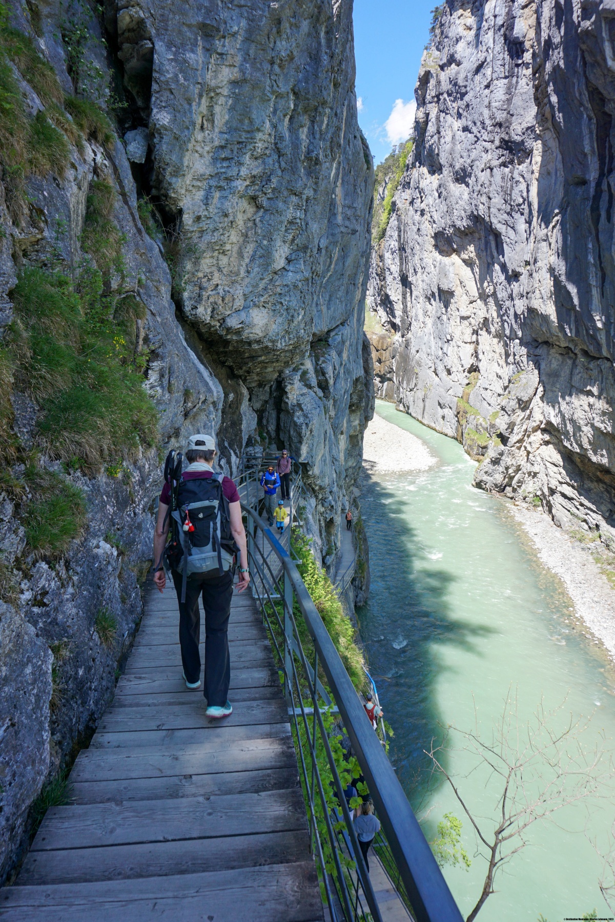 Von Innertkirchen aus folgten wir dem Deich entlang der Aare bis zum Südeingang der Aareschlucht. Der Kontrast war sehr stark, da wir den ganzen Tag so gut wie alleine unterwegs waren und uns dort in einer lauten und unruhigen Umgebung wiederfanden. Trotzdem ist die Durchquerung der Aarenschlucht ein Erlebnis.