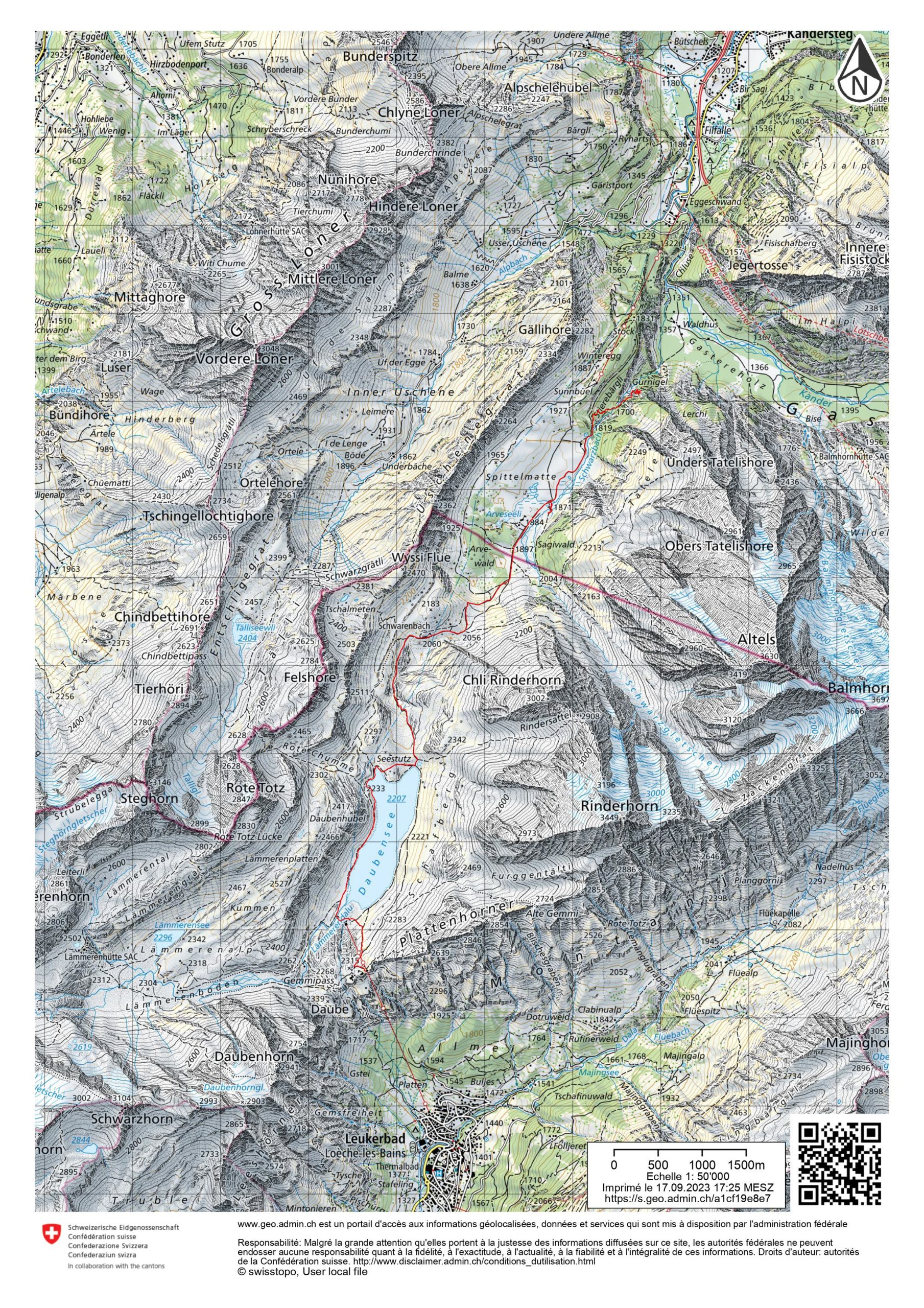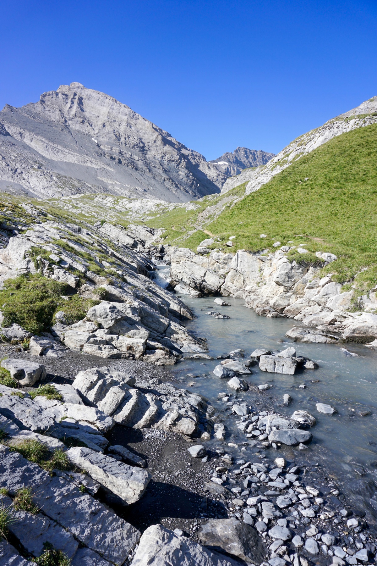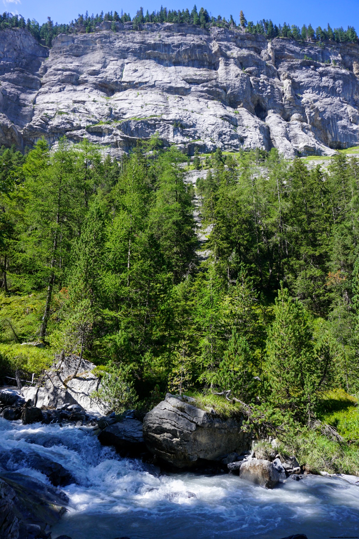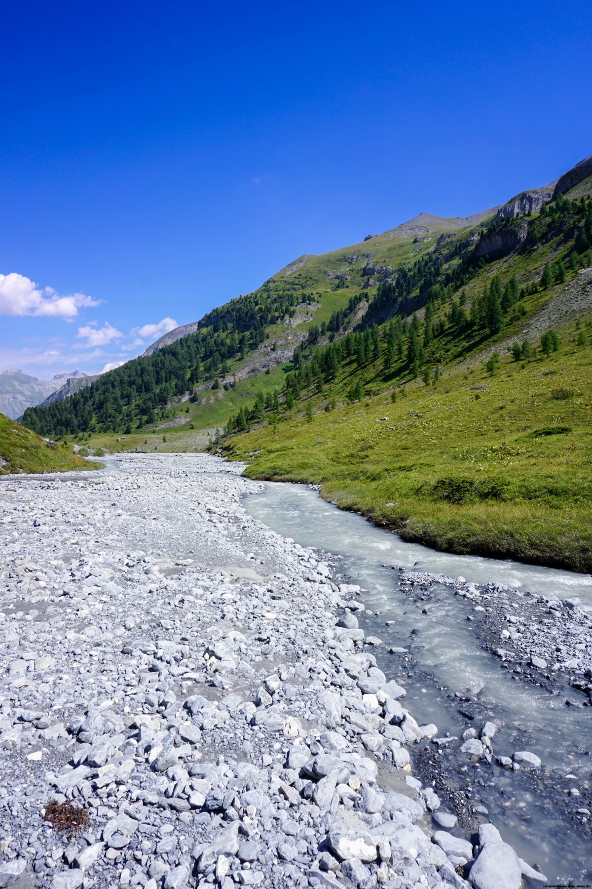 Um von der Gemmi aus über den Gurnigel ins Gasterntal zu gelangen, lohnt es sich, in dieses herrliche Alpental abzusteigen. Trotz seines wilden Aussehens war dieses Tal der Auslöser einer Tragödie, die sich beim Bohren des ersten Lötschbergtunnels zu Beginn des 20. Jahrhunderts ereignete. Tatsächlich glaubte man damals, dass man, sobald man mit dem Ausheben des Felsens in der Nähe von Kandersteg begann, im Muttergestein bleiben würden. Dabei wurde nicht berücksichtigt, dass die Talsohle des Gasterntals mit 200 m Wasser und Geröll gefüllt ist. Als die Arbeiter den Felsen durchbohrten, um ins Gasterntal zu gelangen, kam es zu einer Flut aus Geröll und Wasser, der die Arbeiter mit sich riss. Nach dieser Tragödie hatten sich in der Talsohle Einstürze gebildet und es wurden mehrere Lösungen geprüft, eine davon bestand darin, den Boden rund um den Tunnel einzufrieren, damit er sicher gebohrt werden konnte. Die Lösung bestand schliesslich darin, den Tunnel entlang des Gasterntals zu bohren, um es viel weiter flussaufwärts zu umgehen. Auf diese Weise können wir anhand der topografischen Karten erkennen, dass die Tunnelanfänge an den beiden Eingängen perfekt ausgerichtet sind, der Tunnel jedoch nach Osten ausweicht.