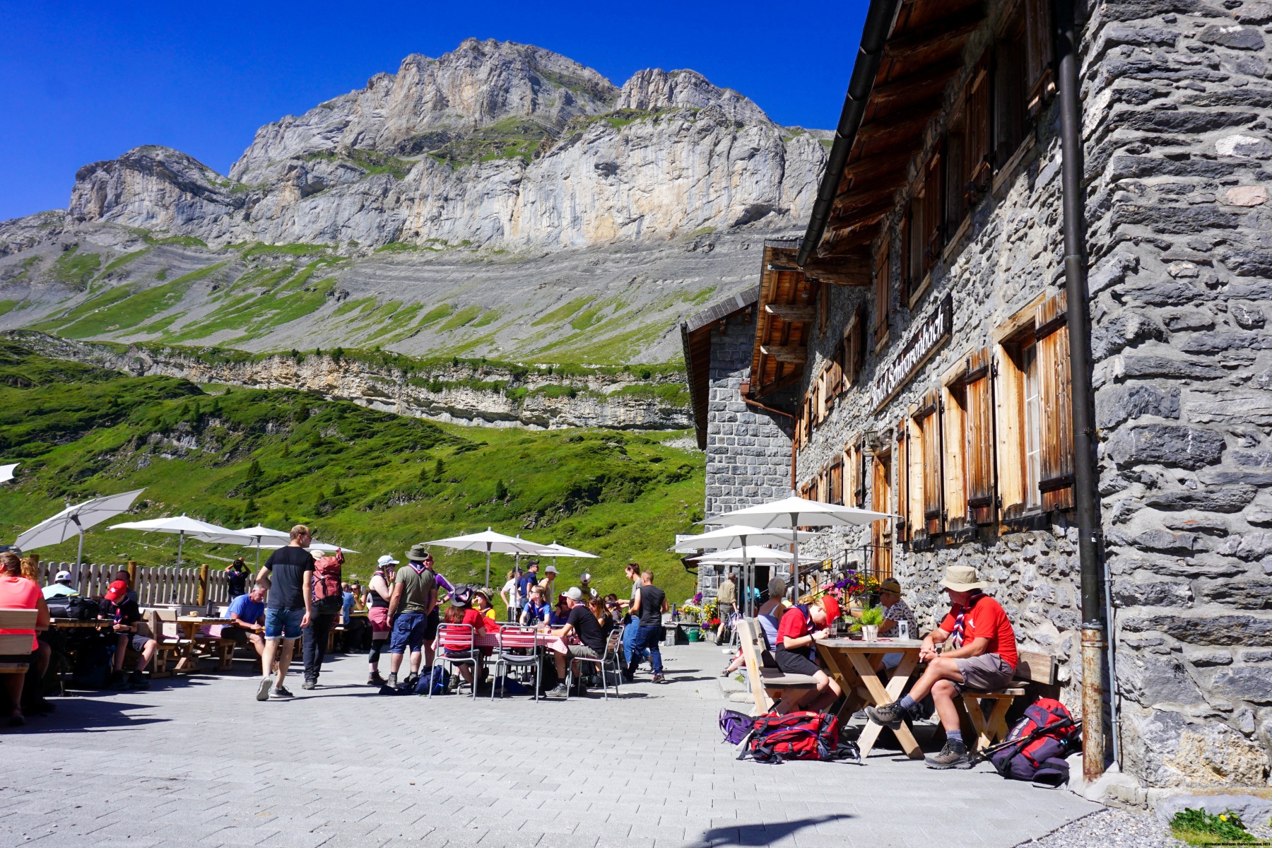 Hier folgten wir dem linken Ufer des Daubensees, der, auch wenn er nicht der historischen Route entspricht, deutlich weniger begangen ist. Am Ende des Daubensees finden wir den offiziellen Weg und es dauert nicht lange, bis man am Gasthof Schwarenbach vorbeikommt. Dieses Gasthaus ist Gegenstand einer Kurzgeschichte von Guy de Maupassant, die in einer Sammlung mit dem Titel „le Horla“ veröffentlicht wurde. Die Genauigkeit der Beschreibungen lässt darauf schliessen, dass de Maupassant die Gemmi überquerte und die Geschichte gehört hatte, die ihn zu seiner Kurzgeschichte inspirierte.
