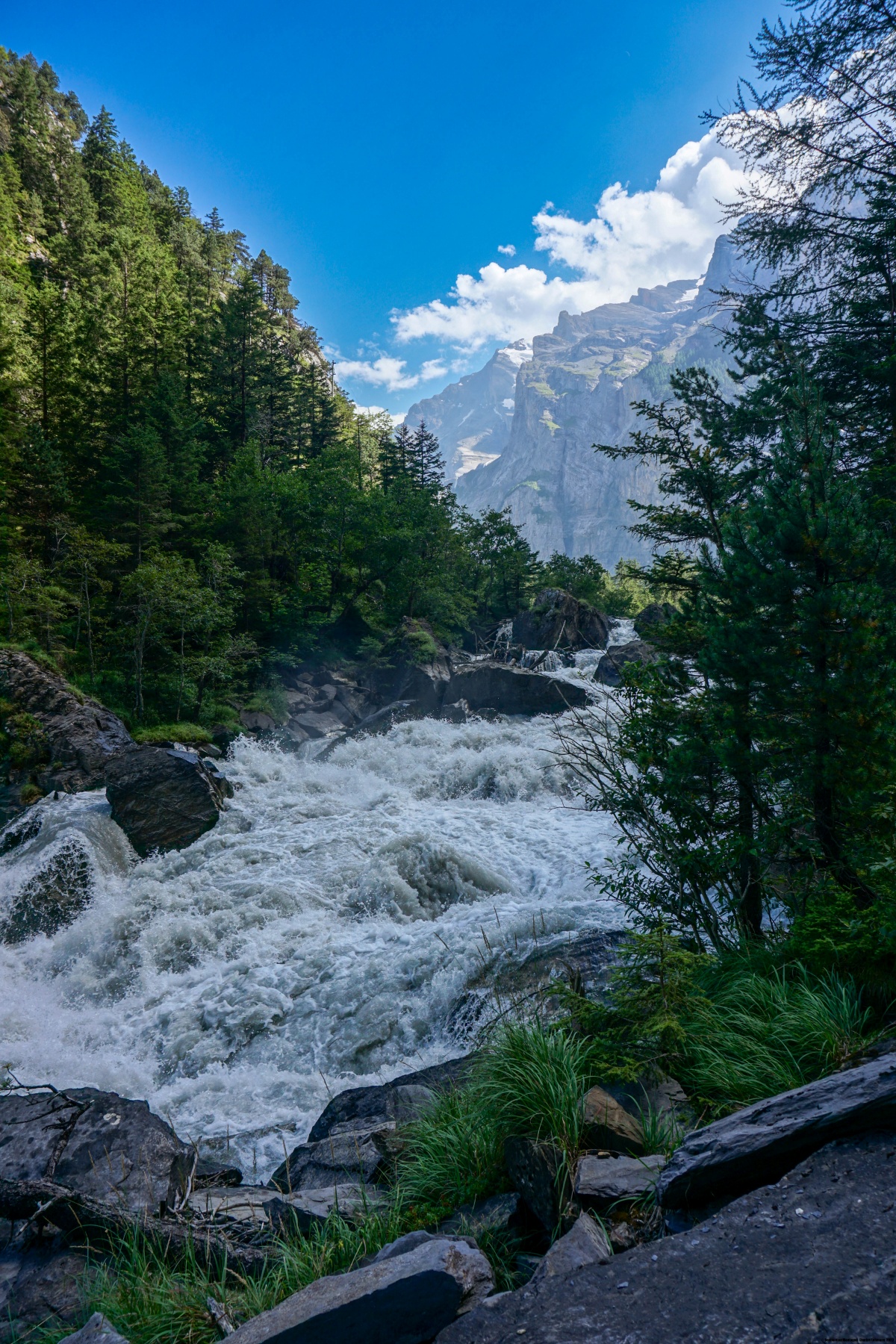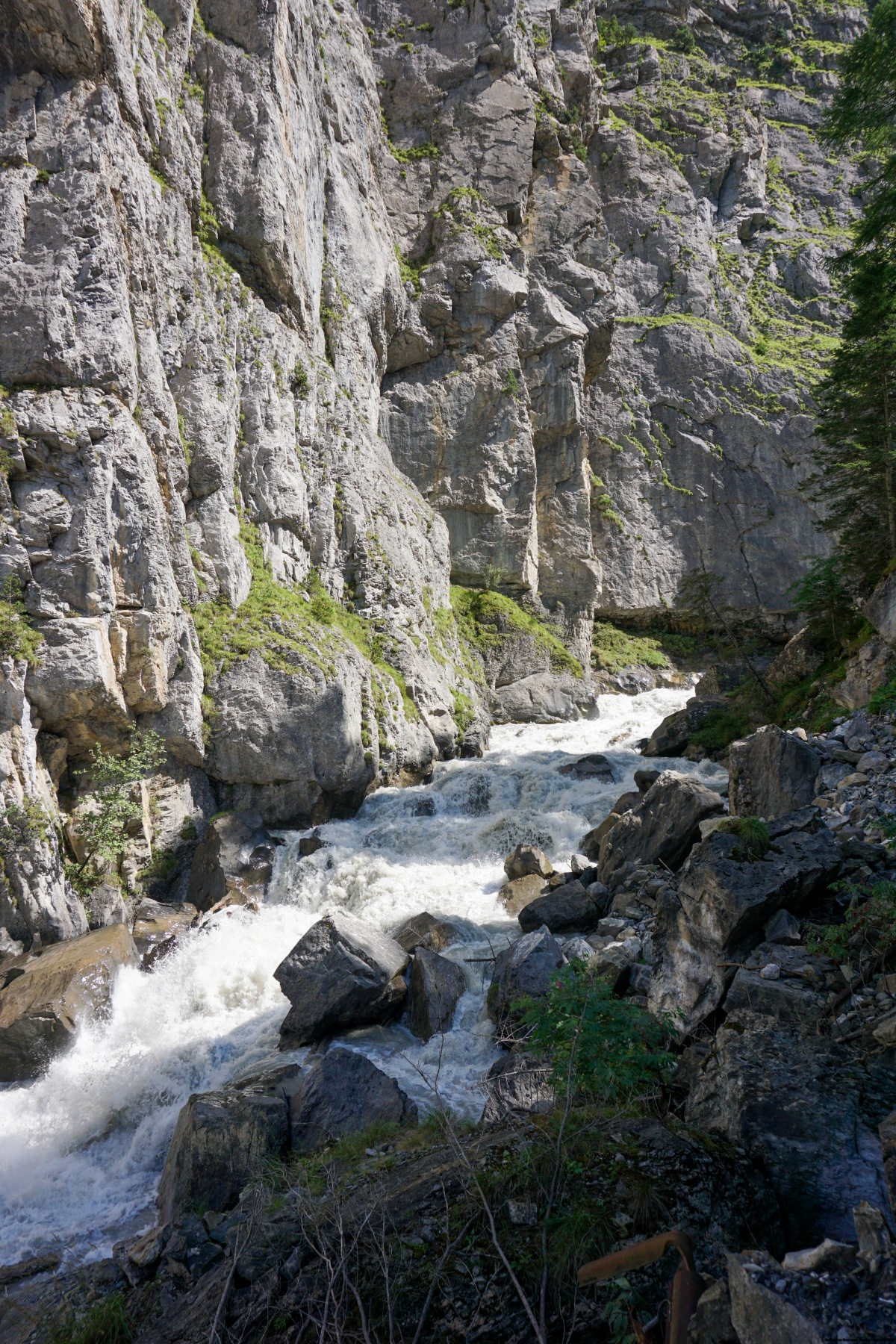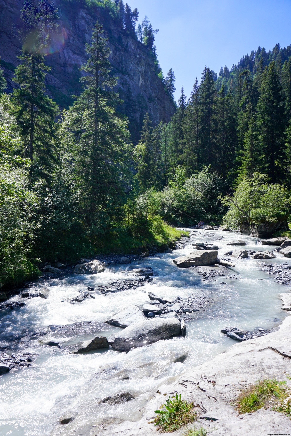 Unten im Gasterntal angekommen folgt man der Kander bis nach Kandersteg. Aufgrund der Hitze, die dann herrschte, hatte sich dieser Wildbach in tosendes Wasser verwandelt und die Umgebung erinnerte mich an Calames Gemälde „Gewitter auf der Handeck“.