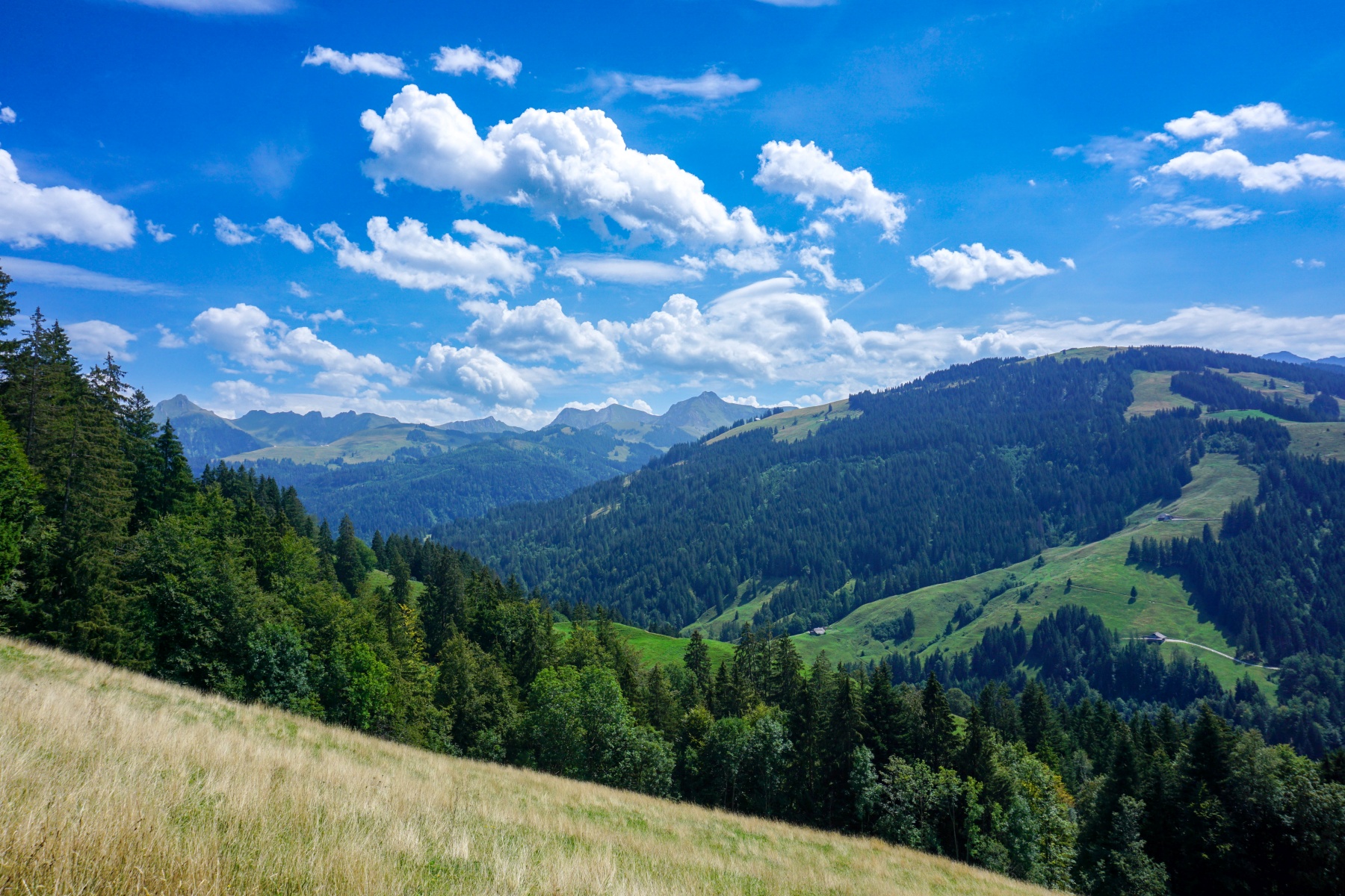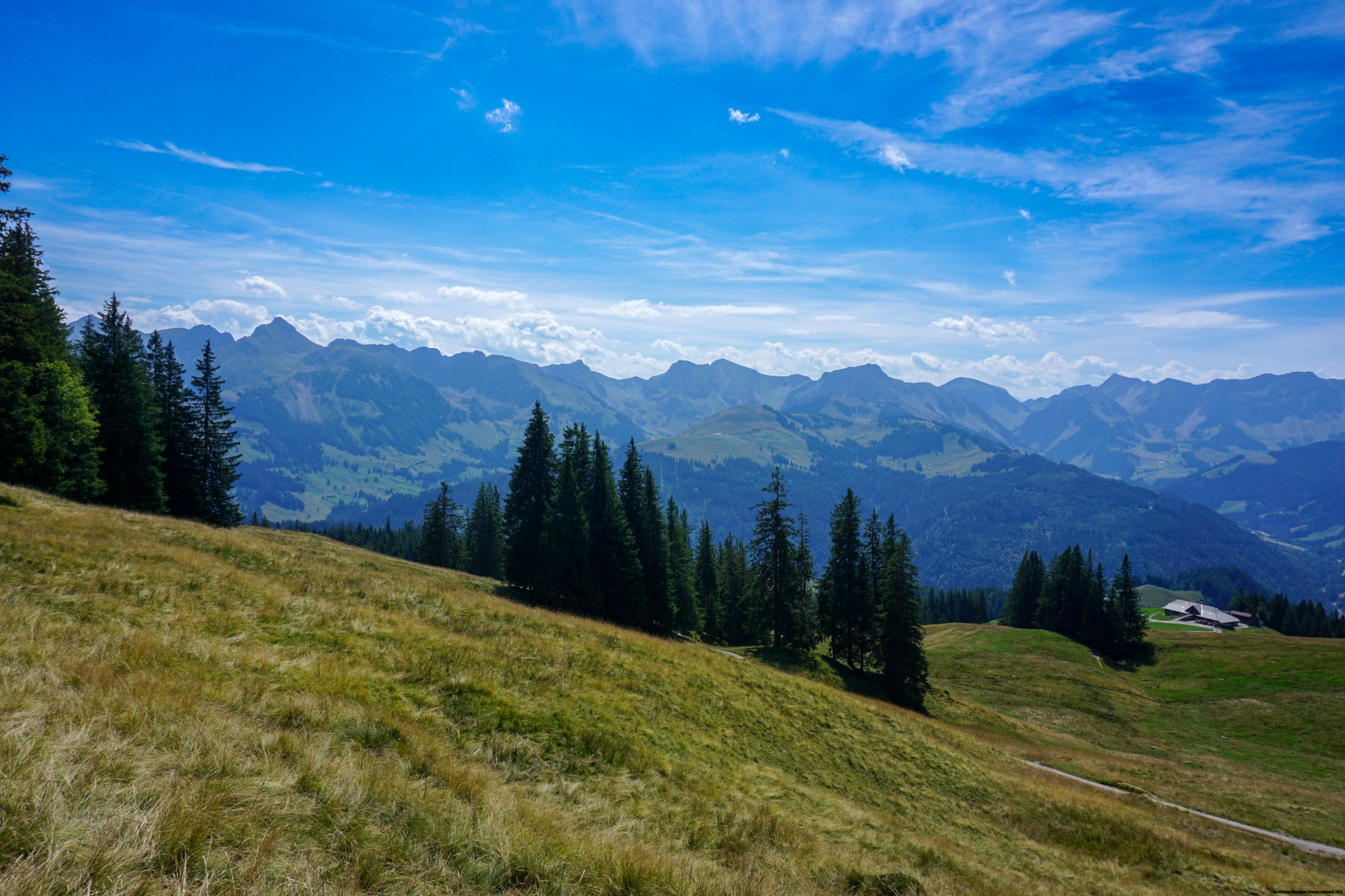 Der Gantrisch-Panoramaweg ist eine Route entlang des langen bewaldeten Bergrückens vor der gleichnamigen Bergkette. Offiziell startet es im Gurnigelbad und endet in Zollhaus, in der Sense. Es ist dieser lange Grat, der vom Guggershorn aus, den Blick auf die Berge der Berner Voralpen verdeckt.