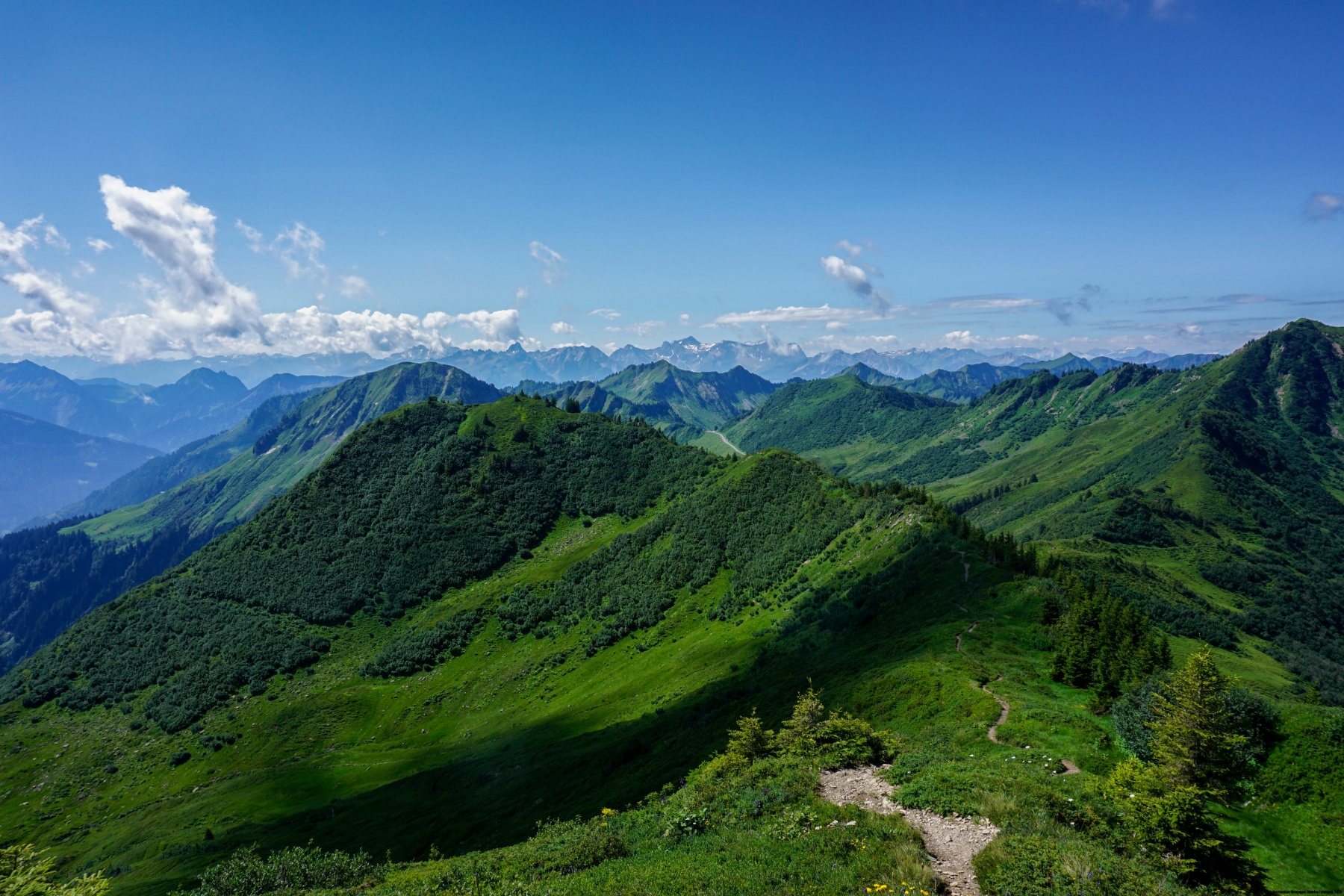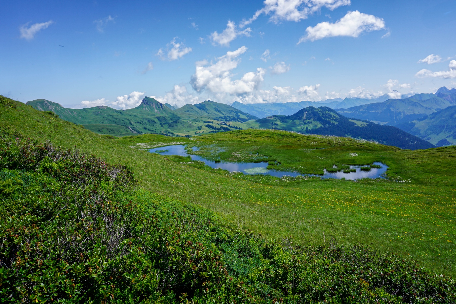 Here, I am offering a change of scenery. The hike we did here is in the Austrian Prealps of the Bregenzerwald. Located just a few kilometres from the Swiss border, these Prealps offer a landscape that is not entirely different from what we are used to. However, the accommodation is excellent, and the welcome is warm, making it a pleasant destination for a hiking holiday. In addition, the Bregenzerwald is a little off the beaten track, and away from the valleys leading to the Arlberg. As a result, it is quiet, even if some places are quite busy.