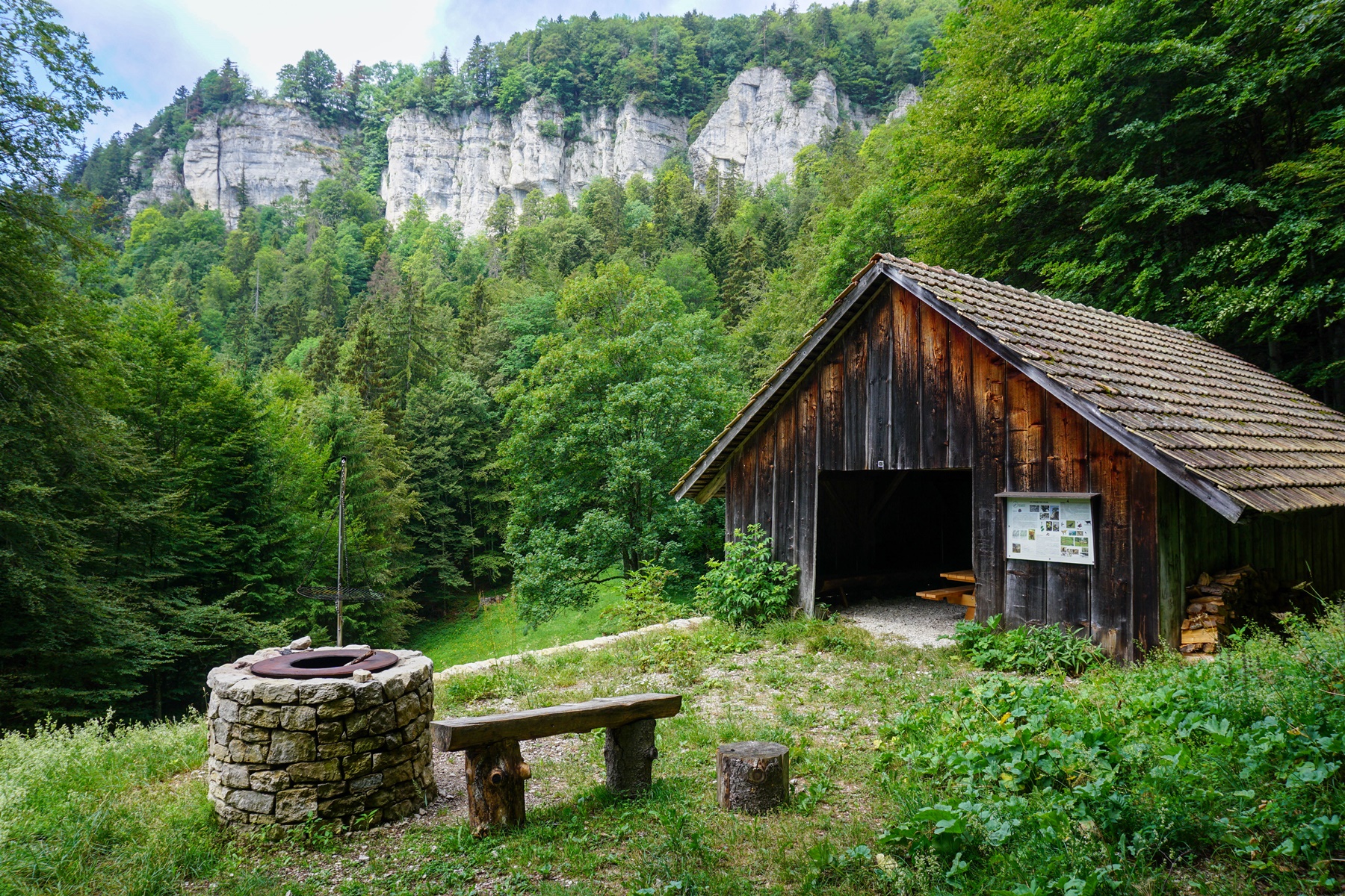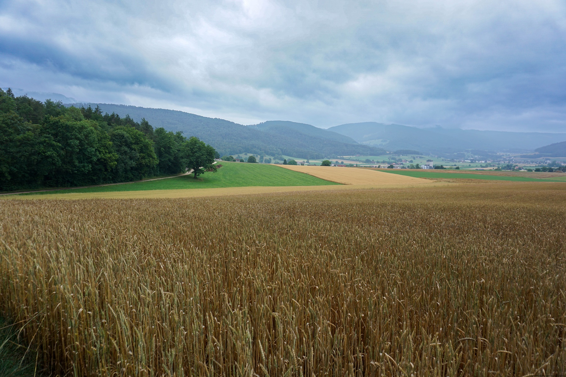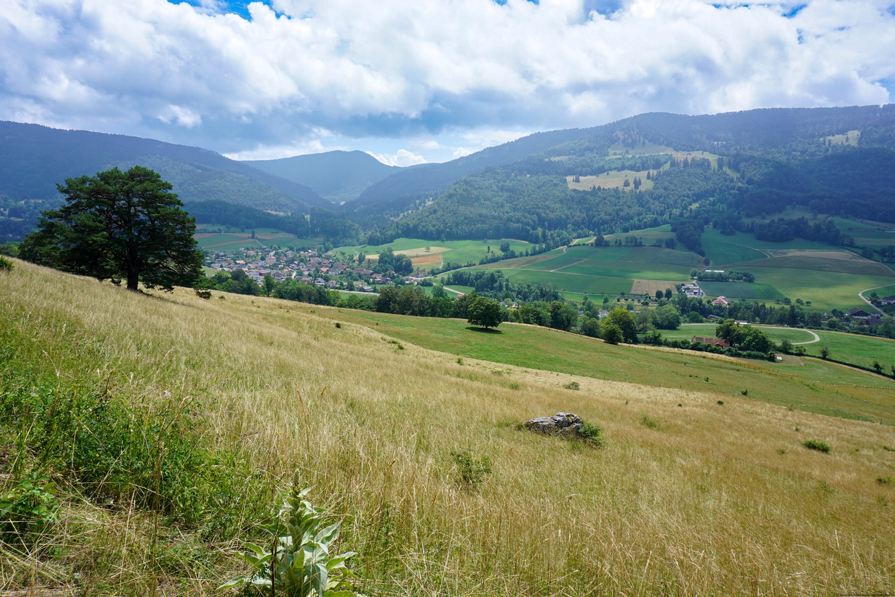 This stage (the fourth) of the Via Jura is a big stretch. The Via Jura is the route that crosses a part of the Jura between Basel and Biel. This stage is the longest of the entire route, even if it does not reach a peak at „alpine“ altitude, as the highest point is at 1302m at the Raimeux. The great distance is explained by the fact that to climb the top of Raimeux while avoiding the overly urbanised areas of the Birse valley, one detours from the most direct route by following, at the beginning, La Scheulte. One crosses La Scheulte at Vicques, just before the climb to Rebeuvelier.