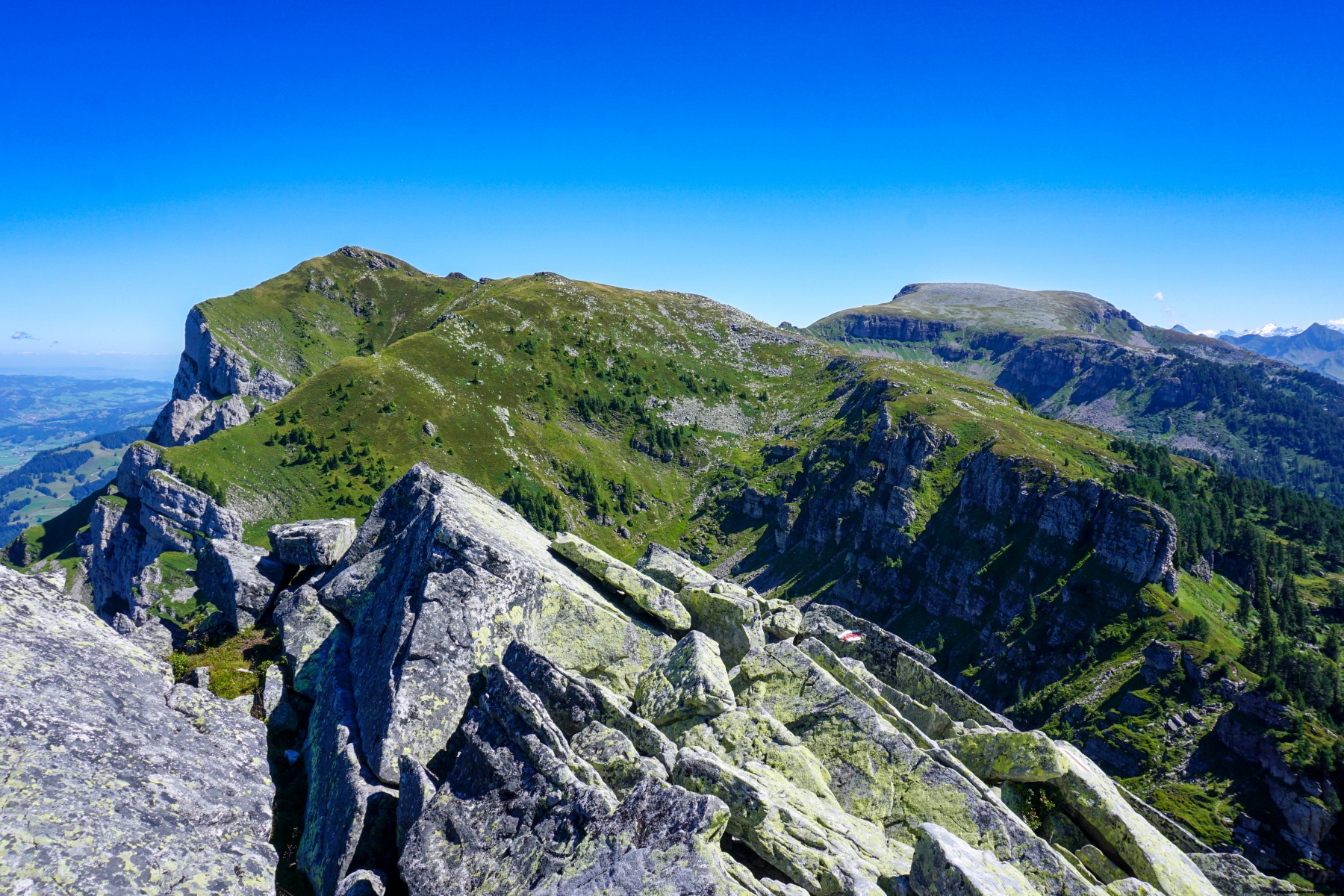 Wir hatten uns richtig entschieden, diesen Gipfel zu besteigen, denn dann genossen wir einen herrlichen Ausblick auf die Entlebucher Bergwelt: Beichle und Schrattenflue. Vom Westgipfel hätte man keine so weite Sicht.
