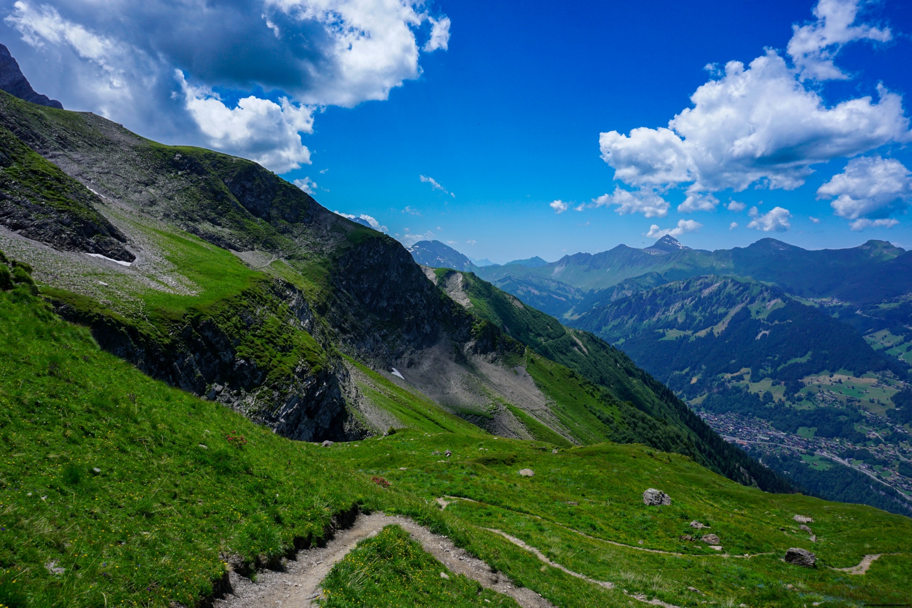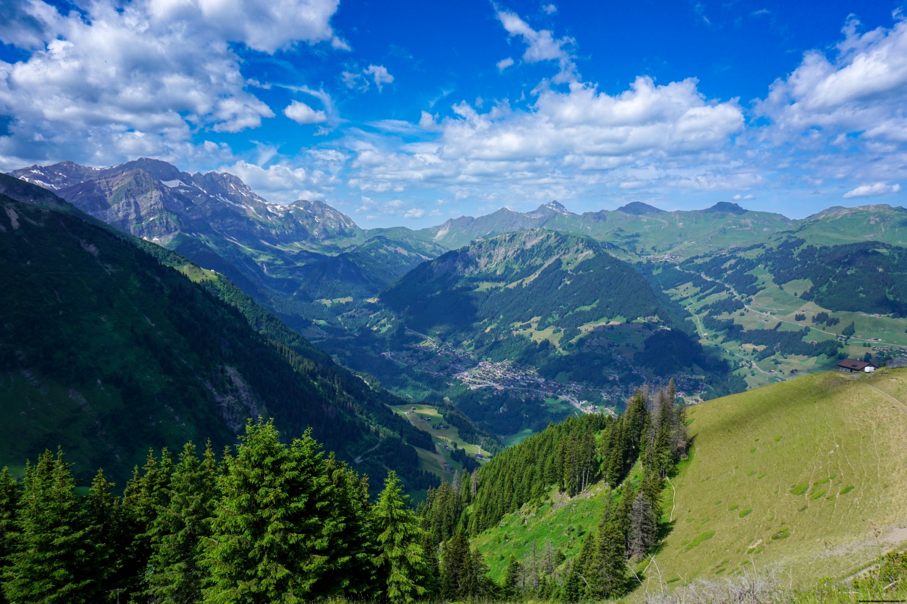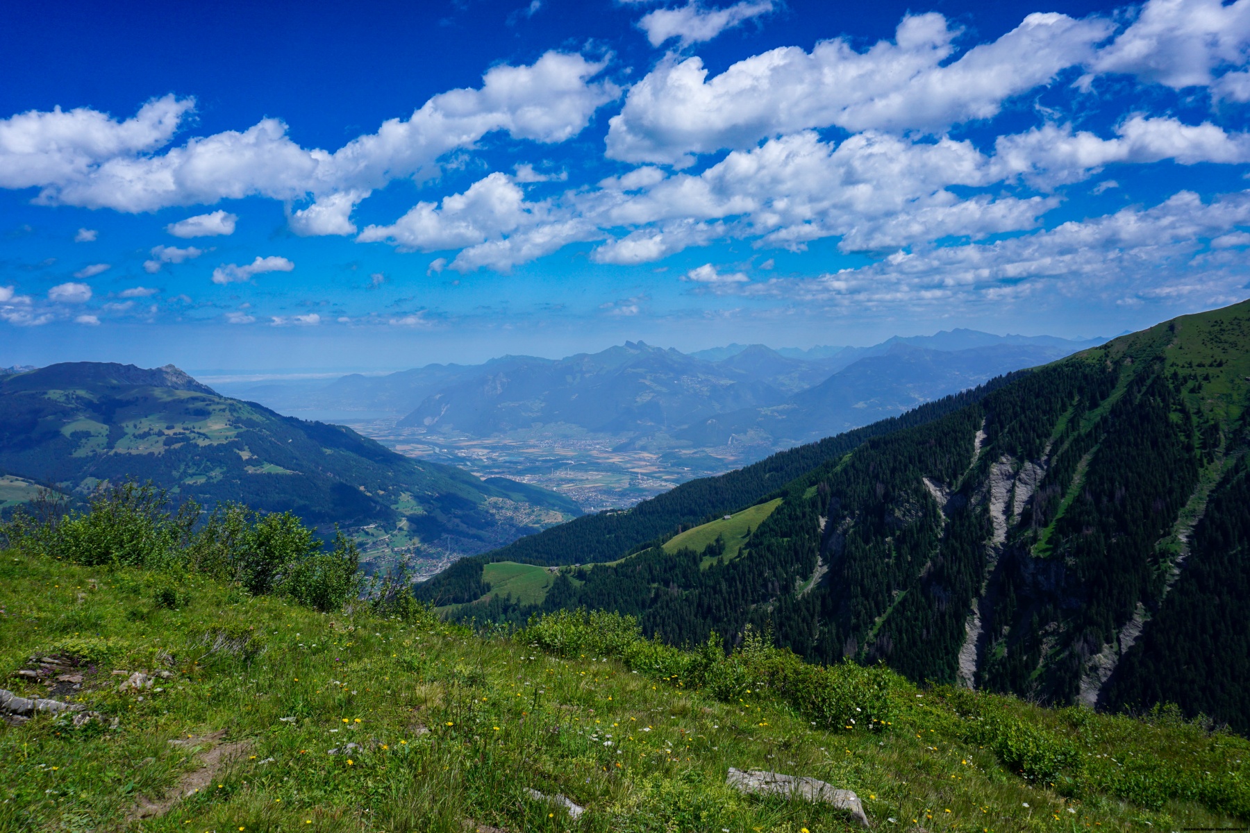 Der markierte Weg führt steil durch den Wald hinauf und quert mehrmals die Route de Soi. Teilweise gibt es von alten Stürmen verwüstete Gebiete, in denen nur wenige Bäume übriggeblieben sind, was einen Blick auf das Val d’Illiez und den Kamm an der Grenze zur Haute-Savoie erlaubt.