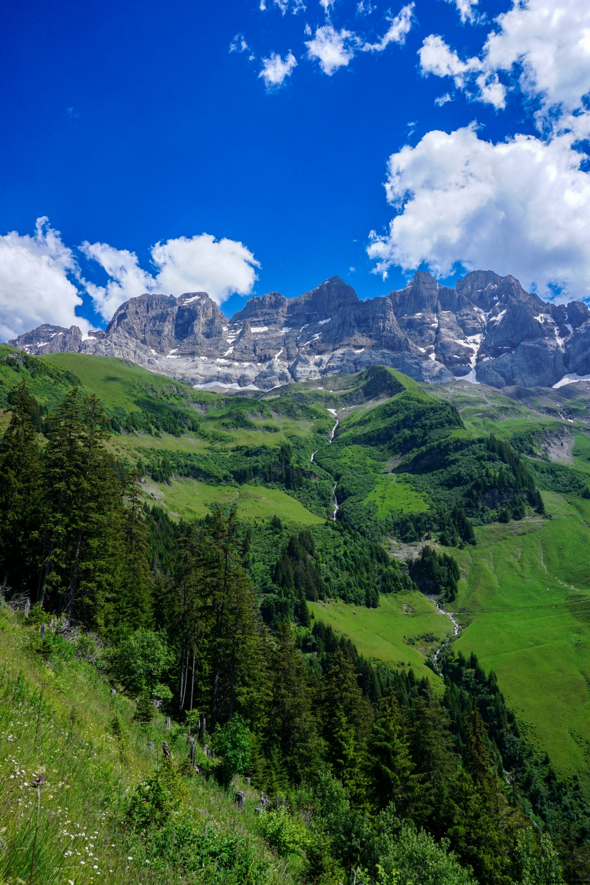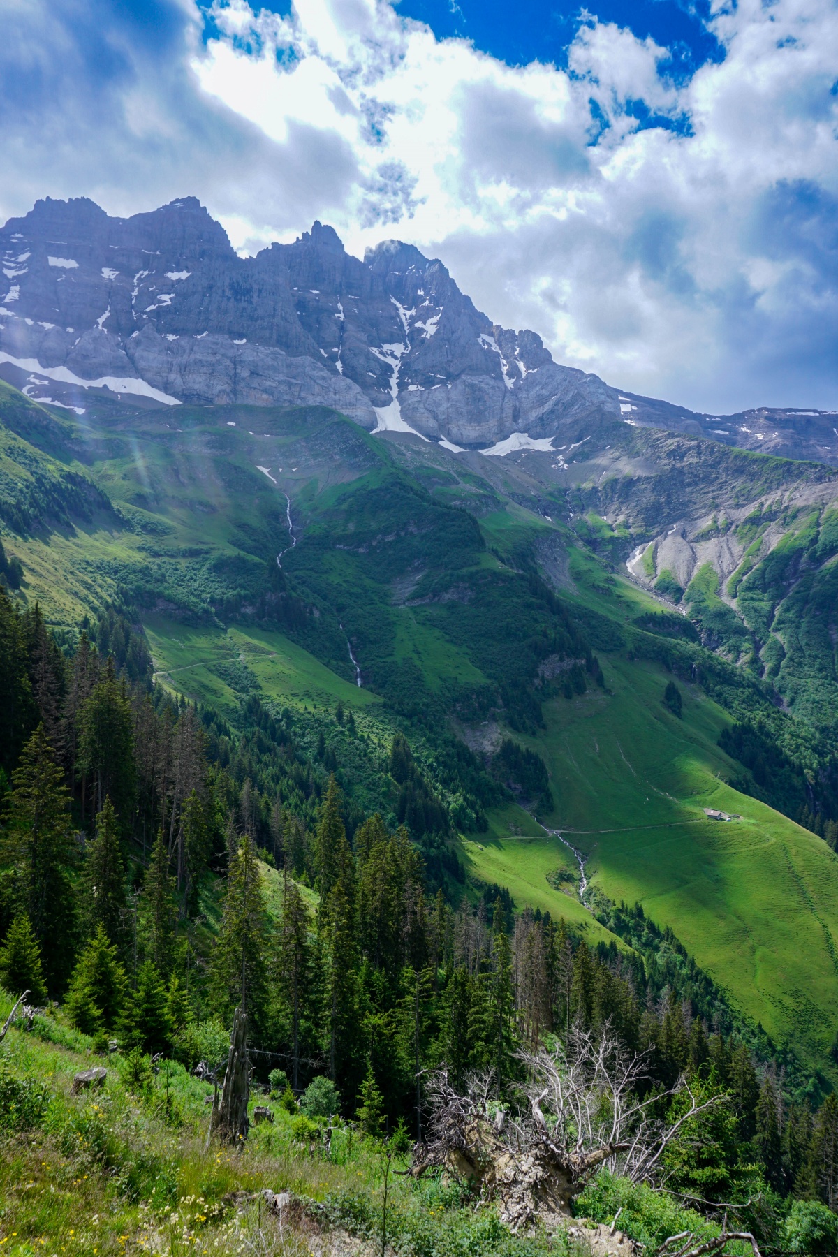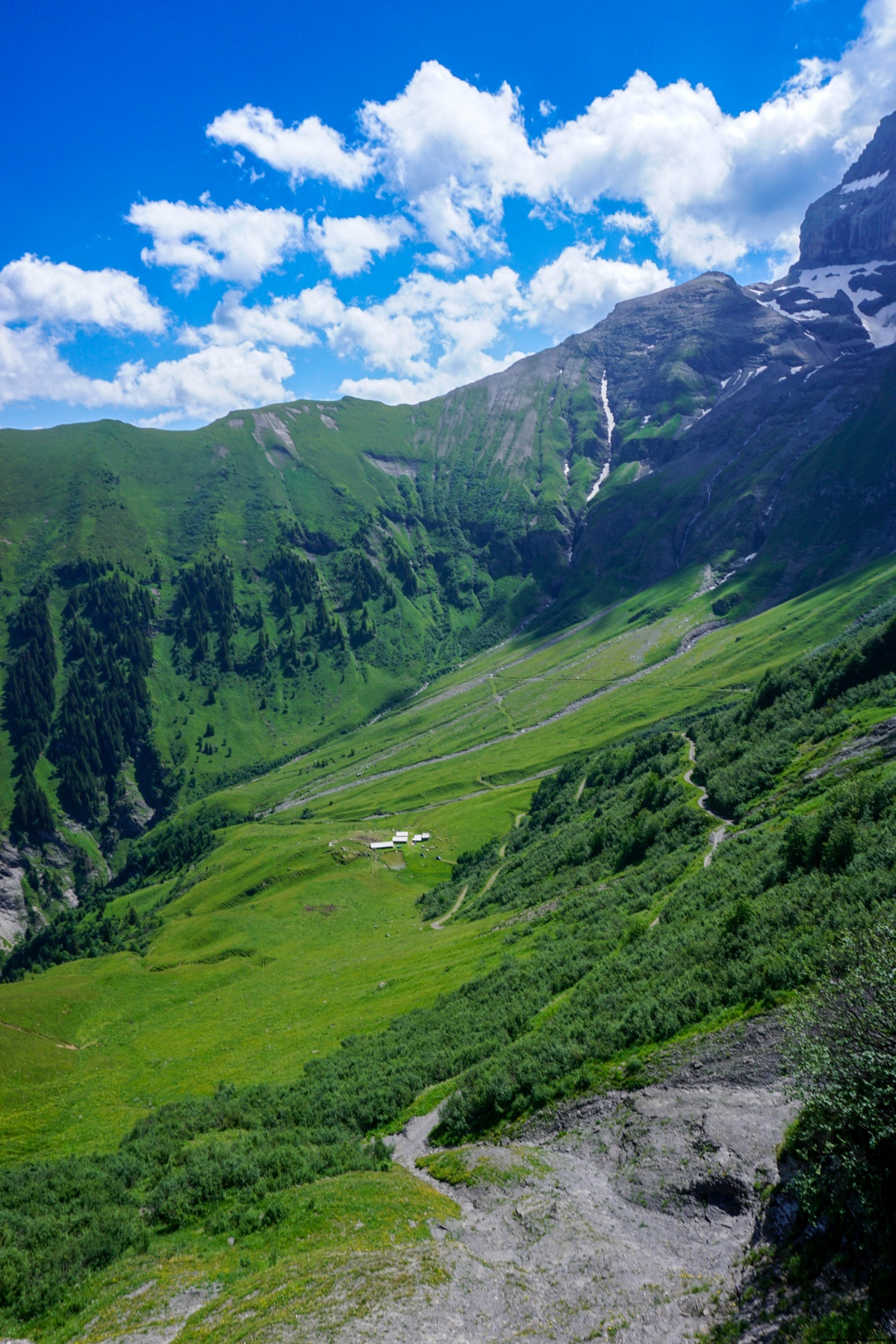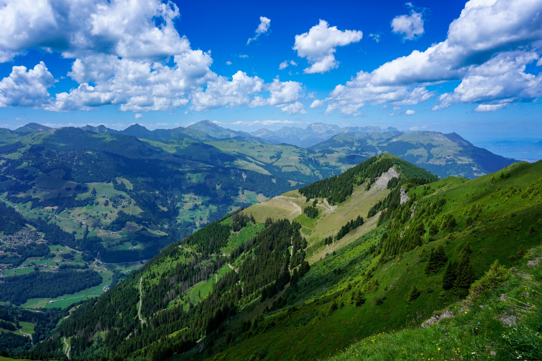 Der markierte Weg führt steil durch den Wald hinauf und quert mehrmals die Route de Soi. Teilweise gibt es von alten Stürmen verwüstete Gebiete, in denen nur wenige Bäume übriggeblieben sind, was einen Blick auf das Val d’Illiez und den Kamm an der Grenze zur Haute-Savoie erlaubt.