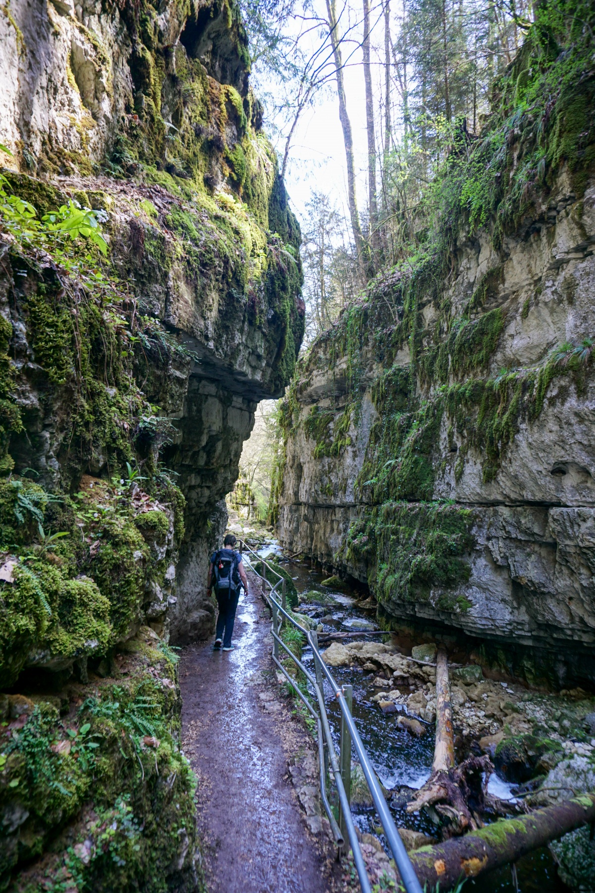 After crossing the Twannbach, you first follow a section of forest road (officially known as the Lamboing Road) and, at a fork, follow a trail approaching the river. This is the best way to follow the river, as facilities allow you to navigate the gorge safely. At the exit of the gorges, there is a small shed where you will be asked to pay a small amount for the passing (and the maintenance) of the path to the gorges.