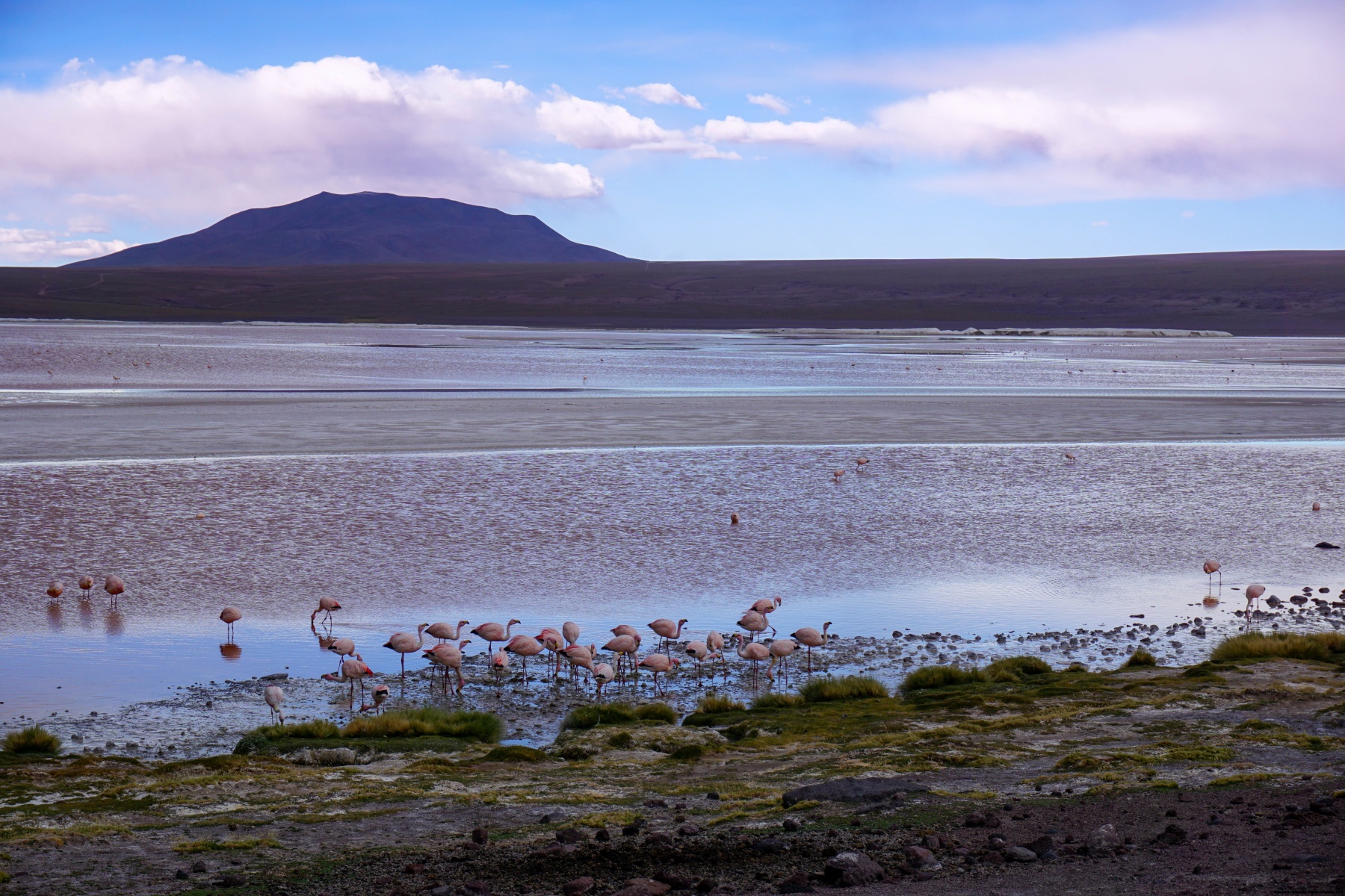 Du côté bolivien, après avoir remplis les formalités, nous nous sommes mis en route pour rejoindre Villa Mar. Les fleurons rencontrés le long de ce périple sont certainement le Sol de Mañana avec ses geysers de boue et la Laguna Colorada avec sa multitude de flamants roses.