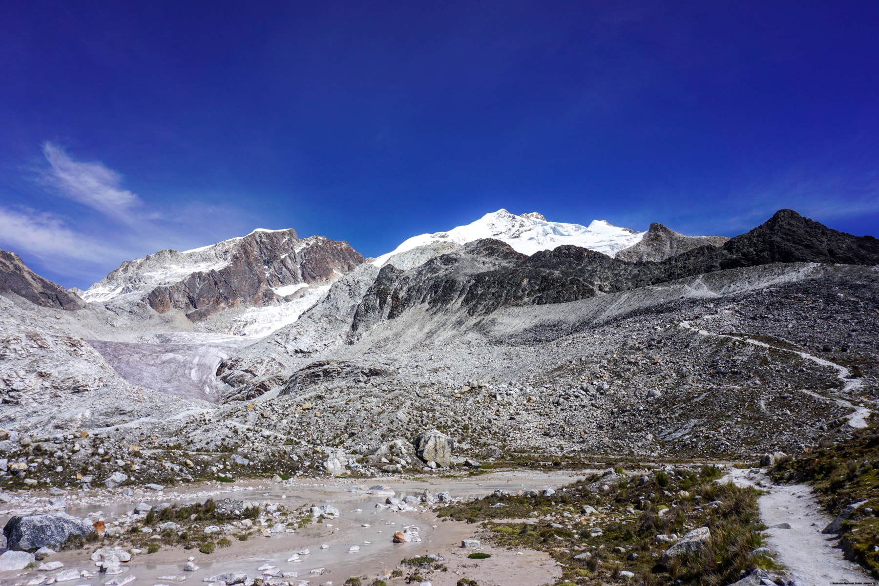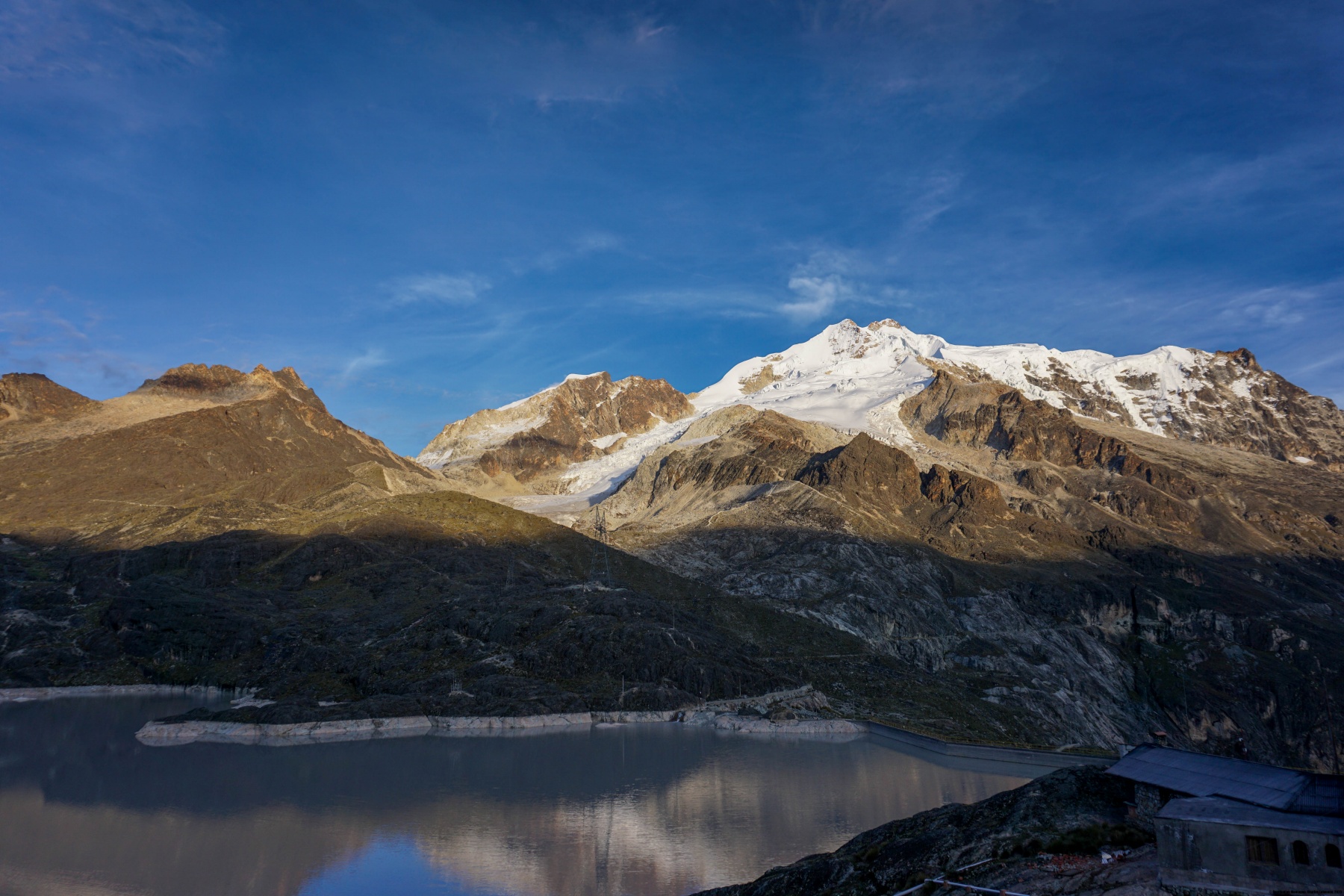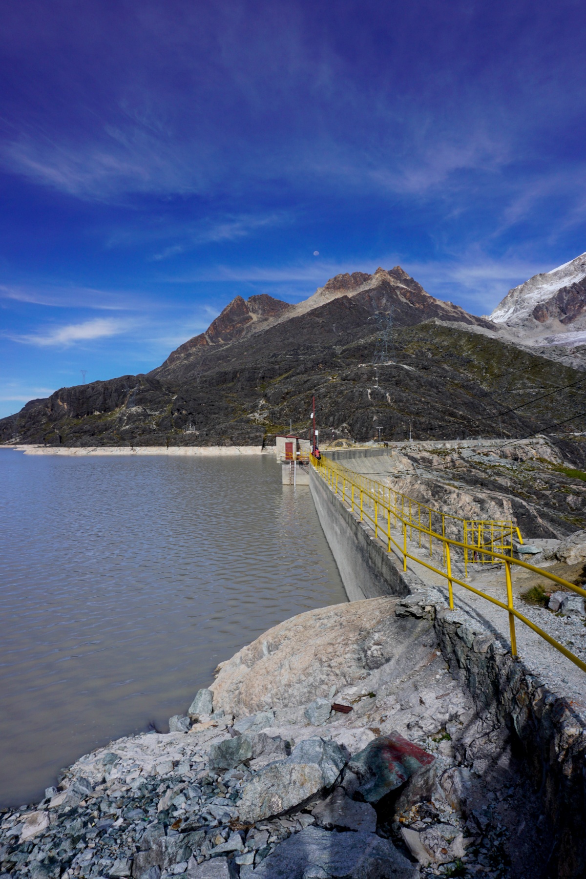 Le lac Zongo est en réalité un lac artificiel dont l’eau est clairement glaciaire : elle est laiteuse. Cette eau contraste fortement avec celles que l’on peut voir de loin en montant, et en particulier du lac de Milluni, à côté duquel se trouvaient des mines. Ces mines d’argent et d’étain ont eu, comme malheureusement trop souvent, pour conséquence de souiller la région en métaux lourds.