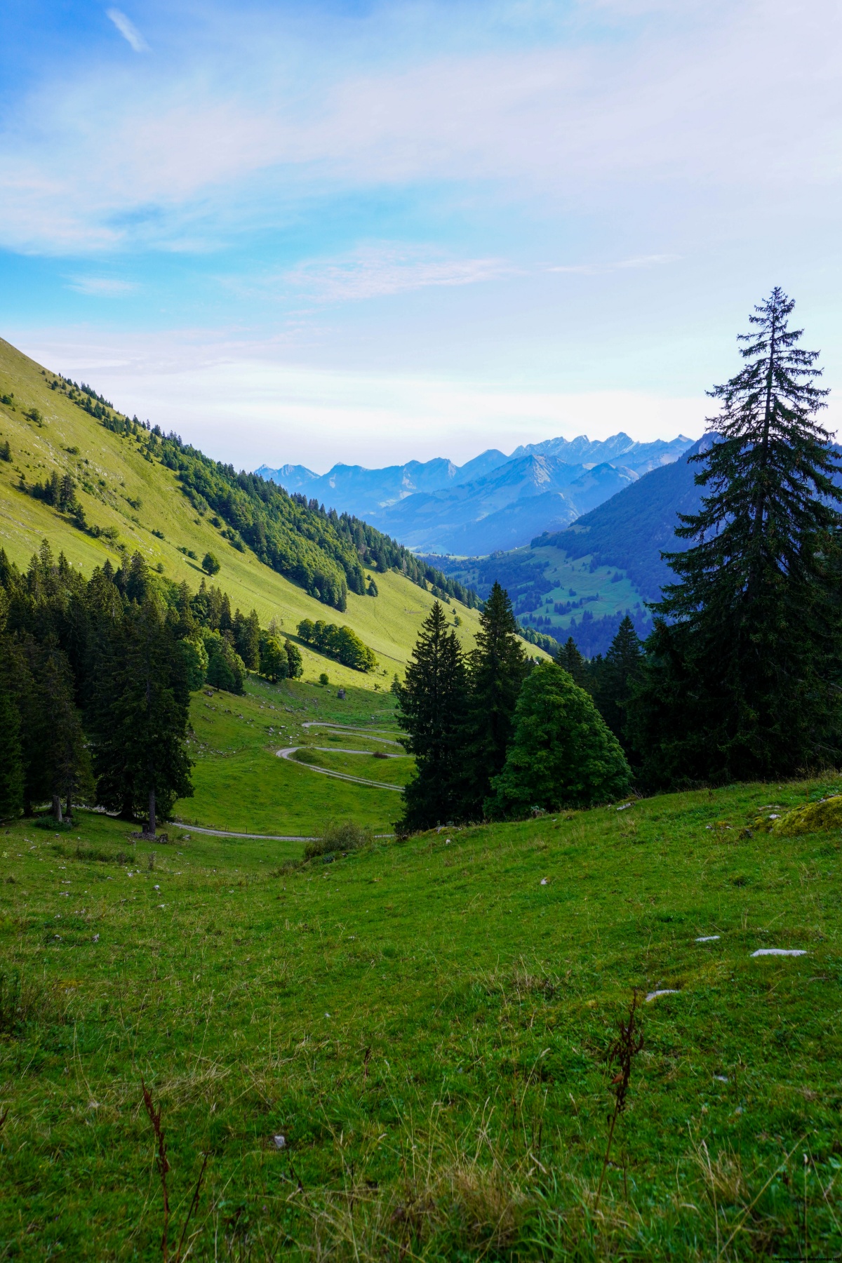From the starting point in Les Avants, you first must take the steep road leading to Jor. Be careful here not to start too fast, as it is steep. Shortly after Jor, you leave the road to go down a bit and cross the Baye de Montreux. Then comes a crossing and a steep climb. This climb was probably built because of a landslide that cut off the old mule track. Higher up, when you have left the steep part, you find the mule track again. After crossing the road twice, you soon follow it up to the Jaman Pass.