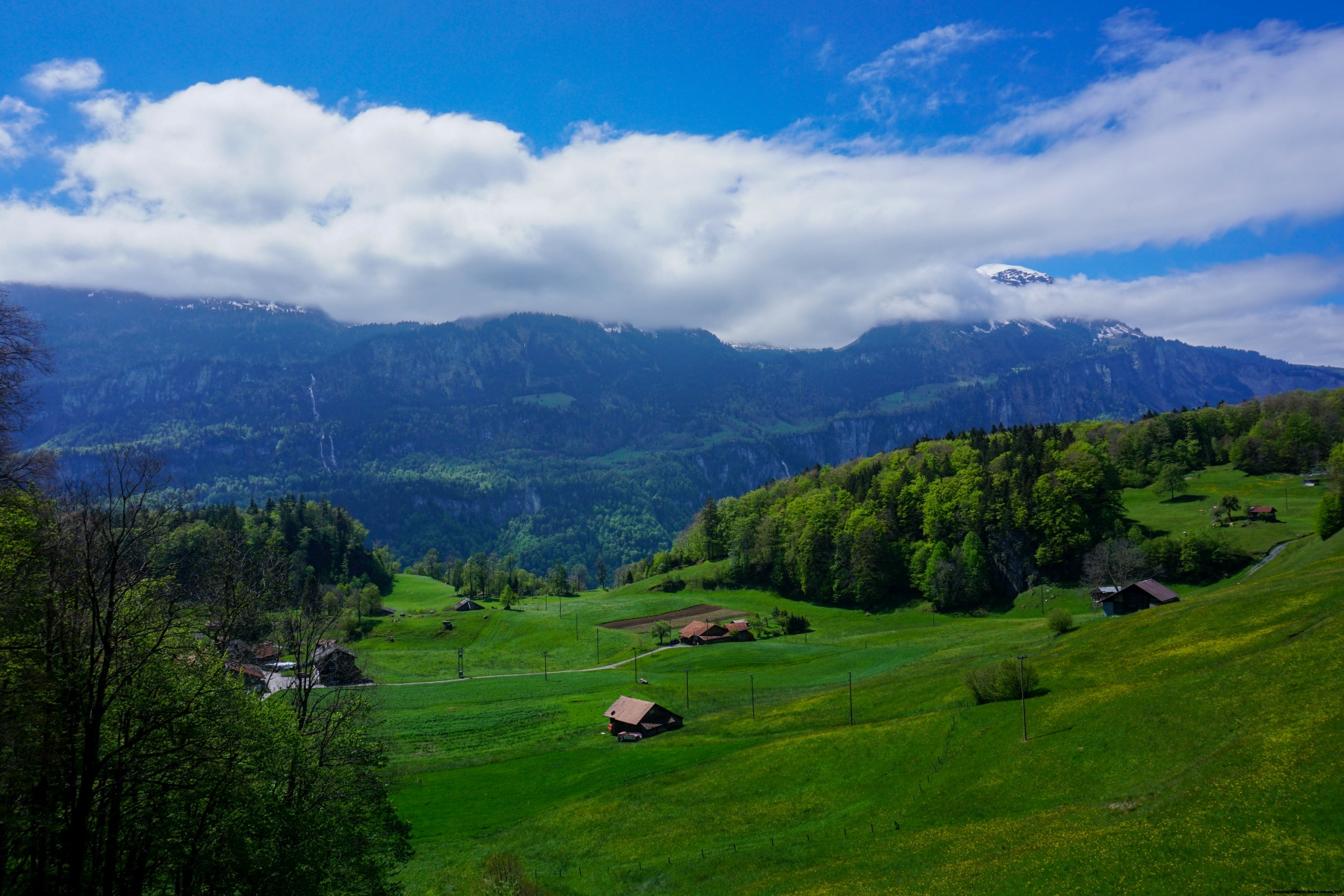 To descend from Brünig in the direction of Meiringen, we decided to descend to the hamlet of Brünigen and return above the walls of Schwendlen. Along the trail, a viewpoint (indicated by signs) is worth a detour. The fork is just before the descent to the bottom of the valley. At the bottom of it, you can then follow the river Aare for a long time before reaching Meiringen train station.