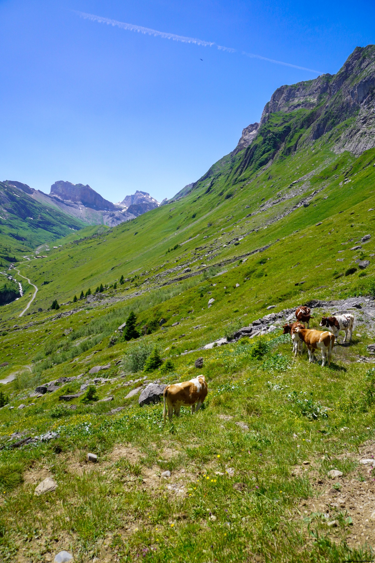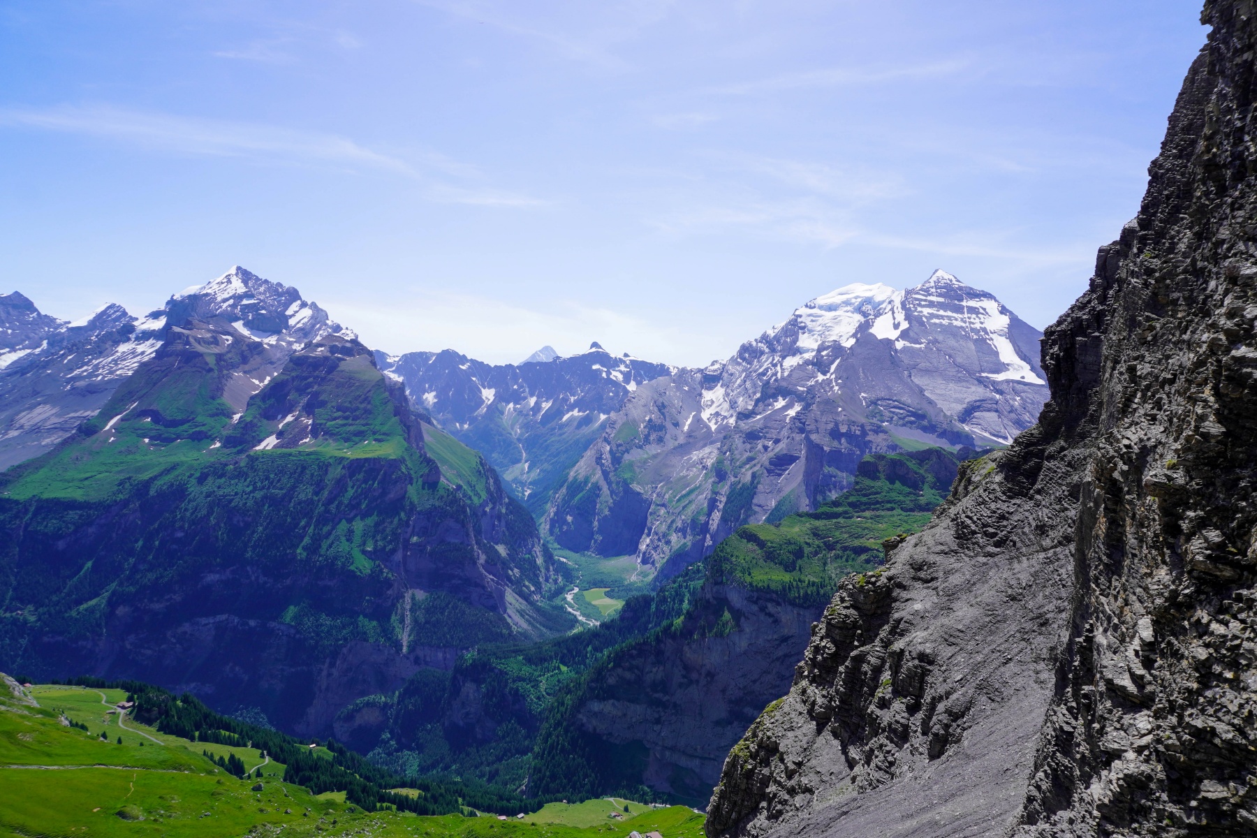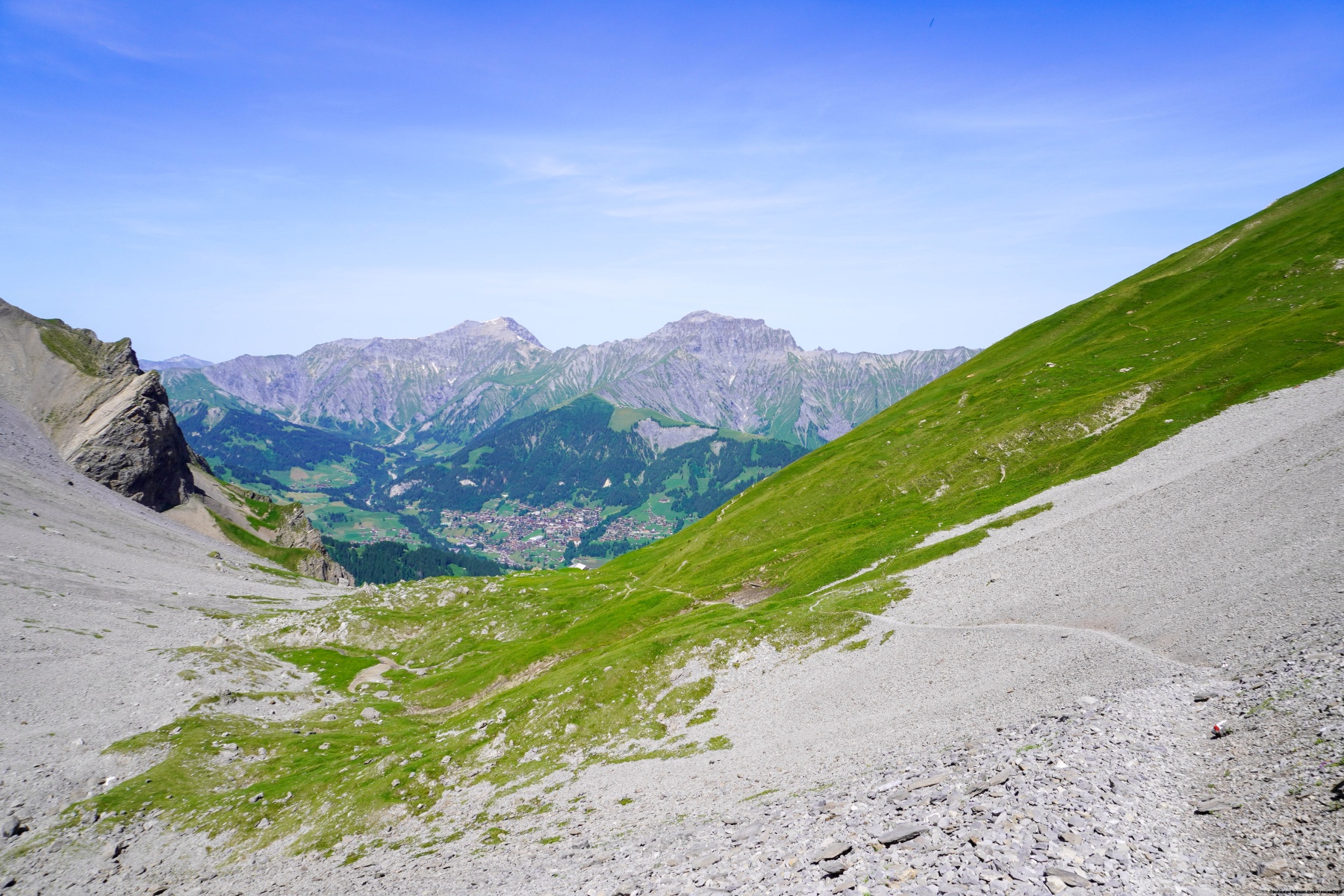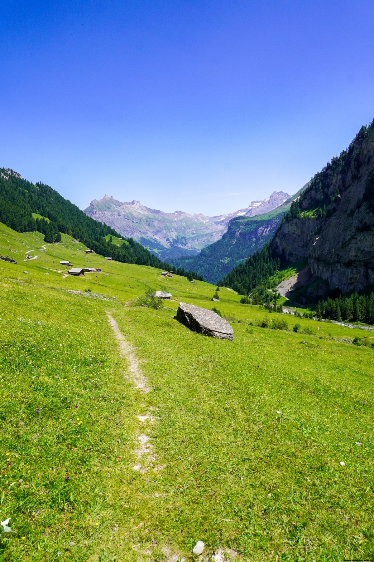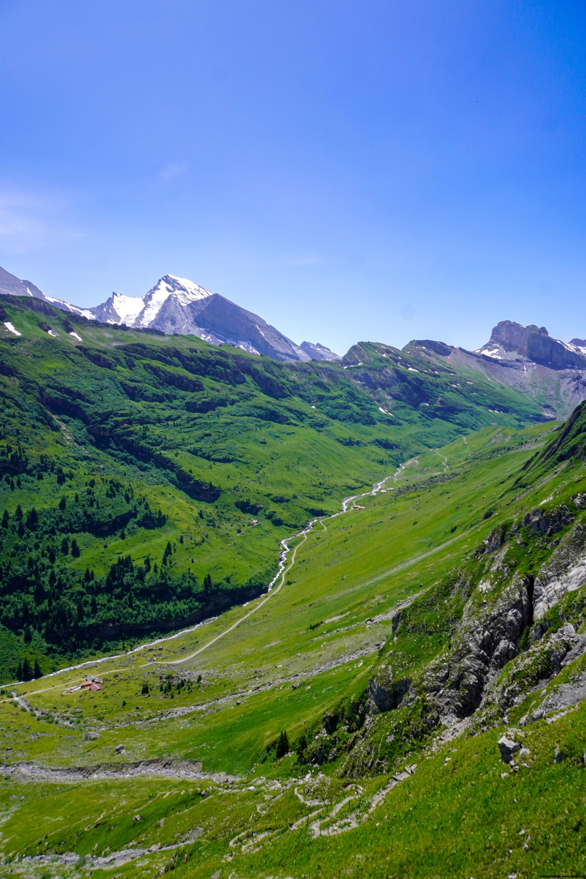 Malgré la chaleur et l’altitude du col, de franchir la Bunderchrinde a été une très belle expérience, à cause de la vue dont on y jouit. On se trouve alors en face de l’Oeschinensee et du Gasterntal.