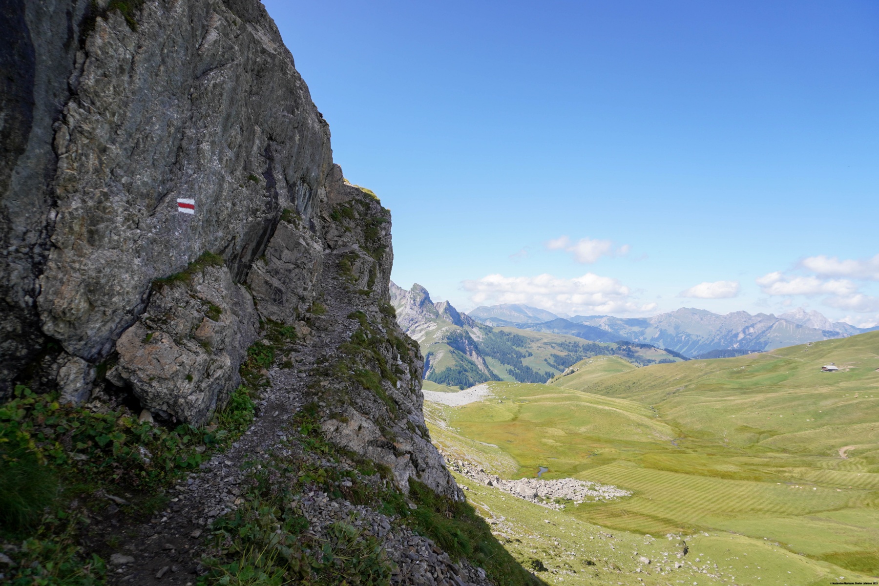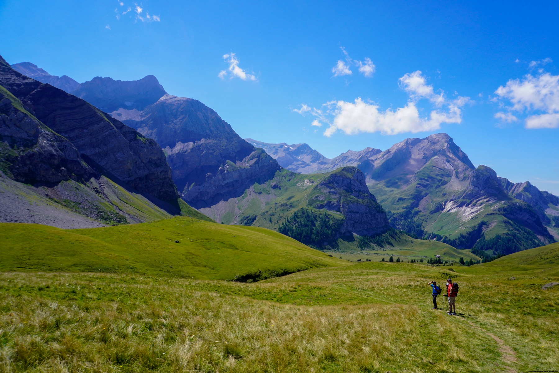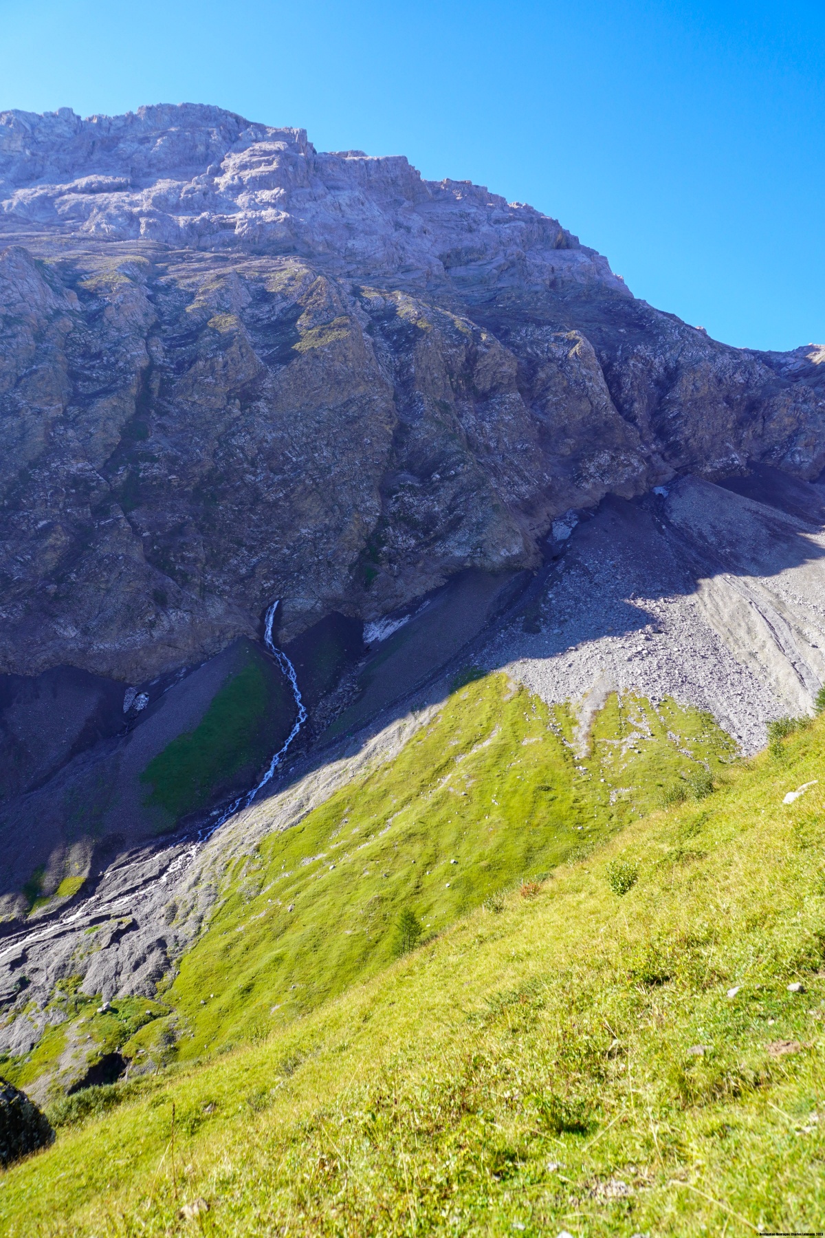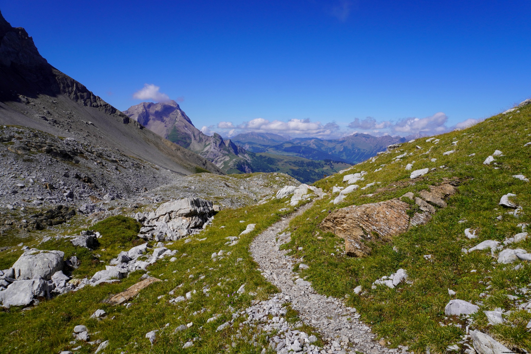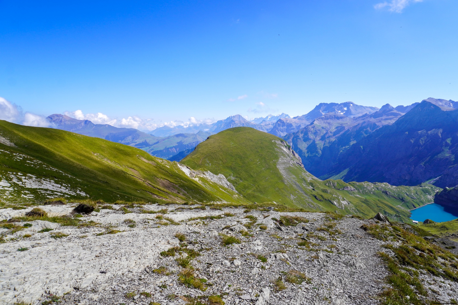 Here, we had left the Iffigenalp to climb towards the valley overlooking the Iffigsee. At the height of the lake, we followed the path that allowed us to reach the Tungelpass. Coming from the Iffigenalp, the surprising thing is that you must descend to reach the Tungelpass, which is unusual. Indeed, you descend through a rocky wall before reaching the crest that forms the pass. The Hängstesprung (the stallion’s jump), which is a passage allowing you to cross the wall, is not difficult, but it can be perceived as impressive, especially on the descent.