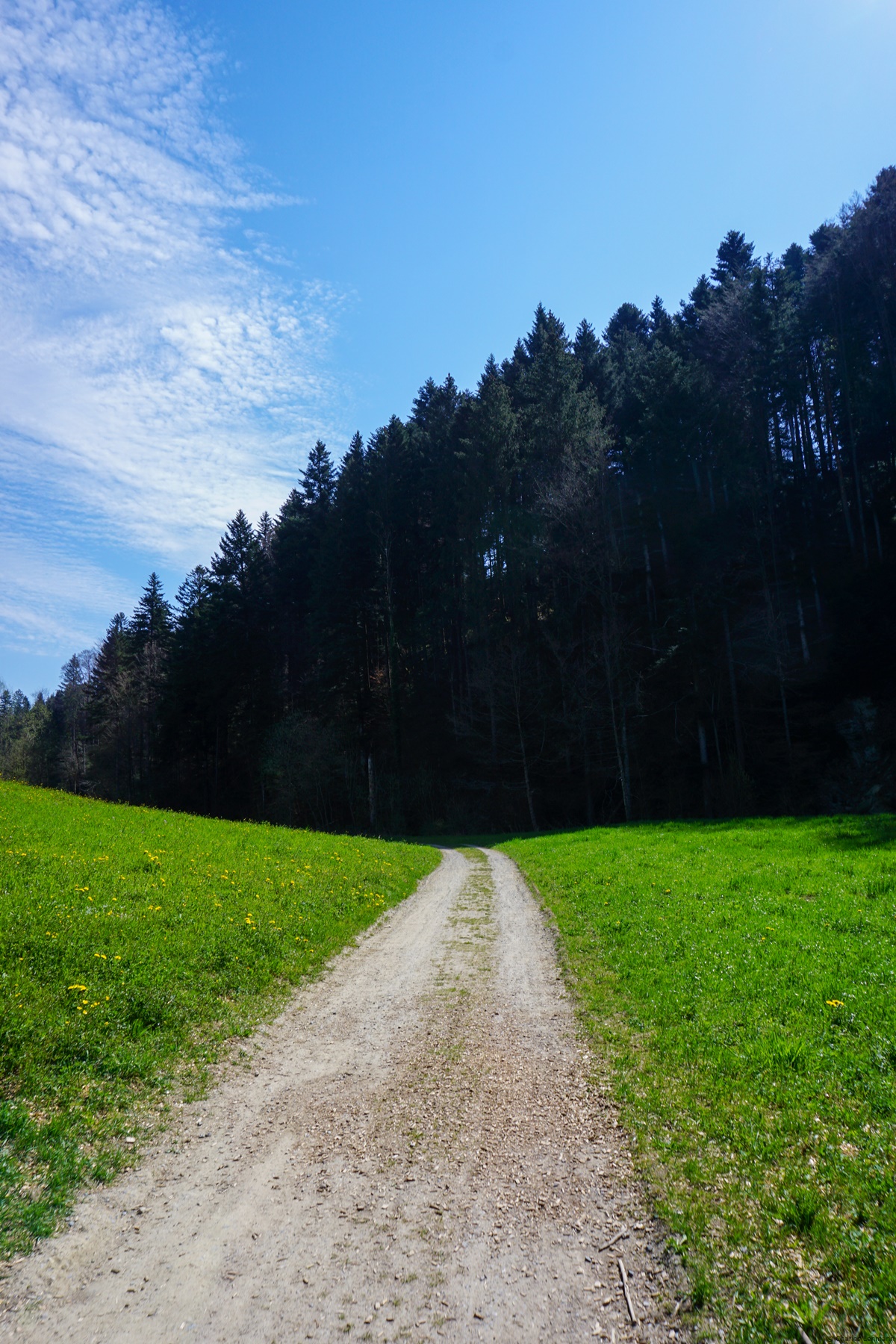From there, one leaves the valley of the Singine to climb through a very pretty valley: the Scherligrabe. Altough it climbs more than along the Singine, but the landscape being more varied, one takes pleasure in sweating a little. The Scherligrabe is quite steep and shady at first, but when one reaches Grabenmühle, the valley opens more and more, and one get a wider and wider view. Above Mengestorf, one can enjoy the viewpoints over the Gantrisch region.