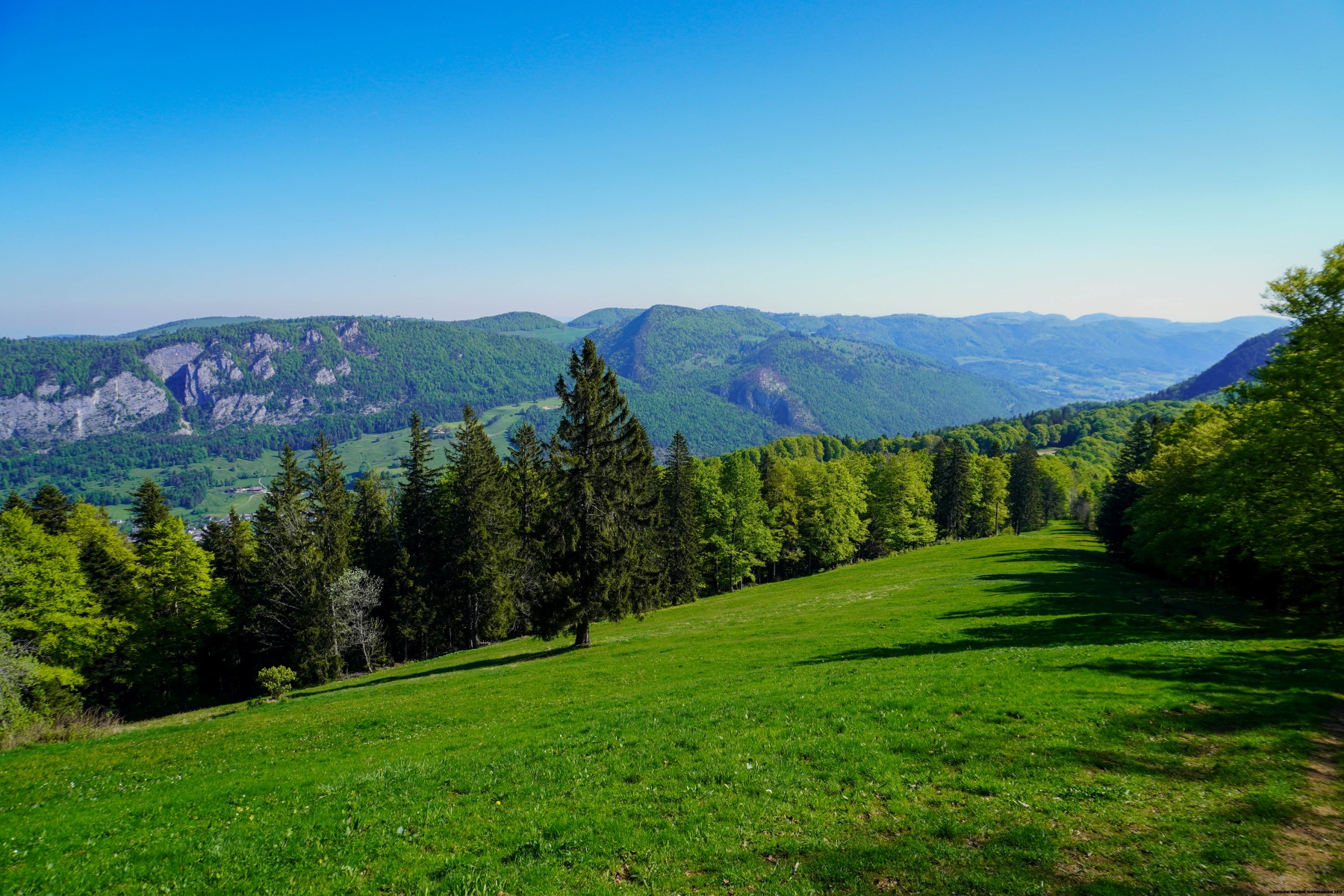 We started out from the centre of Welschenrohr and followed a section of the road up to Balmberg. As we were there early, there was not much traffic, but I can imagine that it would have been much more unpleasant later in the day. After leaving the road, we followed the marked path through the Schofschlucht gorge, which we crossed and then came out near the Krüttliberg meadows.