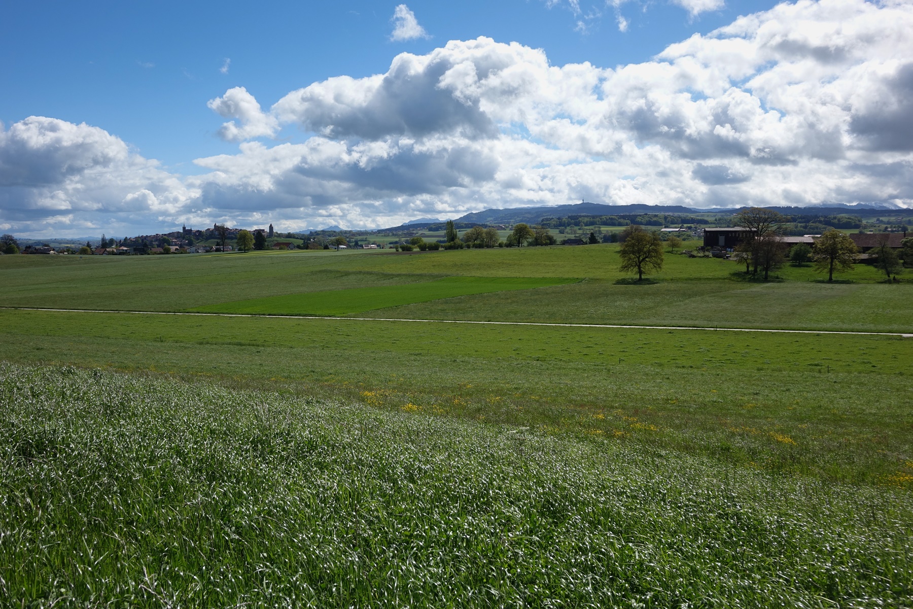 In the descent, one crosses the village of Lovatens and one then has a magnificent view of Lucens and its castle. In the background, one recognizes the Jura and the peaks of Suchet, Aiguilles de Baulmes and Chasseron. The descent continues as far as Curtille and from this village the route is practically flat, as it does not take long before following the Broye along the dikes.