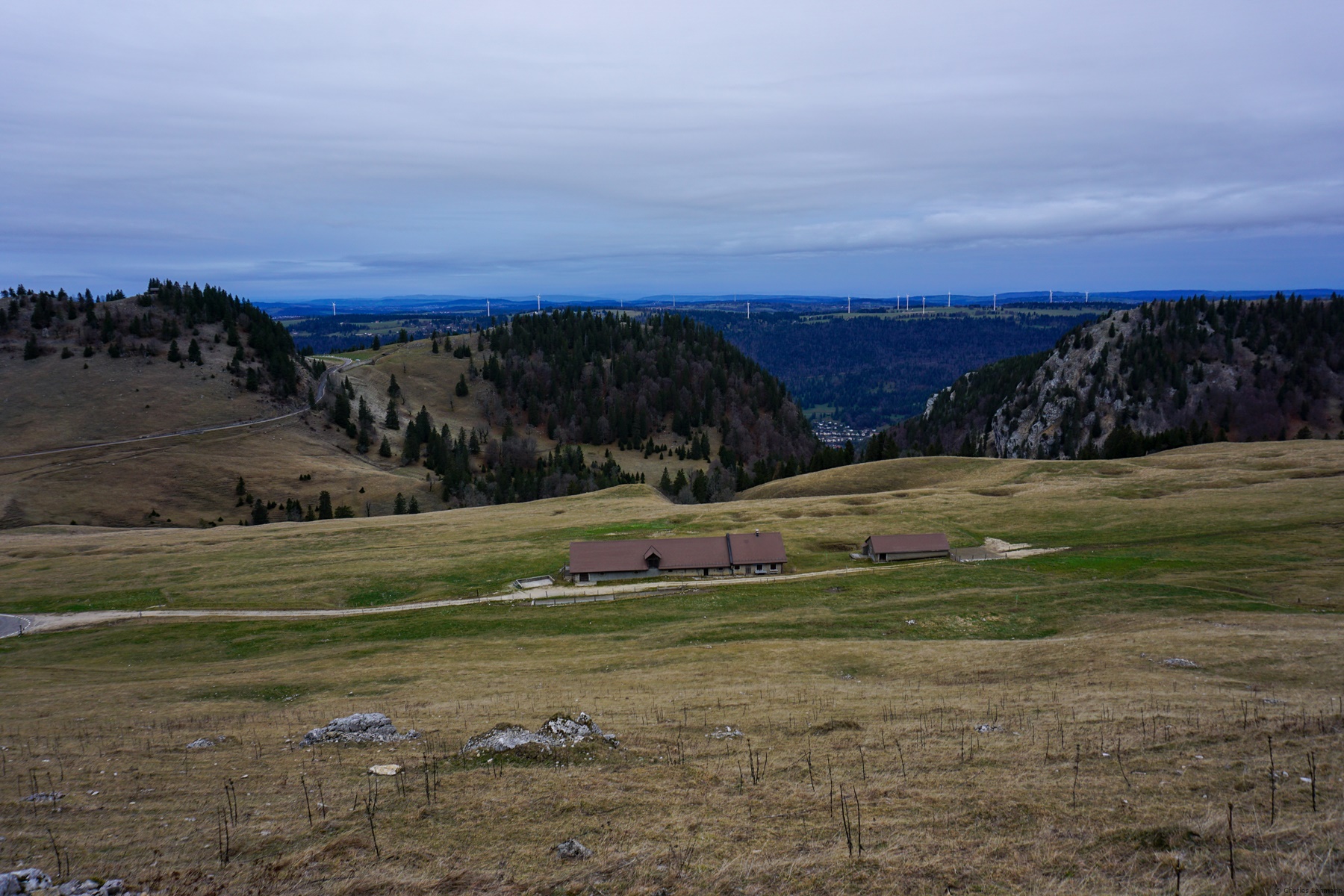 For the return, I started by crossing the rocks as best I could to cut the bend of the small road going up from the Vacherie de Nods. I then followed the marked trail which crosses a small pass near the Petit Chasseral and descends towards the Métairie de Morat. From this chalet, I followed the valley, quite long and monotonous down to Prés aux Auges. In doing so, I was able to follow the good path passing under the rocks of Egasse and joining the pastures of the Métairie des Plânes. Do not miss going to La Corne, a magnificent belvedere above Combe Grède.
