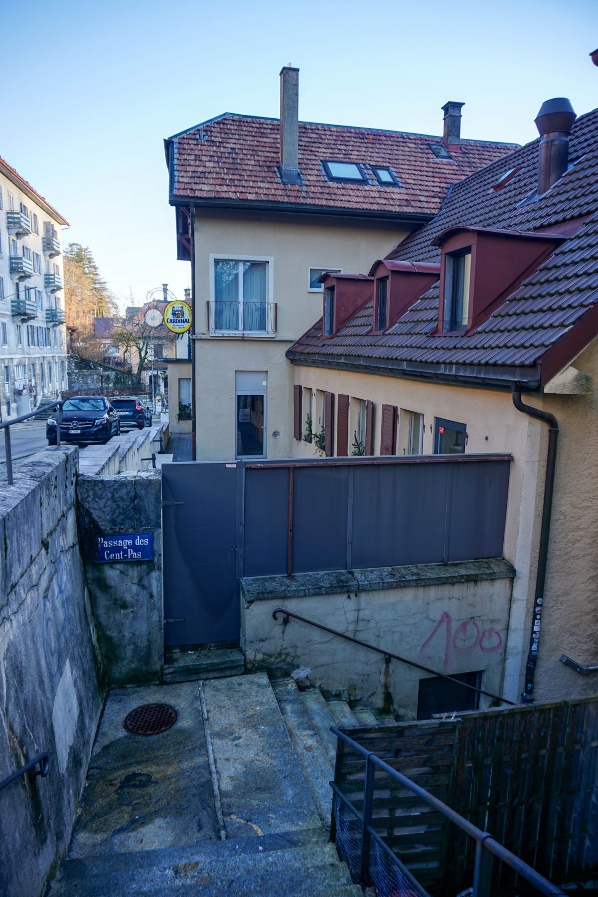 Departing from Le Locle station, you first must go down towards the town. It would be tempting to use the funicular, called the Remontoir, but it is more interesting to use the Passage des Cent Pas, going down between the houses of rue de la Gare. Once you have crossed the town, you must then climb towards the Communal by taking the Chemin de l’Argillat. Even though the latter is quite steep, it is part of the historic route, because it allowed, and still allows the shortest climb from the city.