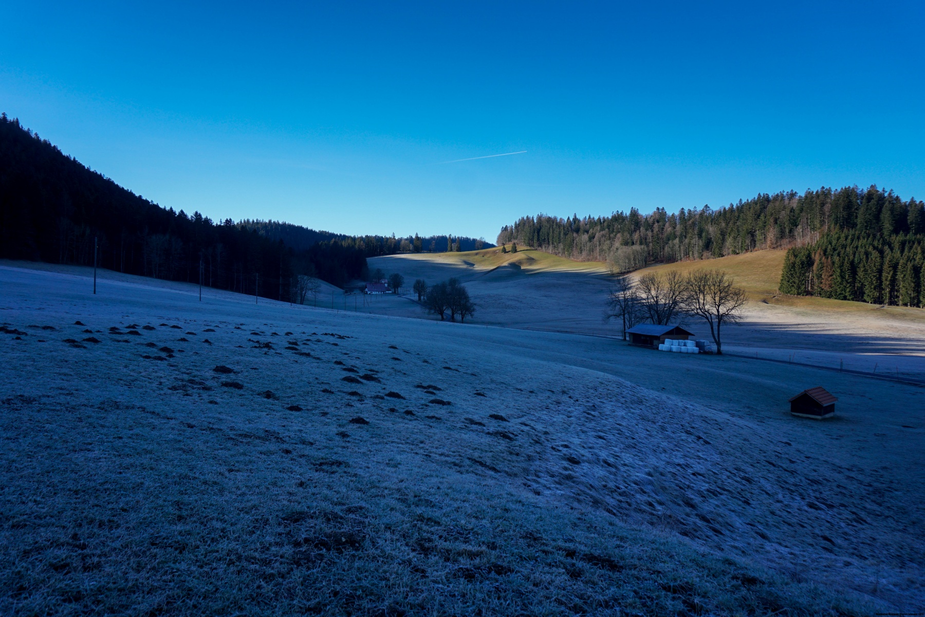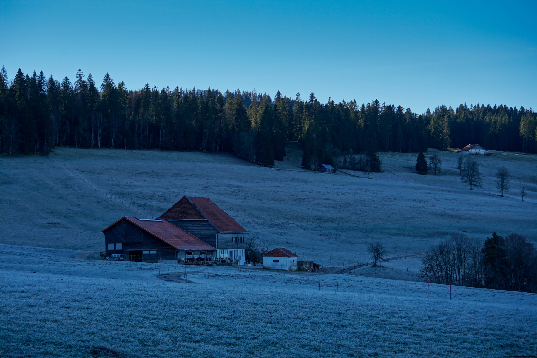 Once reached the Communal, you must follow the road leading to Entre Deux Monts for a long way. Luckily, it’s not too busy, but you still must walk on a paved road. Arriving near an old restaurant, a track leads through the pastures and allows you to cut the bend made by the Sagne road. We thus arrive at a small pass where we find the road. Fortunately, the path does not follow it, but cuts through the woods up to the height of the quarry. Shortly after, we reach the village of La Sagne.