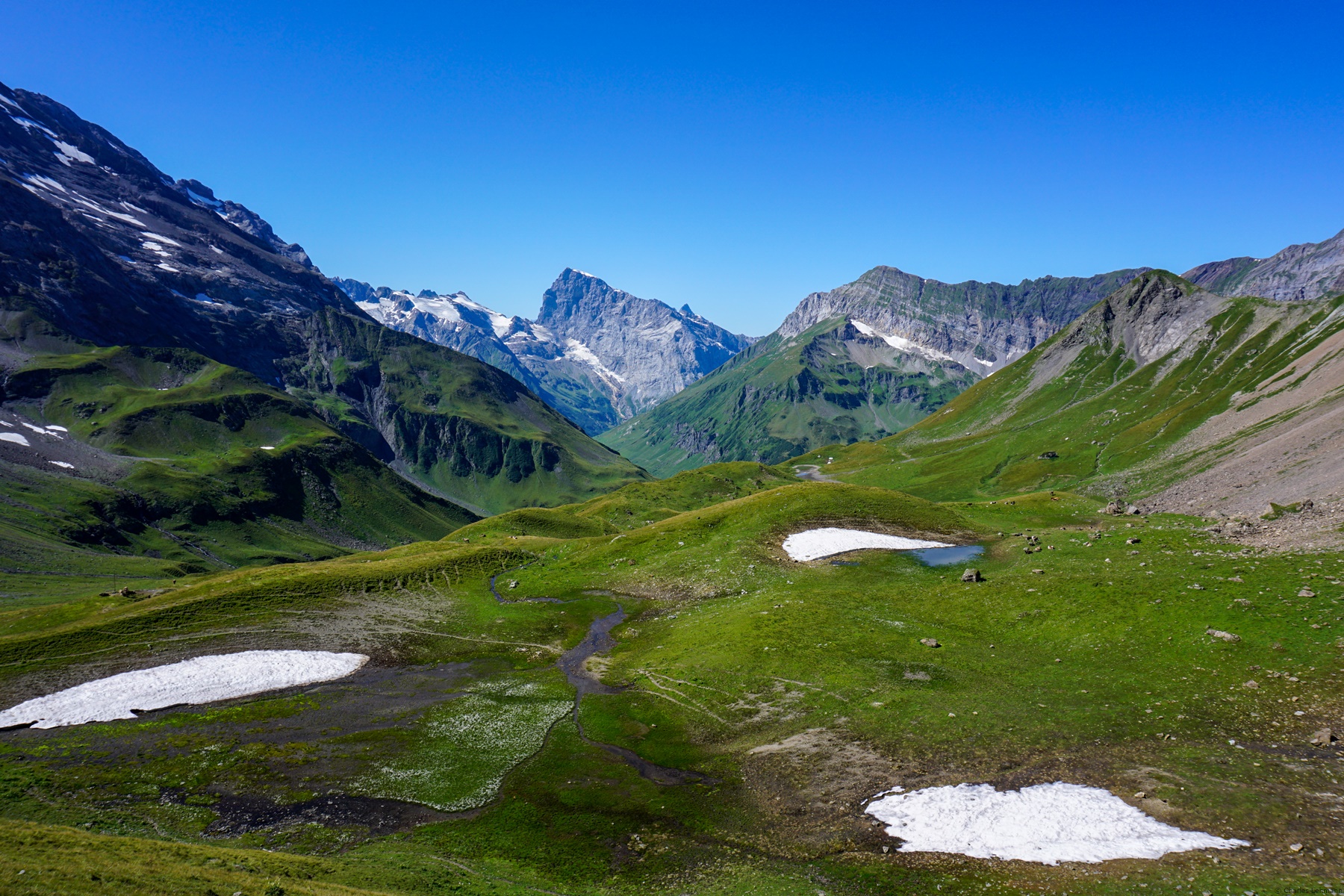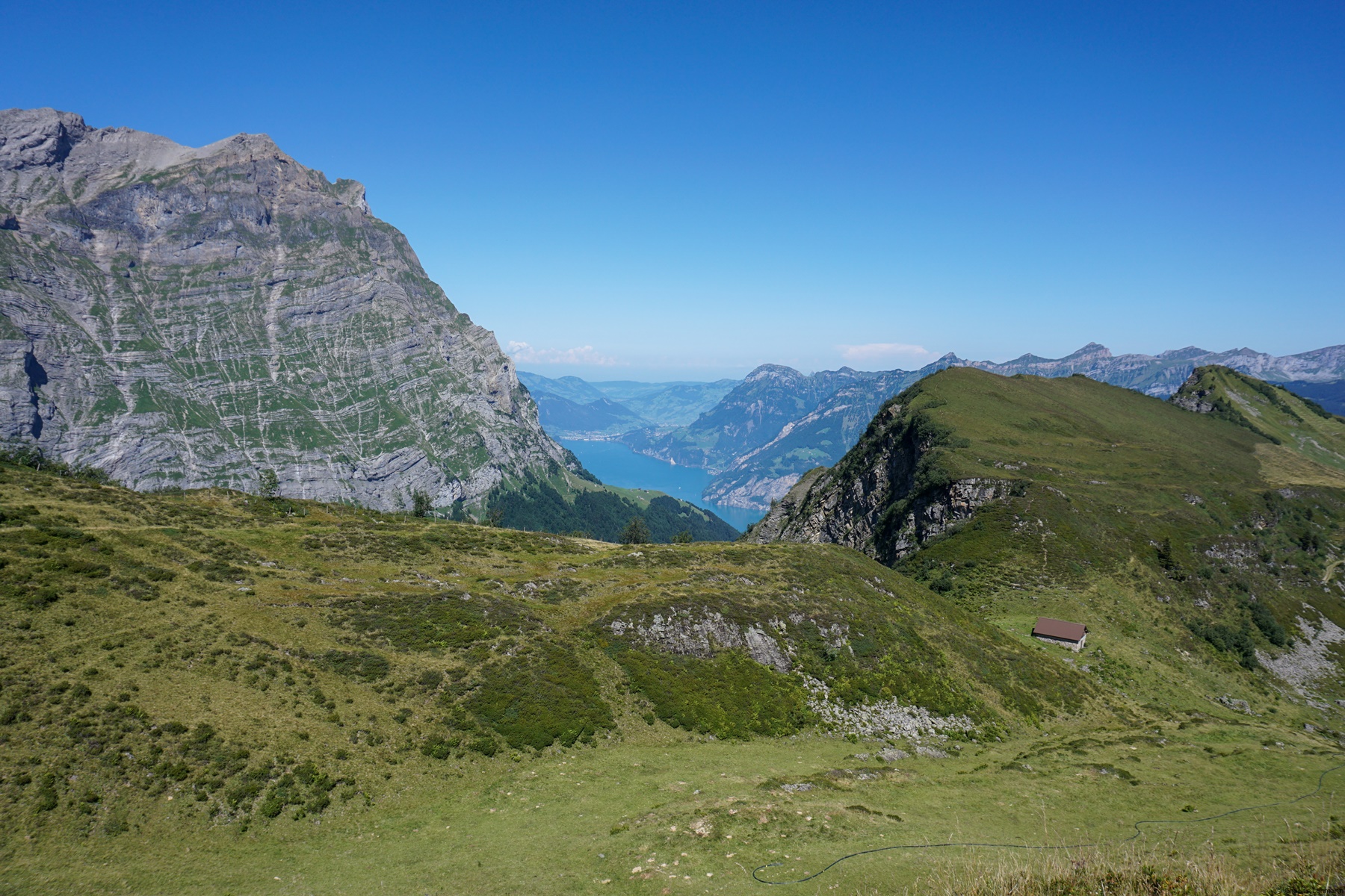 The Surenen Pass, a historic passage between the Valley of Engelberg and the one of Uri, is worth a visit. On the way up, one passes by the legendary place of the Blackenalp (where the legendary bull had faced the Greiss). In the descent, several variations are possible. The one via the Waldnacht follows the historic mule track. For the viewpoints, however, it is worth following the place called Grat. To go down to Attinghausen, one can take the cable car to save one’s knees. It’s more relaxing, but then one misses the magnificent section of the Mettlen hollow road. PS: The archaeologist (and traveler) Raoul-Rochette had, moreover, crossed this pass which he had then called: Col de Suresne (sic). Felix Mendelssohn Bartholdi, during one of his trips through Switzerland, left us a pencil drawing of the Waldnacht mountain pasture.