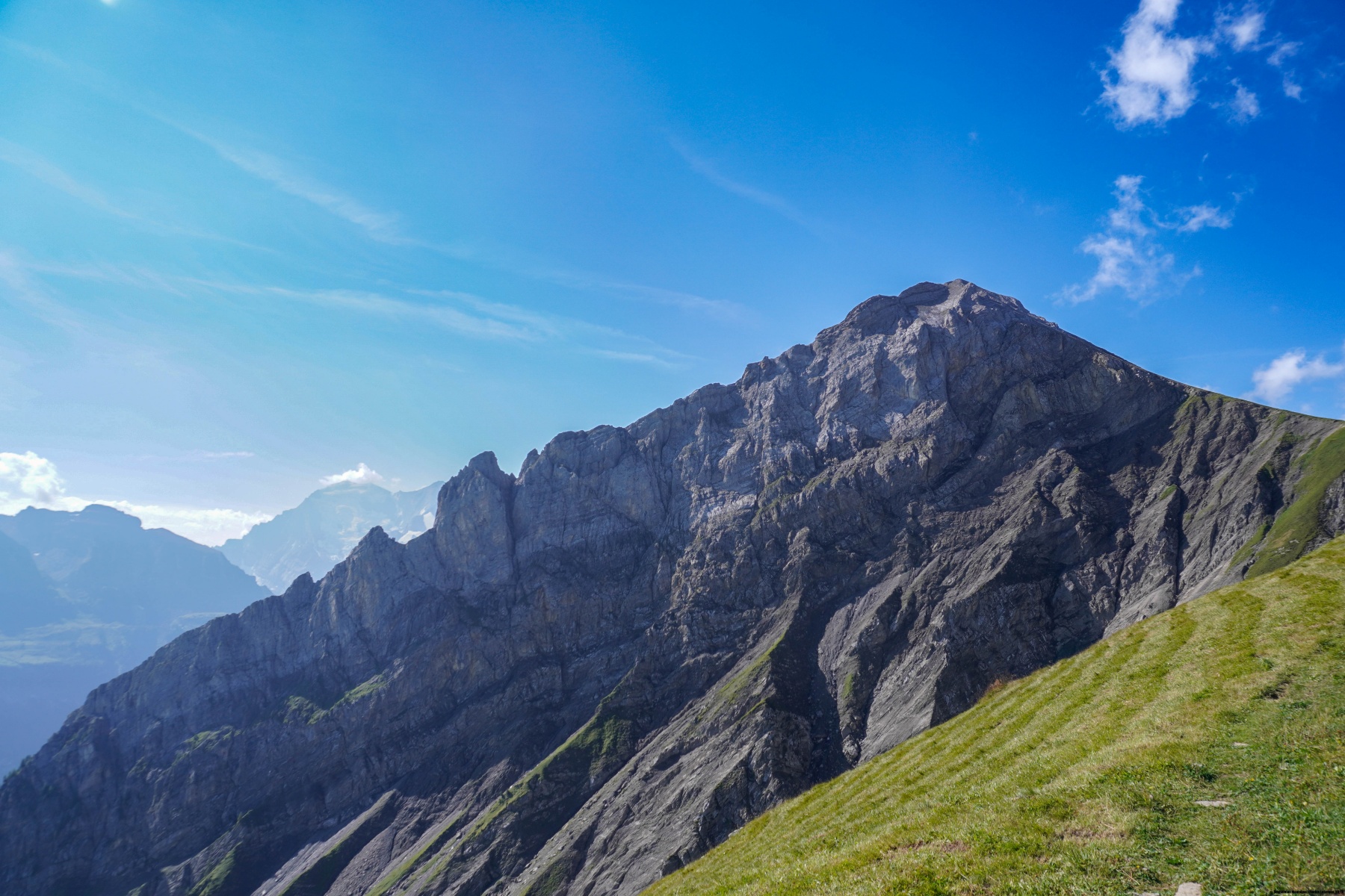 The names of the peaks in the Alps are sometimes very representative of their shape. There are many places where there are peaks called “The Castle”. This is not due to human construction, but is related to the shape of the mountain, which has large rock walls, resembling a wall. The First, which is located between the Entschlige and Kander valleys and which means literally the rooftop, is not an exception. Indeed, this summit is a long ridge with two sides, resembling a two-slope roof.