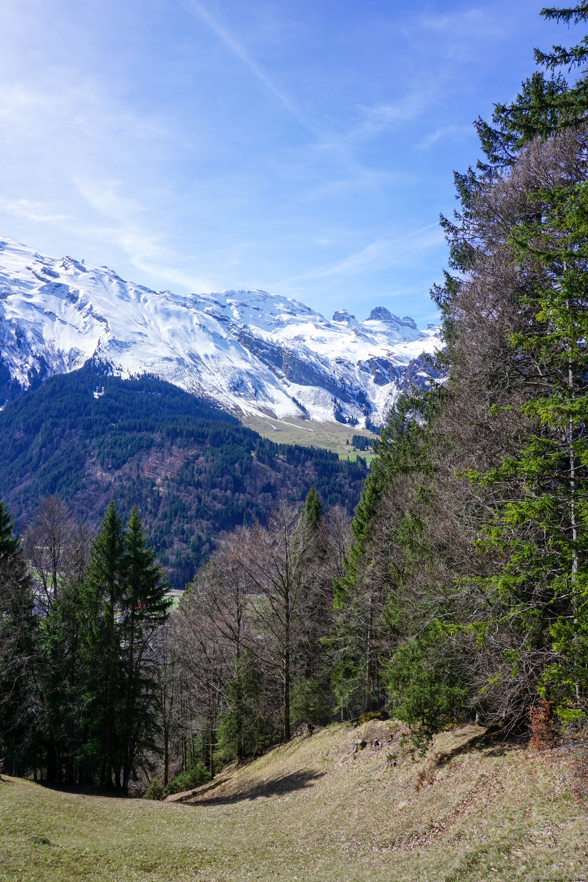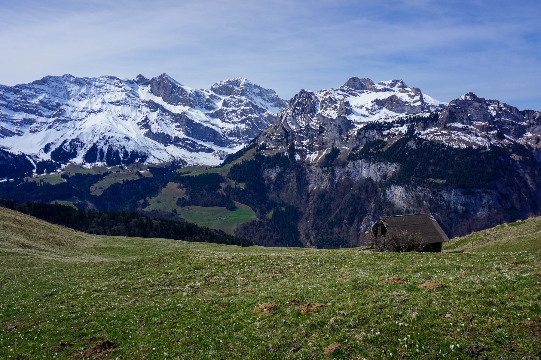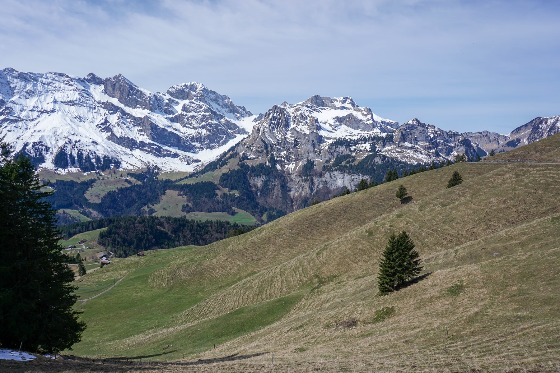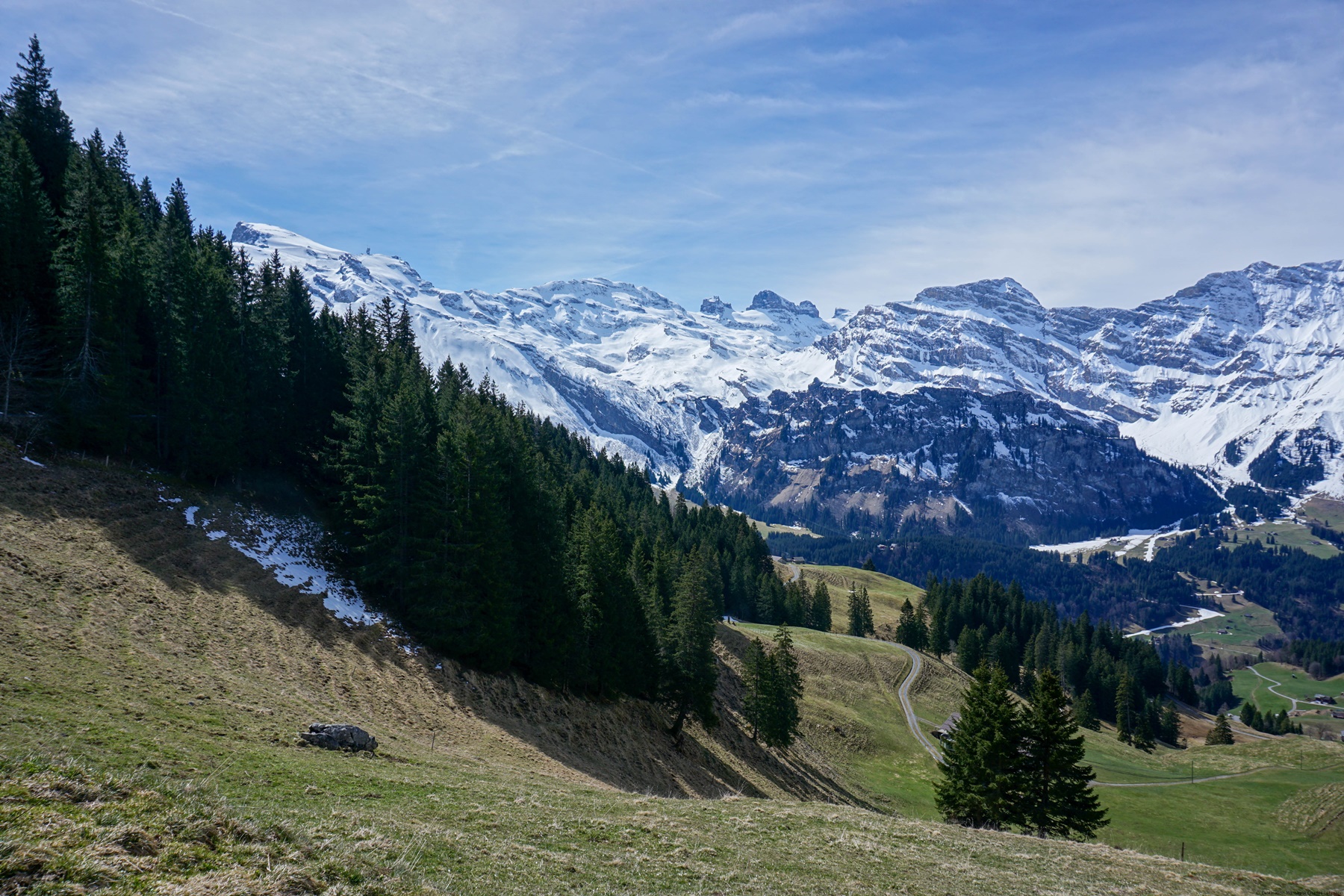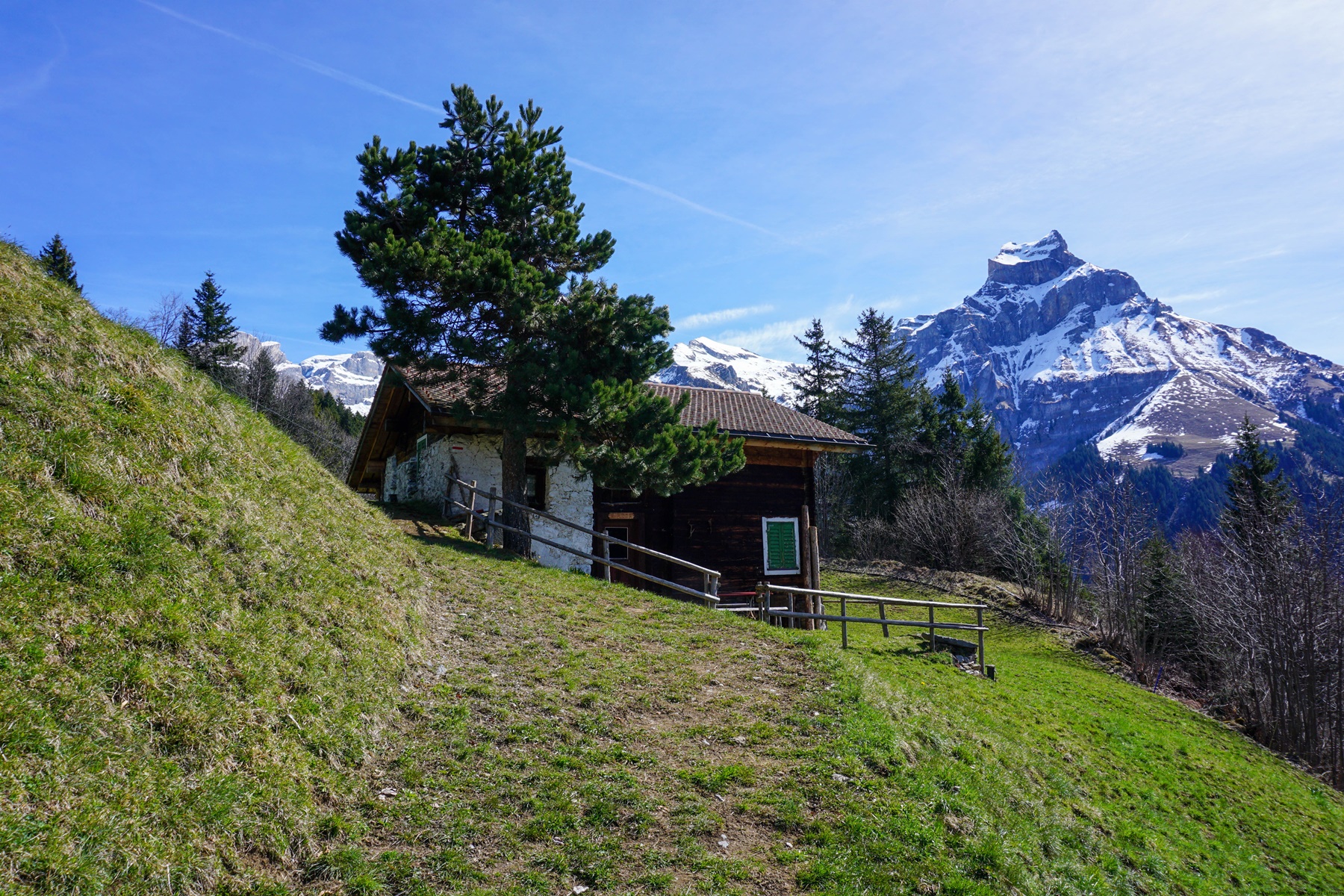 From Engelberg, first follow the path in the direction of Flühmatt (actually Untere Flühmatt). The path crosses the Ochsenmatt and climbs to the left into the forest. Cross the first gully and continue up the slope. Before a second gully, just after the corner, one can see a track that meanders up the slope. After a short climb one reaches a pasture that is used as a hay pasture: further up there is a hayloft that was used in the past. Today the hay is pulled up via a cable. Further up, after a short section in the forest, one reaches the house Hüsli and the hiking trail that leads from Bord to Flühmatt. If one wants to climb to Ristis, instead of following the marked path, it is better to follow the wide path that starts behind the shed. This path corresponds to the former hiking trail from Bord to Flühmatt.