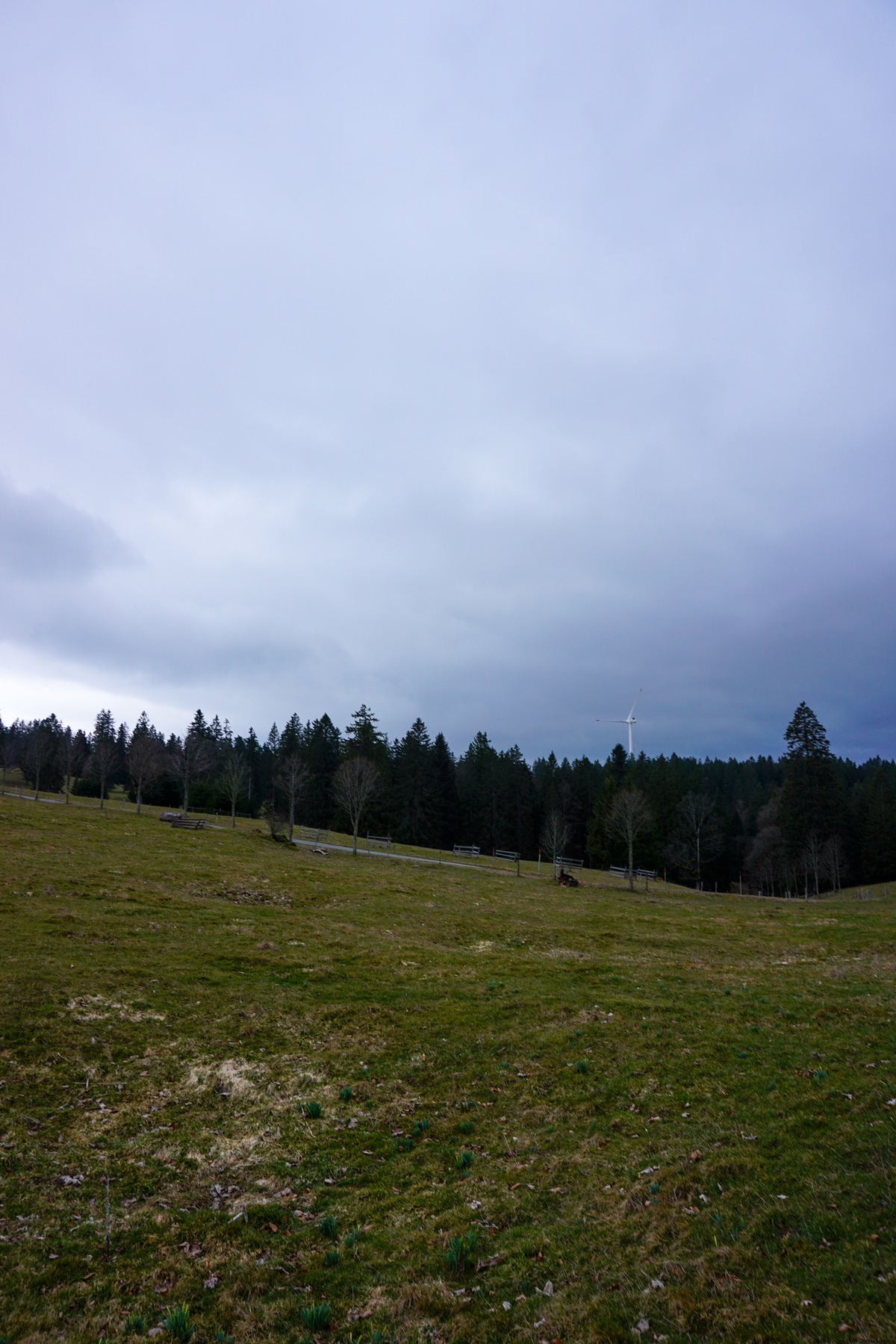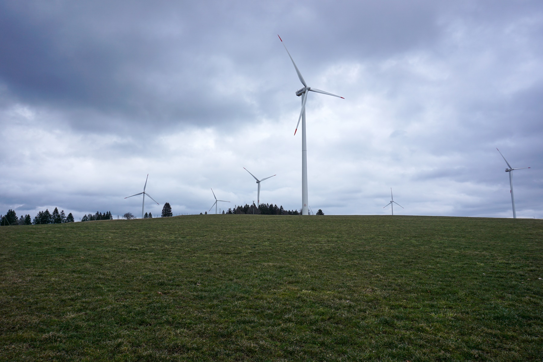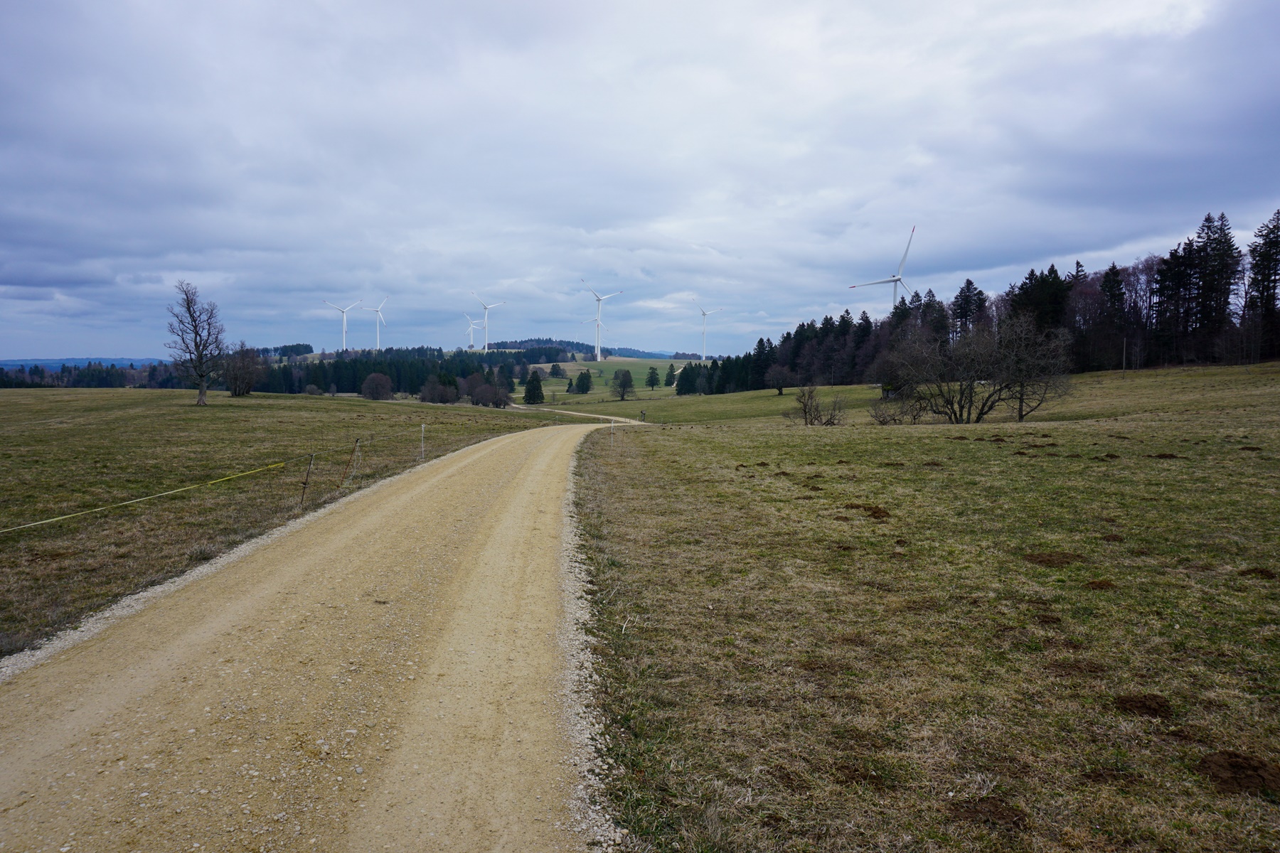 Since I moved to La Chaux-de-Fonds, I have been intrigued by the red lights in the distance that I see from my house. These are beacons located at the top of the Mont Soleil and Mont Crosin wind turbines. Having heard a lot about wind turbines, I wondered how it felt when one was at the foot of these giants. And as a change of weather was announced for that day, but I had a little time, I set off to go for a walk near of Mont Soleil.