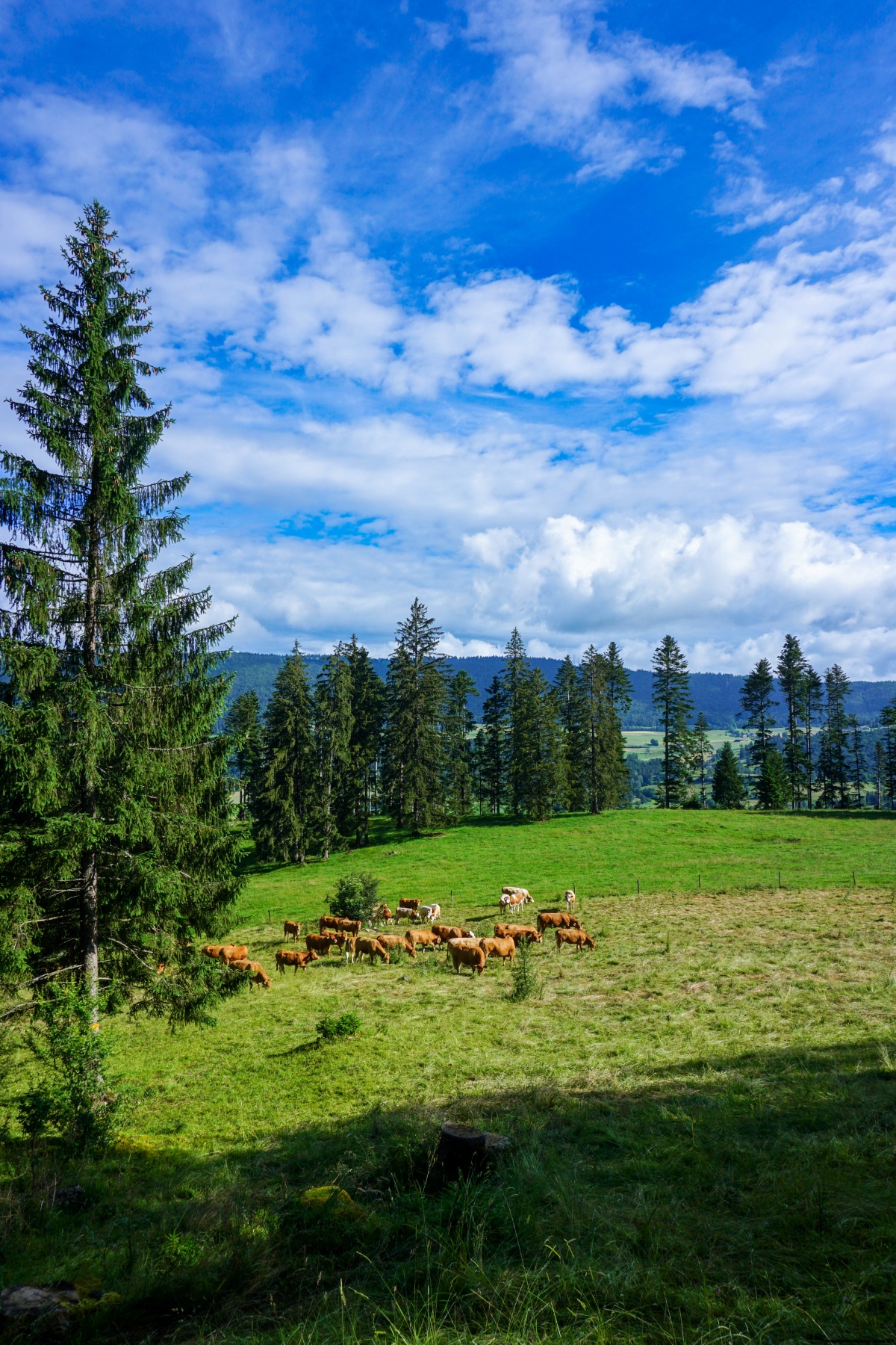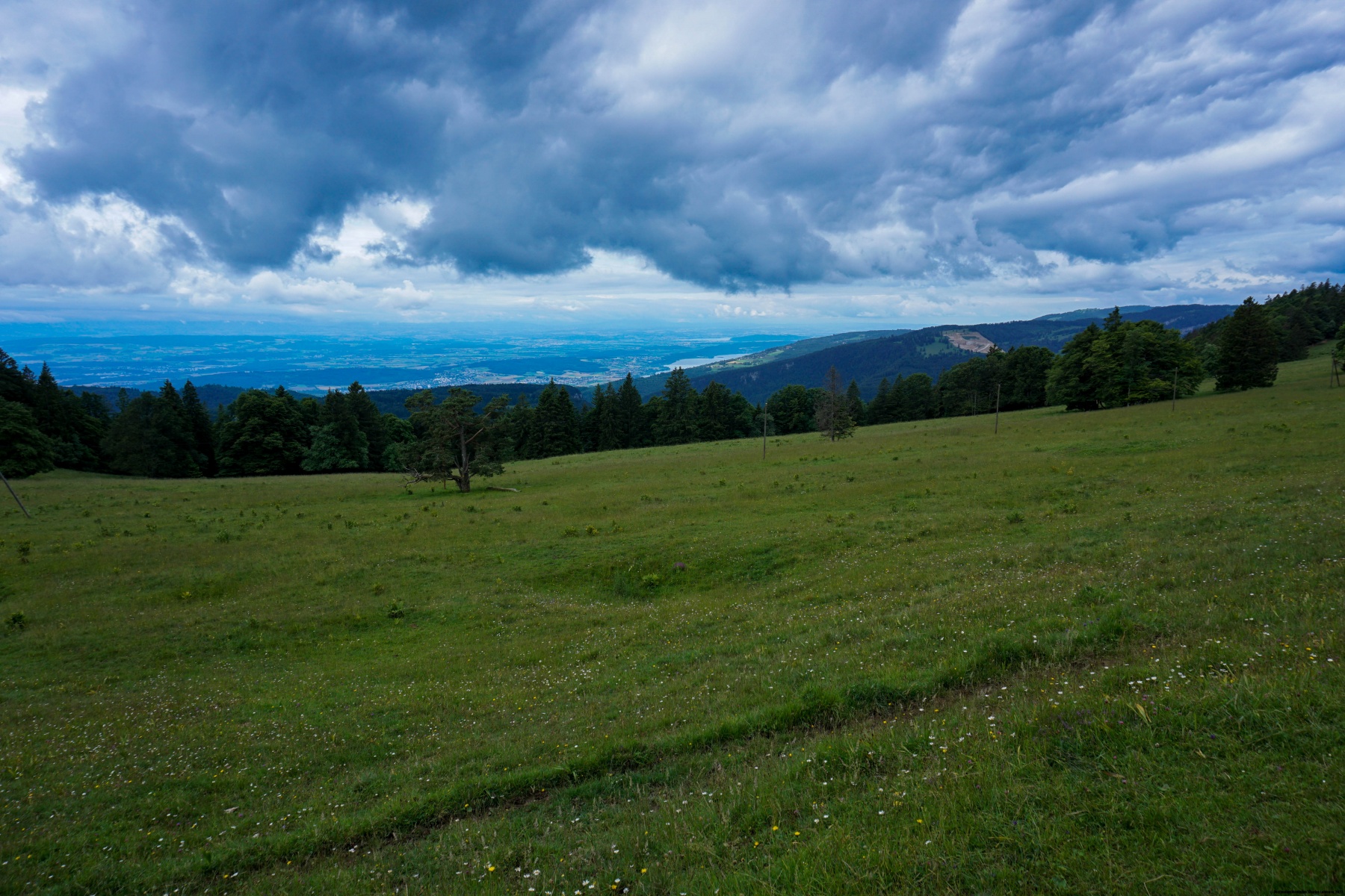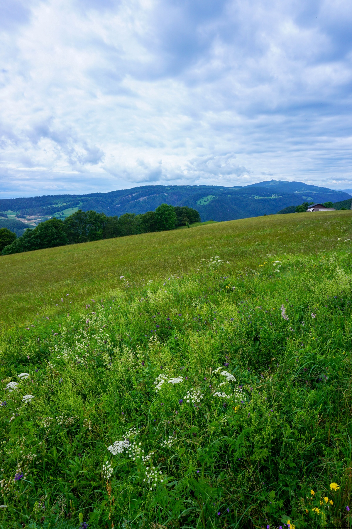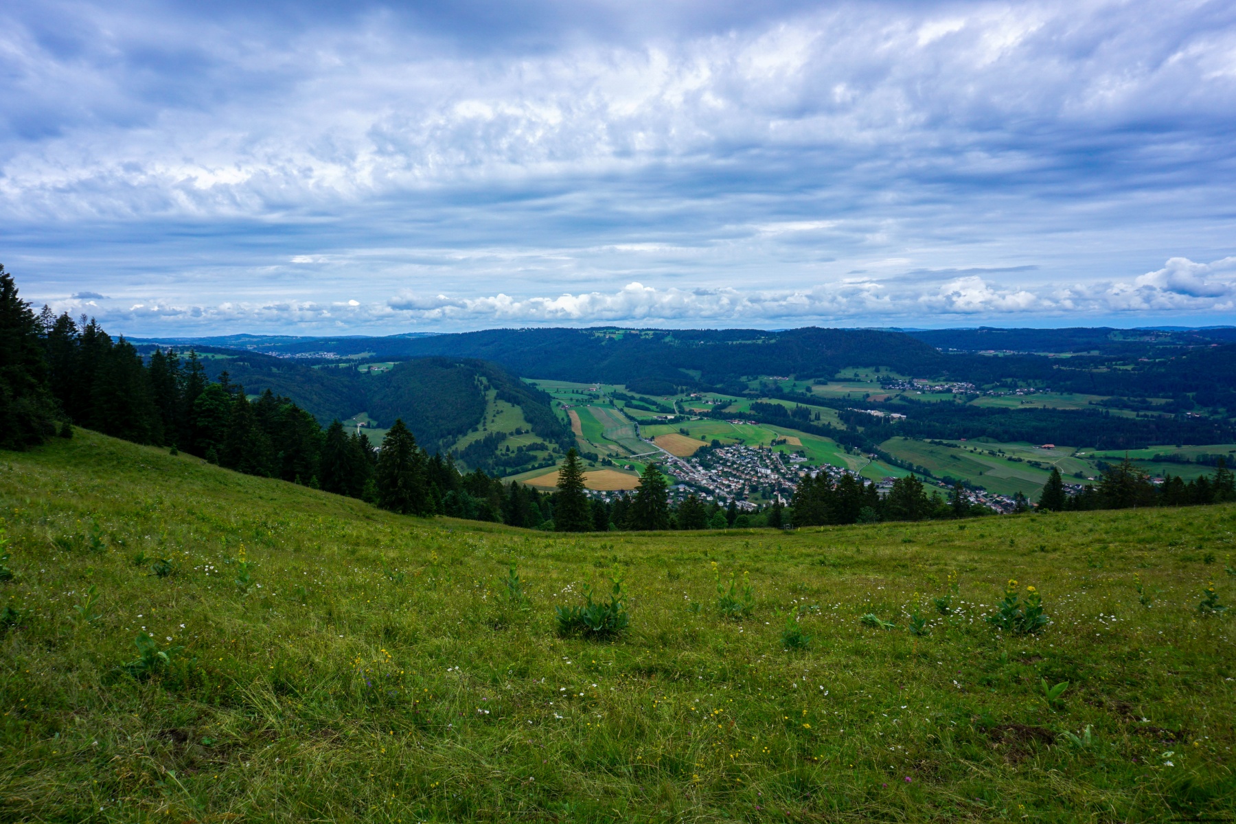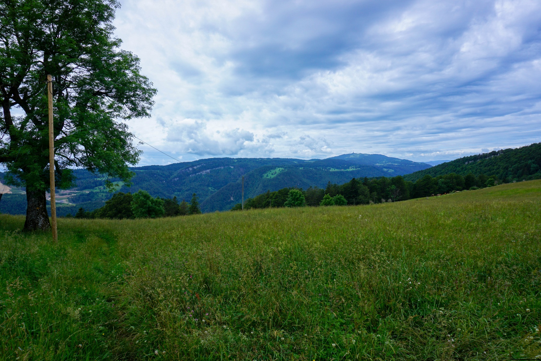 From the Malleray station, we first went to Bévilard before starting up the hill that leads to the crest. The trail, which is quite steep in places, follows a stretch of paved road before continuing through the woods. When one reaches the pastures, it is worth going a little way off the trail to reach the Montoz summit. Although partly wooded, the view from this summit is quite clear to the east.