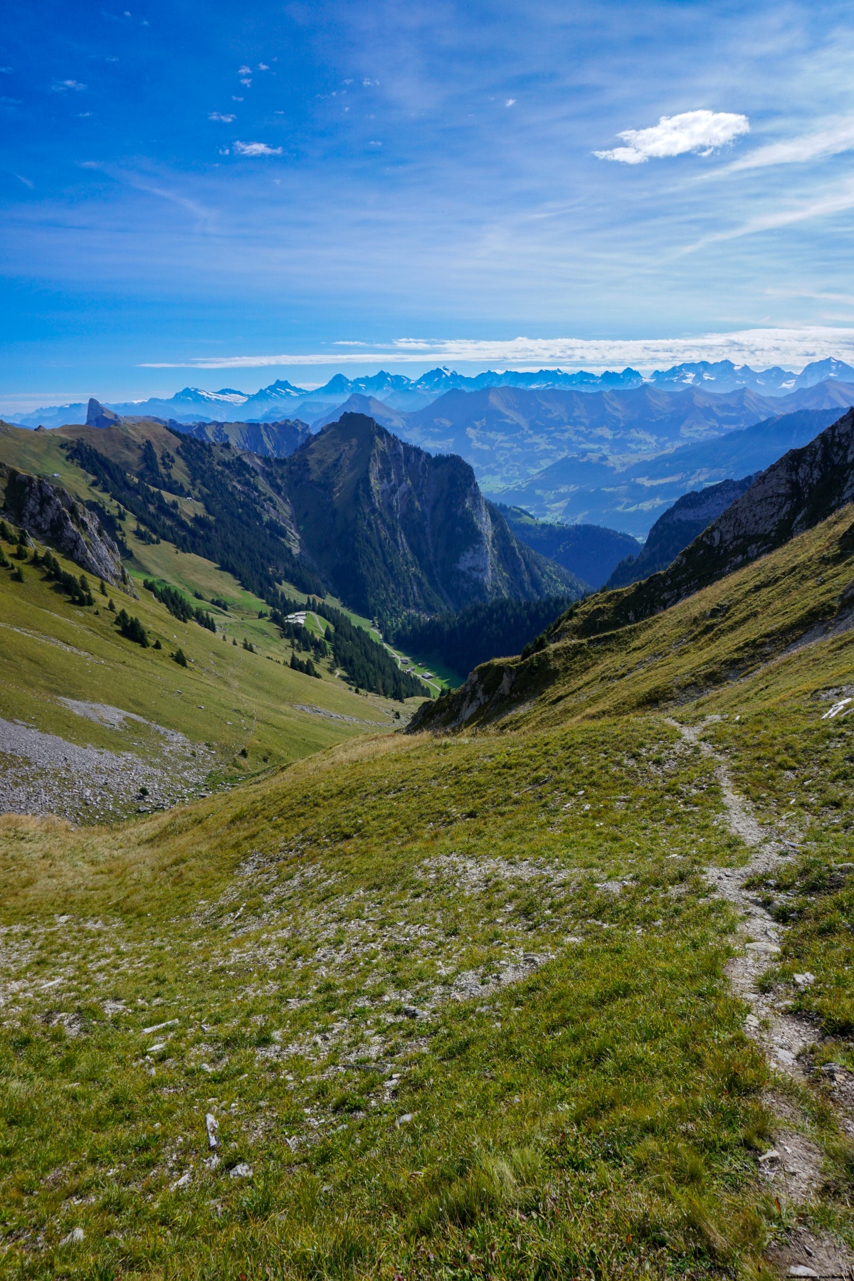 Once you reach Lochegg, you can take the signposted trail to Oberwil im Simmental. However, it is important to remember that the descent is long (over 1000m of altitude drop) and that the trails are used by mountain bikers who have the unfortunate tendency to destroy the mountain trails.