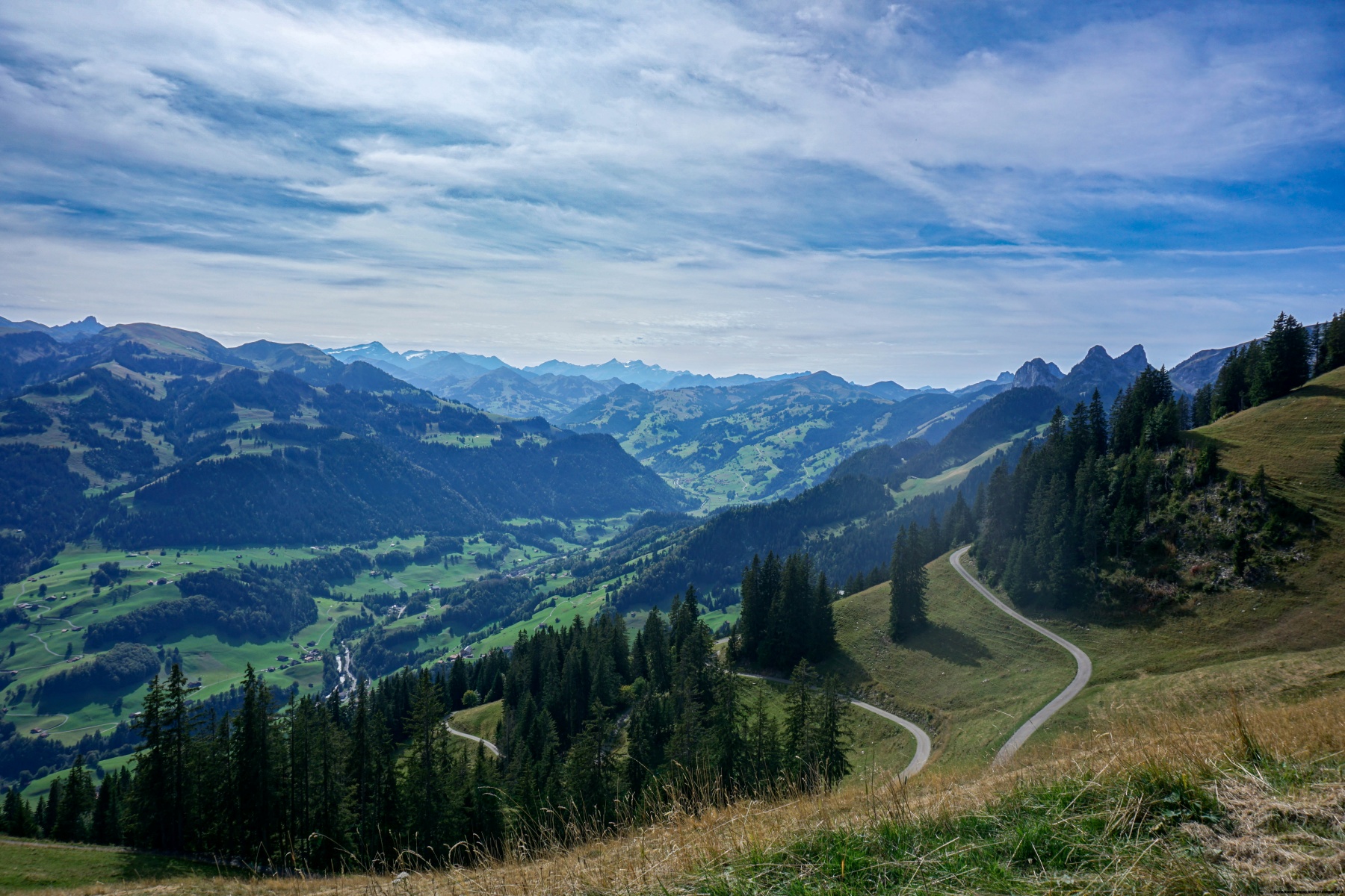 After passing by the hotel, we begin to climb up the hill towards the Louigrat. At some point, we pass through a rather humid area where the smell of rotten egg is very pronounced. This is probably where the bathwater is collected. More than half of the minerals in this water are in the form of sulphates, with the resultant smell. A little further up, you follow the ridge to the Louigrat. There, the trail doesn’t follow nice serpentine, but goes straight up the slope. It’s quite steep and difficult until you reach the top of the ski lift. After that, you continue to climb along the ridge to the Hürlisbode. At this point, you change sides of the ridge and cross the hillside to reach the Alpiglegalm. A small trail would allow you to continue along the ridge from the Hürlisbode, but the slope remains steady, and the trail is not very clear.