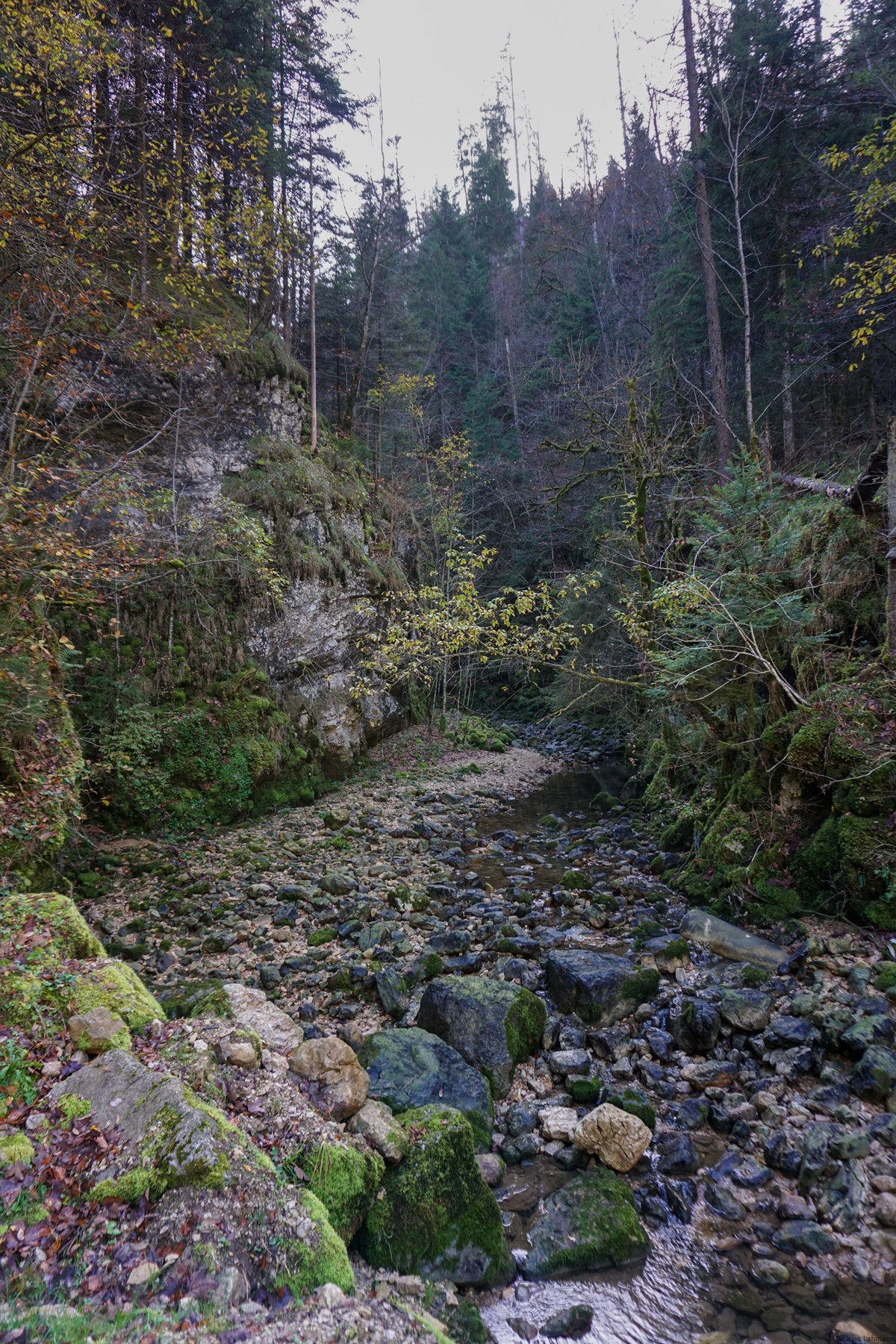 the banks of the Doubs, one must go down the Combe à l’Ours. This vale is