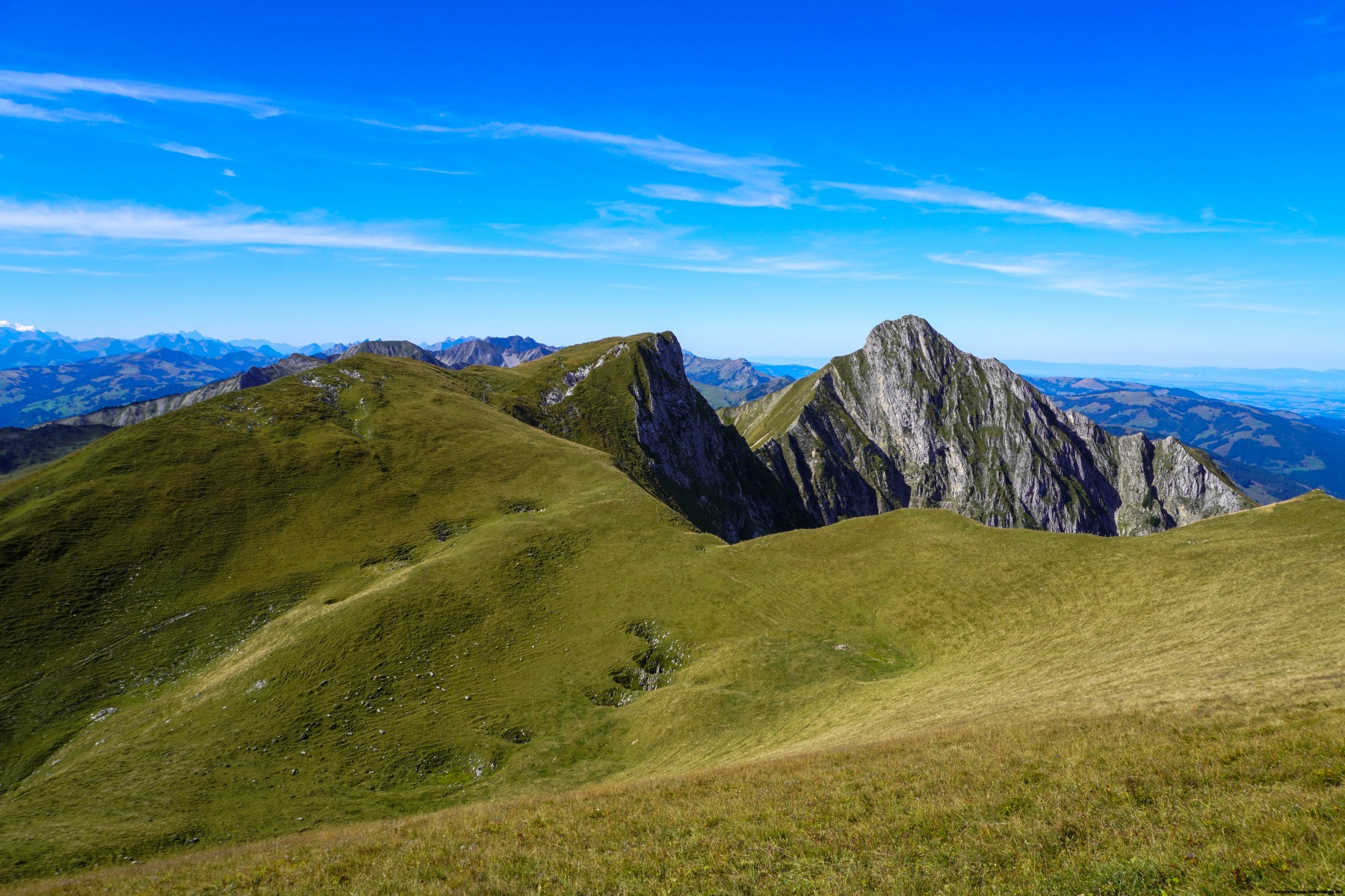 The Bürgle is one of the peaks of the Gantrisch massif, which is adjacent to the homonymous peak. The summit offers a beautiful view of the entire lower Simmental valley, the Alps and the Swiss plateau. On the north-western side, it has steep rocky slopes, like almost all the surrounding peaks. However, on the Simmental side, there are relatively gentle pastures. There is a project for a photovoltaic power station in the pastures of the Bürgle, which is why it is interesting to climb this summit now, as it may not be as beautiful in the future.