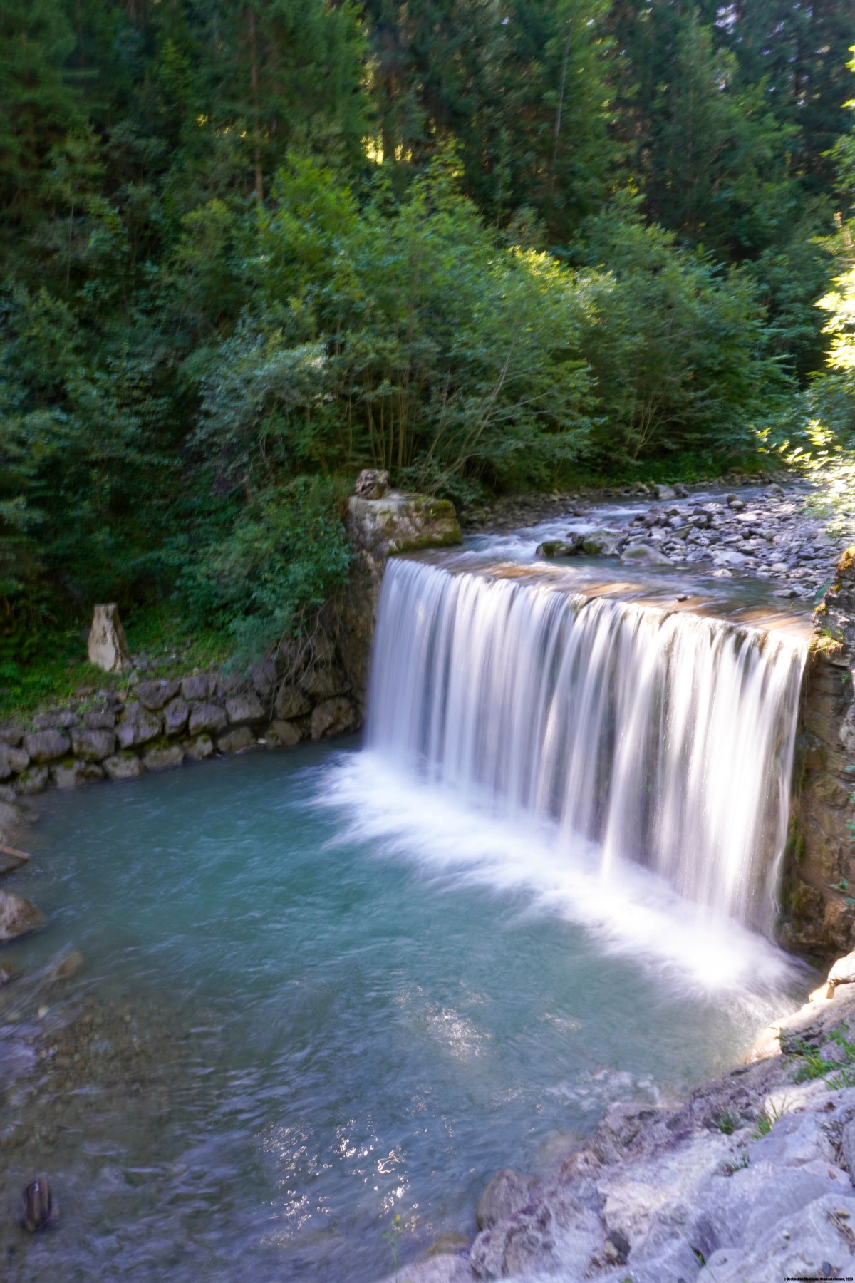 Toute la randonnée décrite ici se déroule sur de bons sentiers, hormis dans les villages où on doit suivre les routes, et entre Saanenmöser et Oeschseite où on suit une petite route goudronnée. C’est pourquoi, depuis Oeschseite, il vaut la peine de suivre le sentier longeant la Kleine Simme, même si cela représente un léger détour. On suit alors le vallon de la rivière le long d’un bon sentier où la présence du cours d’eau apporte une agréable fraîcheur. Après avoir dépassé le stand de tir et la piscine, on ne tarde pas à arriver à la gare de Zweisimmen qui est l’endroit où les voies changent d’écartement. Vers le bas, on a un écartement « normal » à 1m435 et au-dessus, on a un réseau de voies étroites à 1m. Récemment, un dispositif permet de modifier l’écartement des roues pour permettre de poursuivre le parcours du Golden Express.
