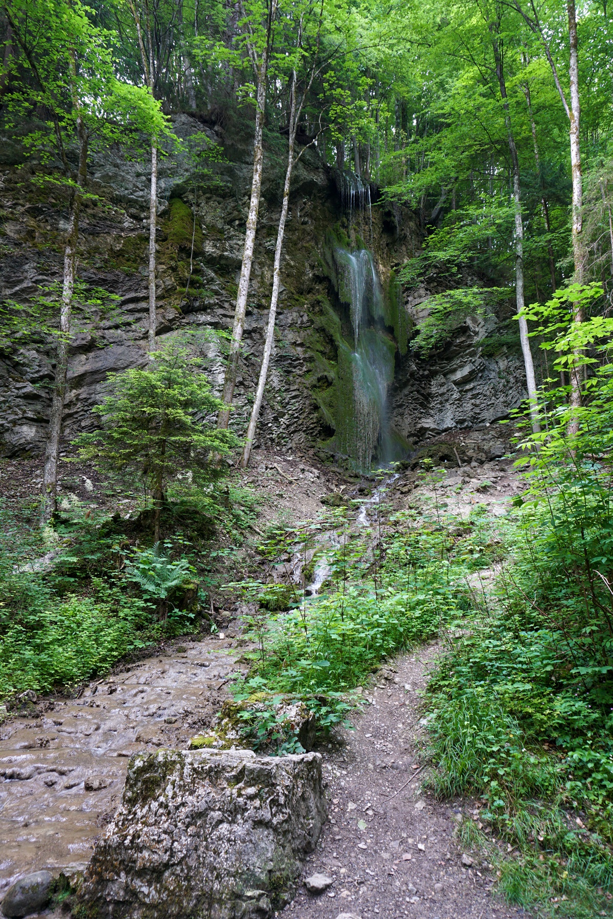 To cross the village, the route follows the road but avoids at En Coppet to go up to the Communs de la Tzintre. After a small descent, one reaches the Jogne at the height of Sous les Vanels. From this point, the trail follows the Jogne (or Jaunbach) and the road at a little distance. As the valley is relatively narrow, one can hear the noise of the traffic.