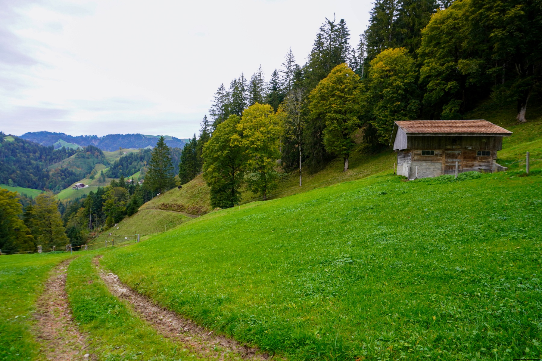 The descent to Schüpfheim is through gentle meadows and forests. When you drive through the Entlebuch, you get the impression that the slopes are much steeper than they are.