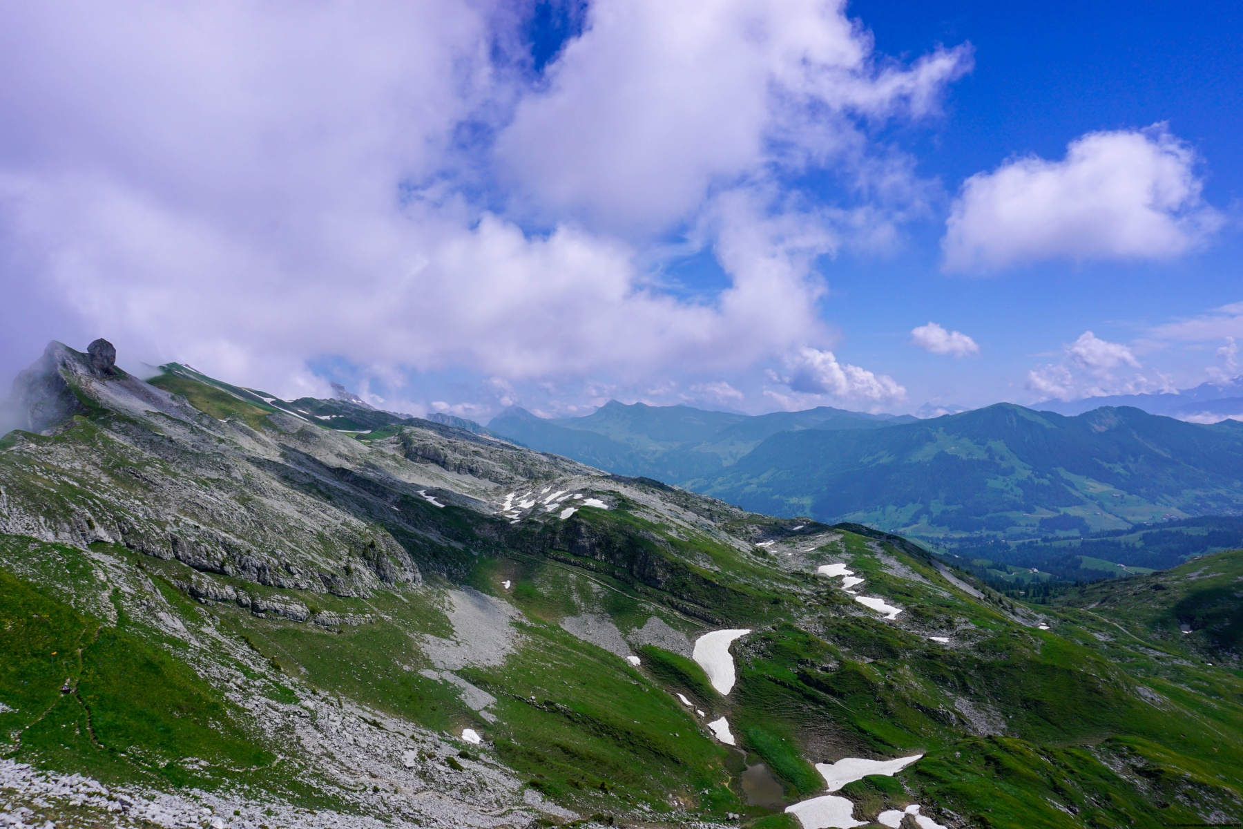 For the descent, we decided to take a small loop that passed close to the foot of the Türtstehäuptli, which looks like a block sitting on the ridge. The rest of the descent followed the ascent route, as large cumulus clouds were starting to form, which promised a thunderstorm. Luckily, the storm broke while we were back in Sörenberg.