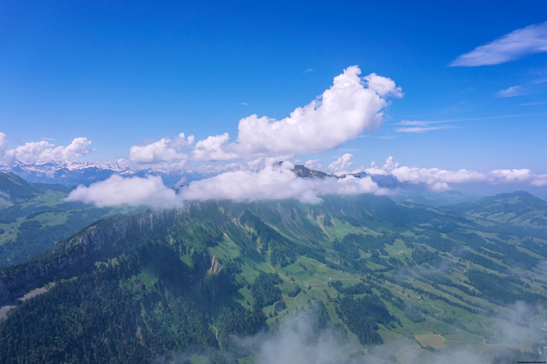 The Schrattenfluh is a small mountain range that is quite surprising. Its north-western side is a steep cliff that drops down into the Emme valley, while its south-eastern side is a huge, slightly sloping plateau with a well-known karrenfeld. So, if you climb the side facing Sörenberg, you can easily reach the crest. The only difficulties are the detours you must make to avoid crevasses and chasms. The crest is relatively flat, and the only thing that really stands out is the Schibegütsch. This peak, with its distinctive cliff, is the first elevation of the Schrattenfluh, directly opposite the Hohgant.